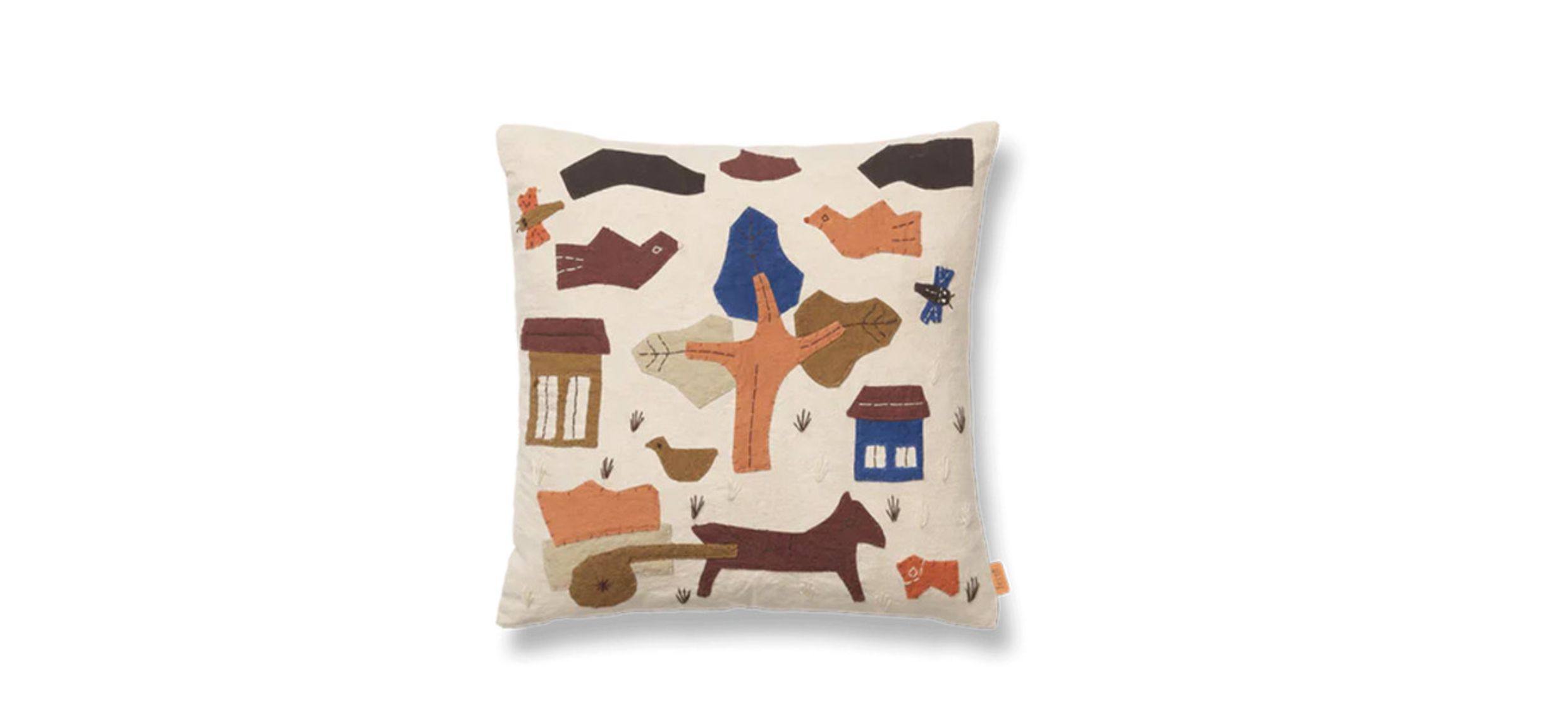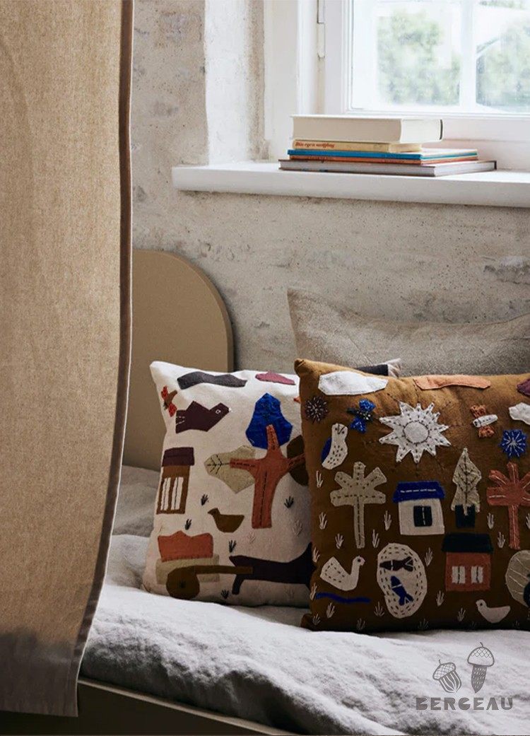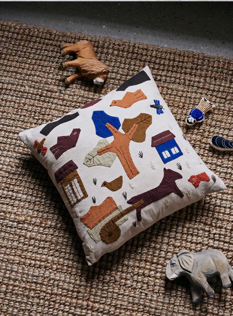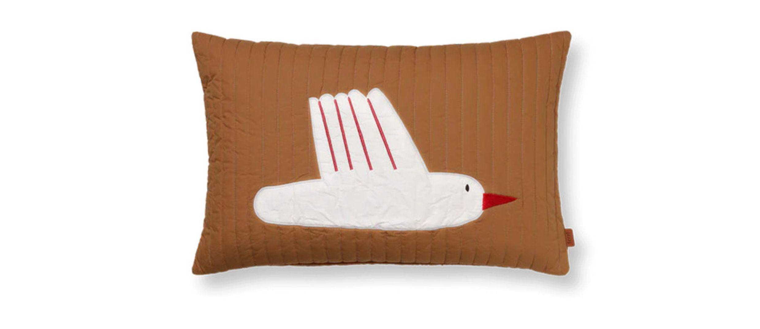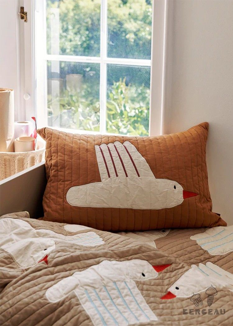 Danés Ferm Living cojín con diseño de pájaro bordado, funda de almohada de algodón orgánico, diseño de nicho, sofá para habitación de niños