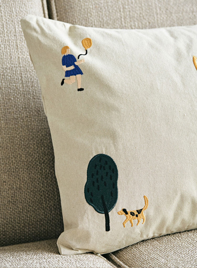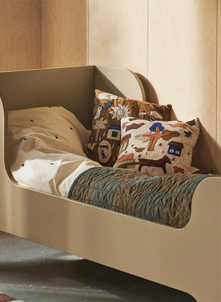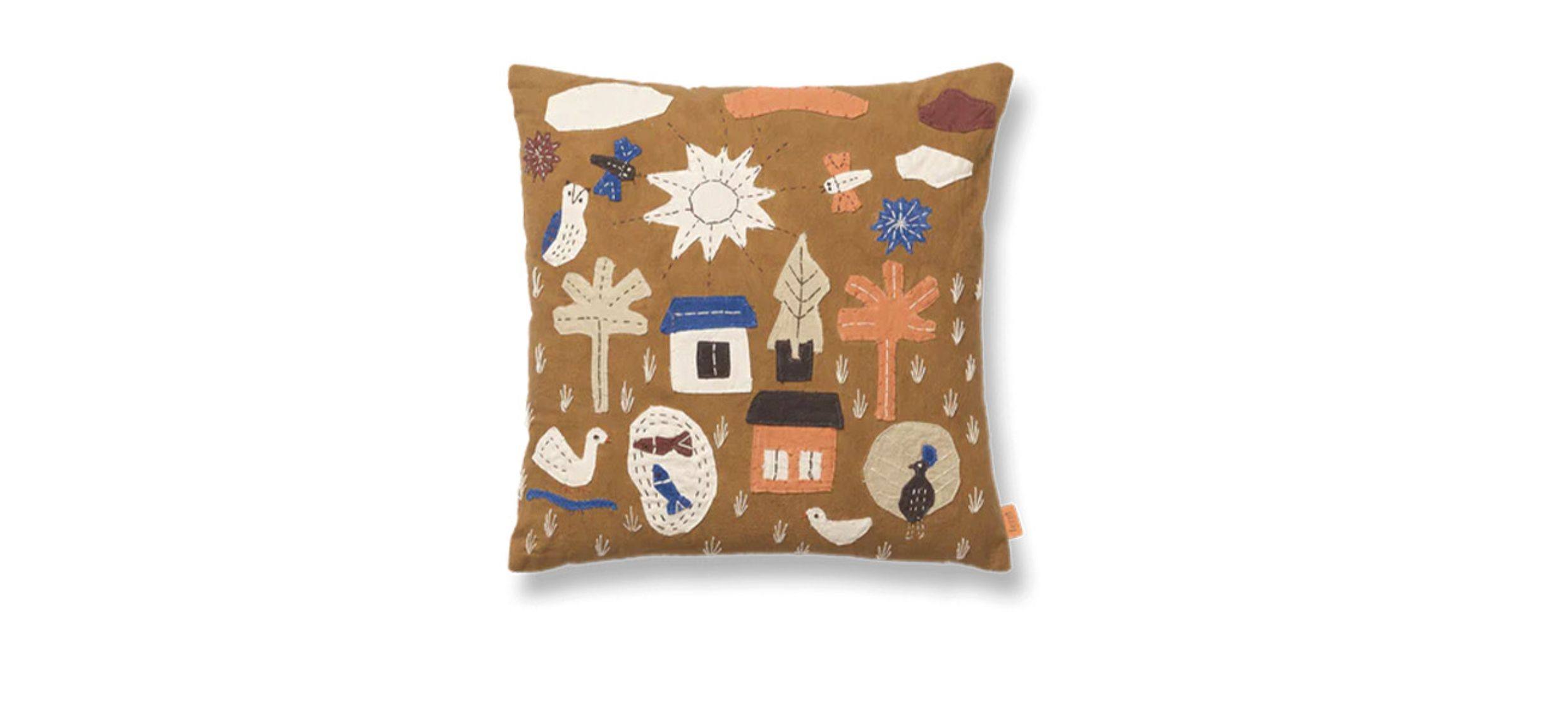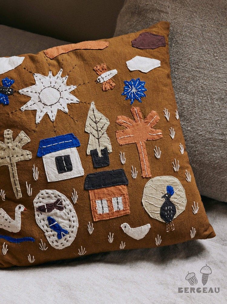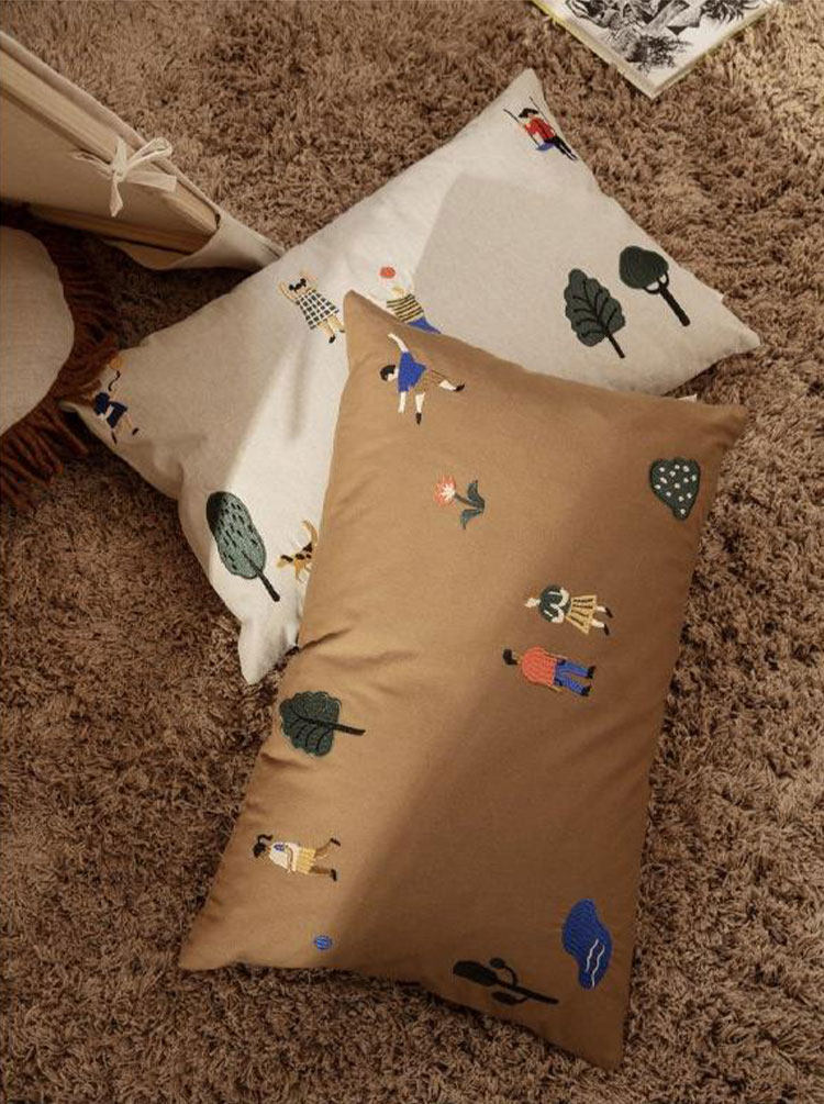Danés Ferm Living cojín con diseño de pájaro bordado, funda de almohada de algodón orgánico, diseño de nicho, sofá para habitación de niños