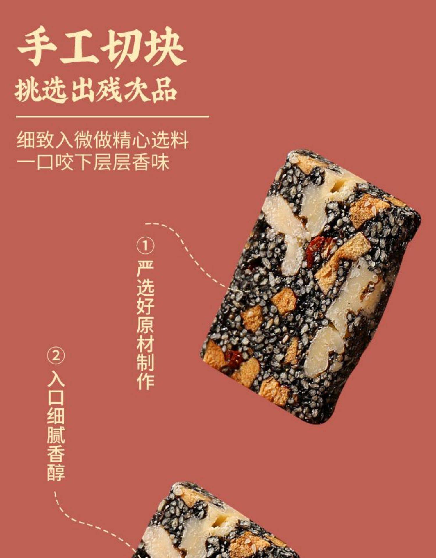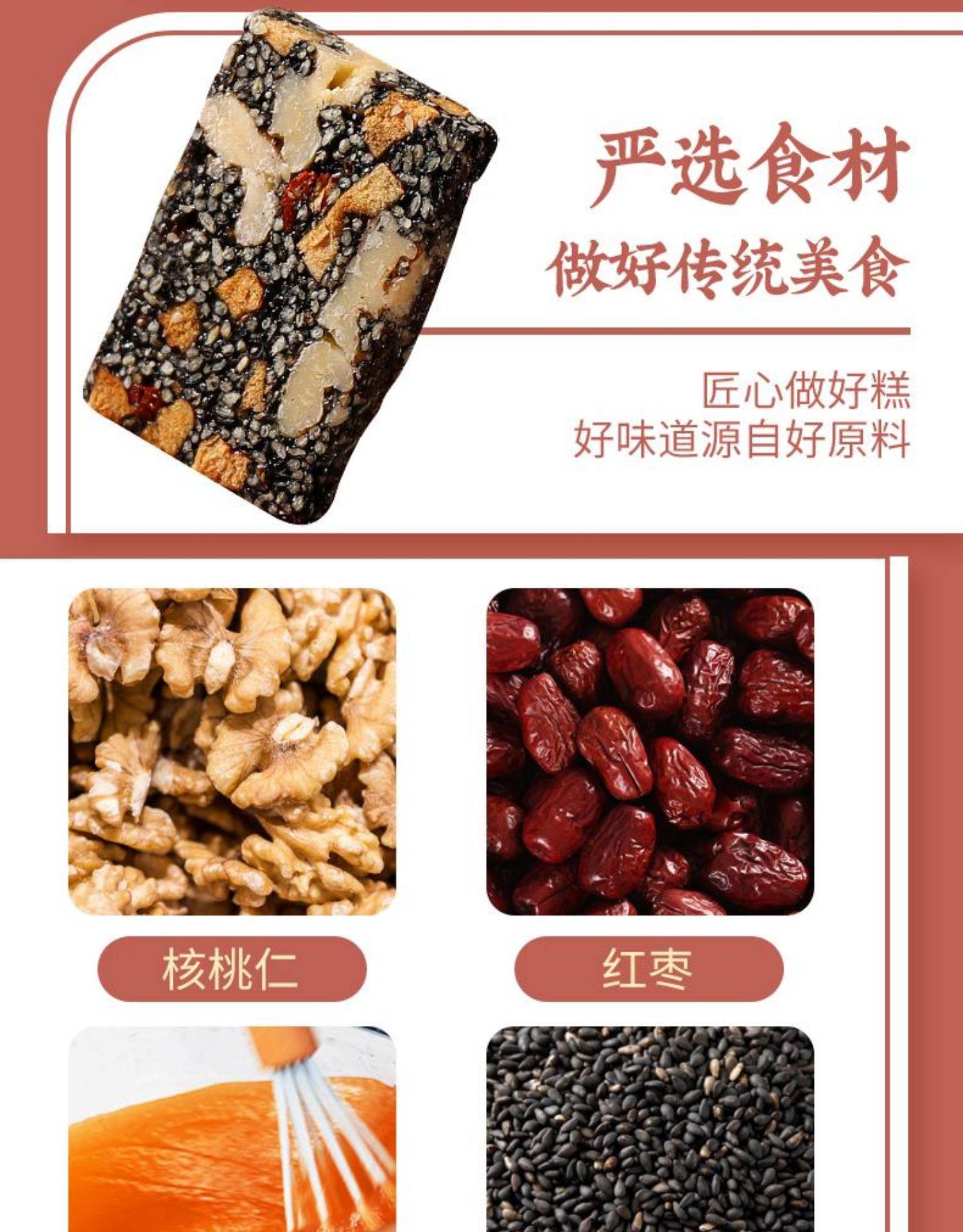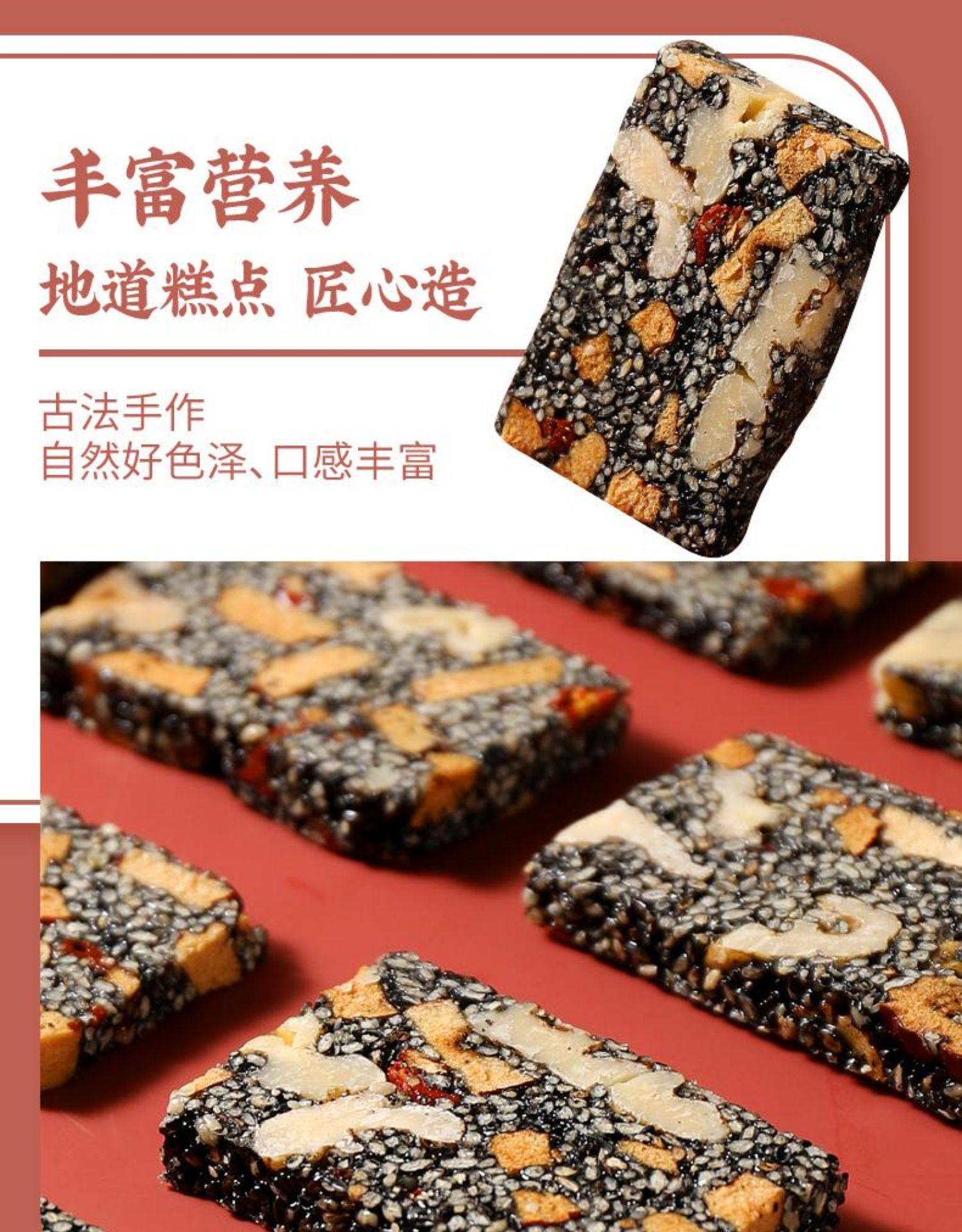 Schwarzer Sesam, roter Dattel-Walnuss-Softkuchen, 500 g Sesamkuchen-Gebäck, altmodische geschnittene Gebäck-Snacks für schwangere Frauen, kleine unabhängige Verpackung