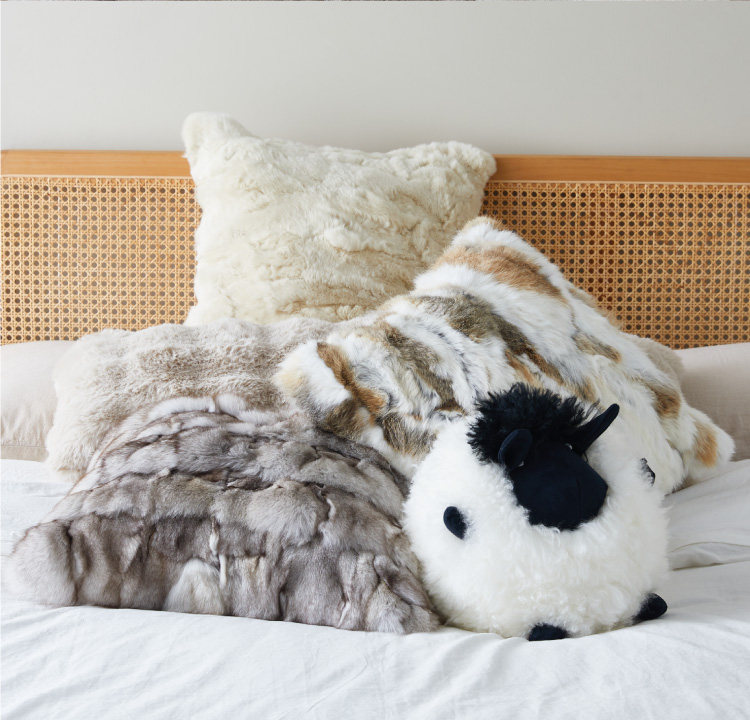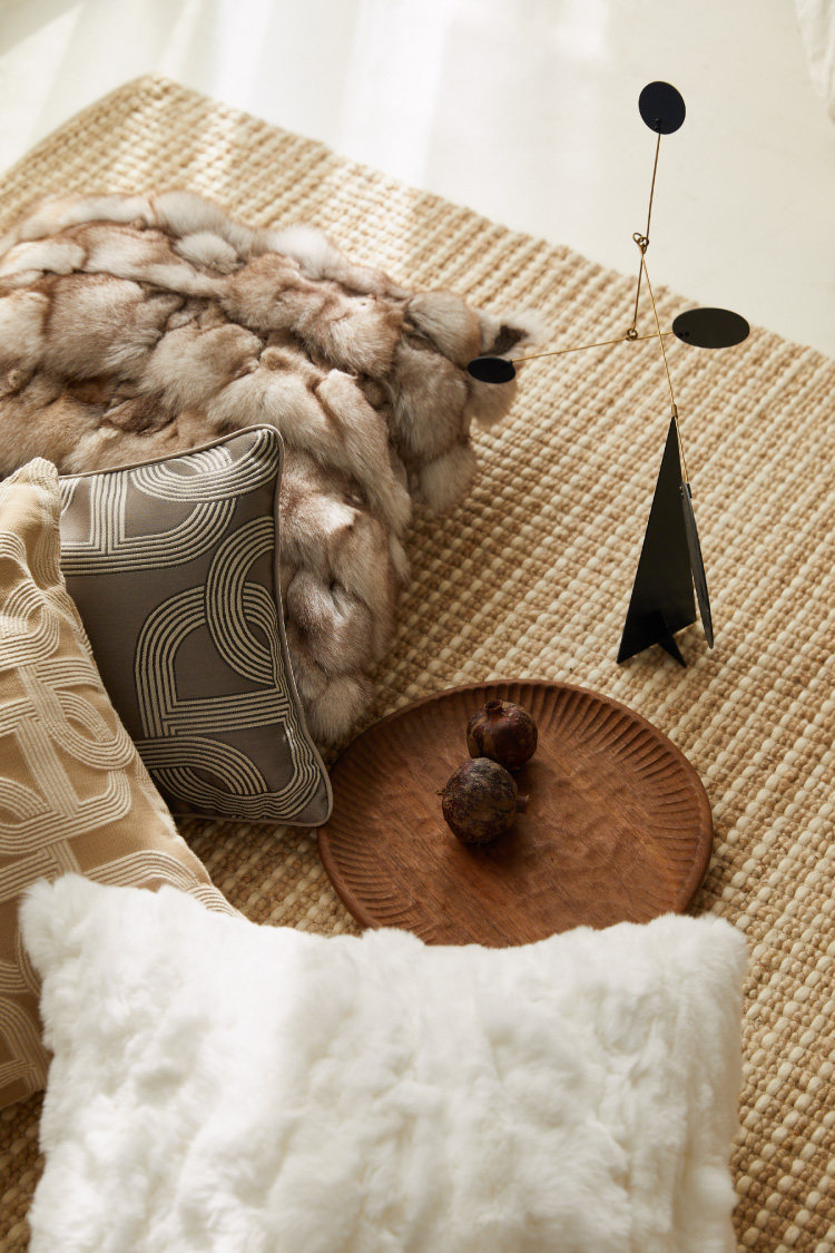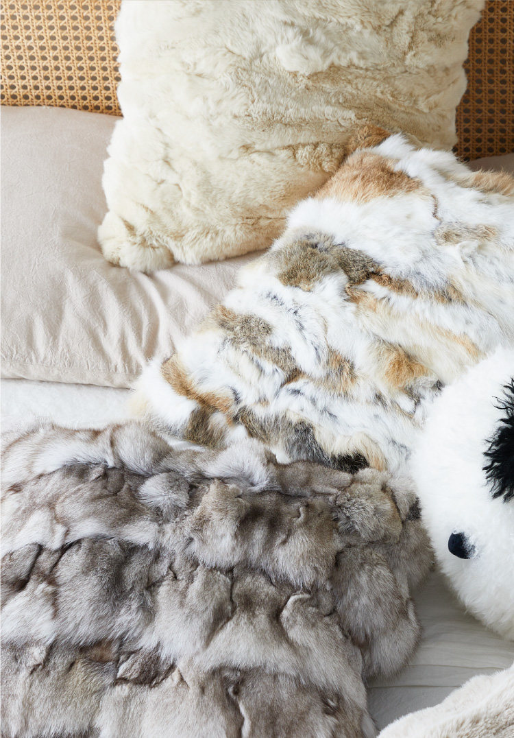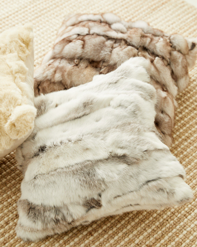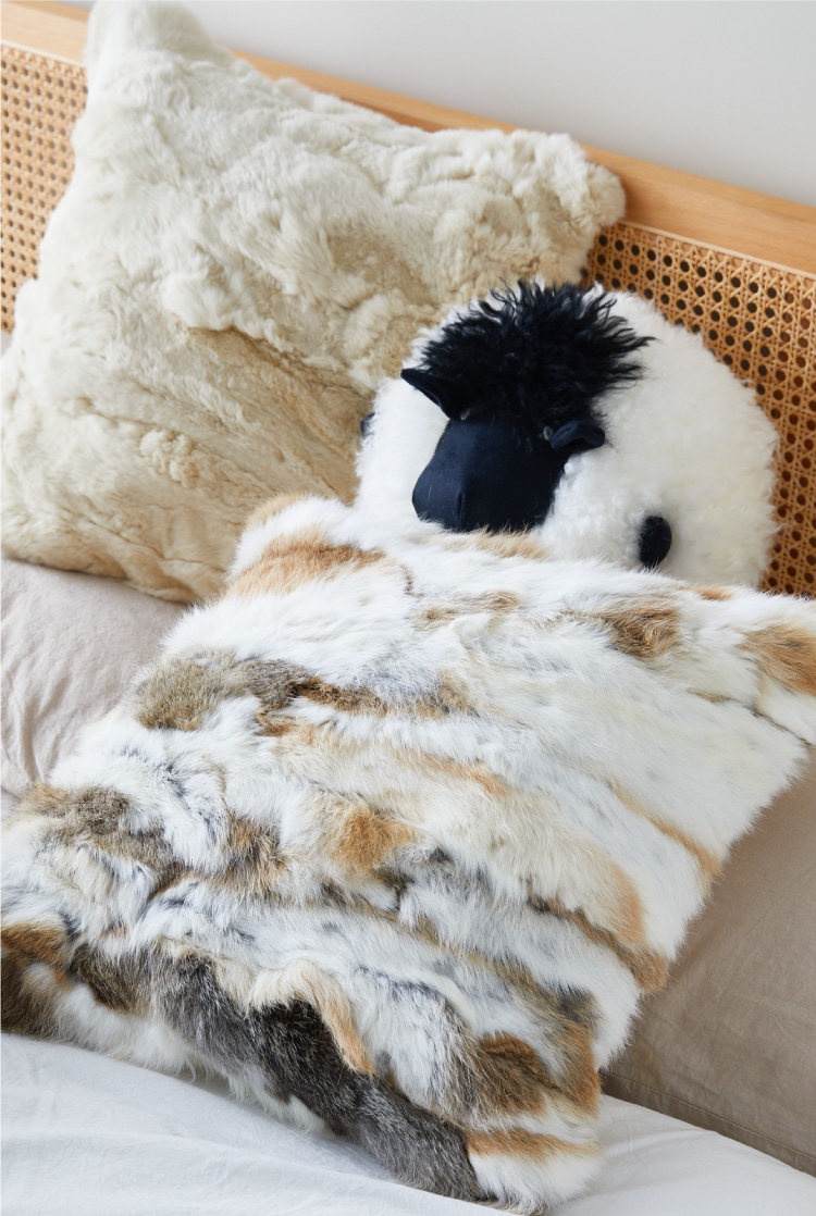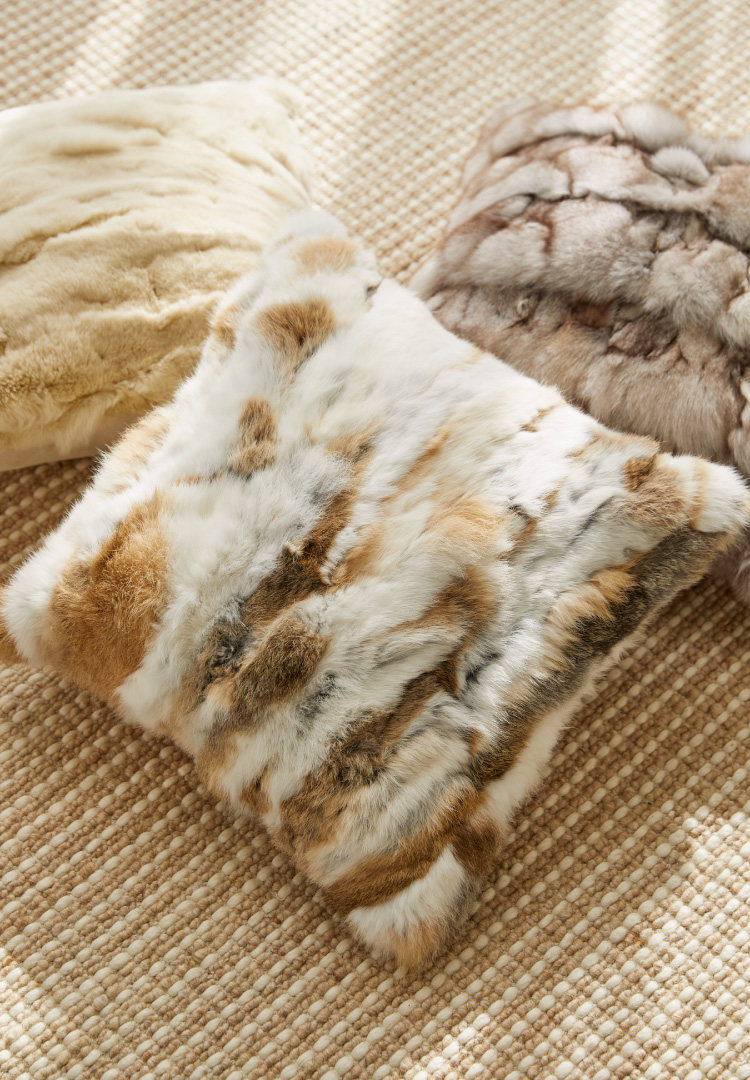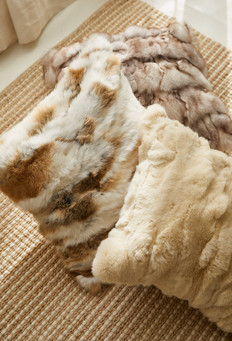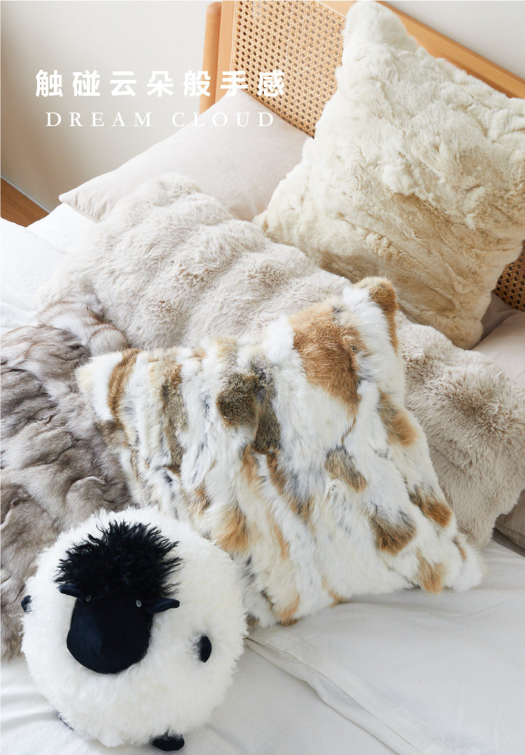 天然獭兔毛抱枕!撸猫手感法风轻奢天然皮草靠枕沙发客厅无风生活