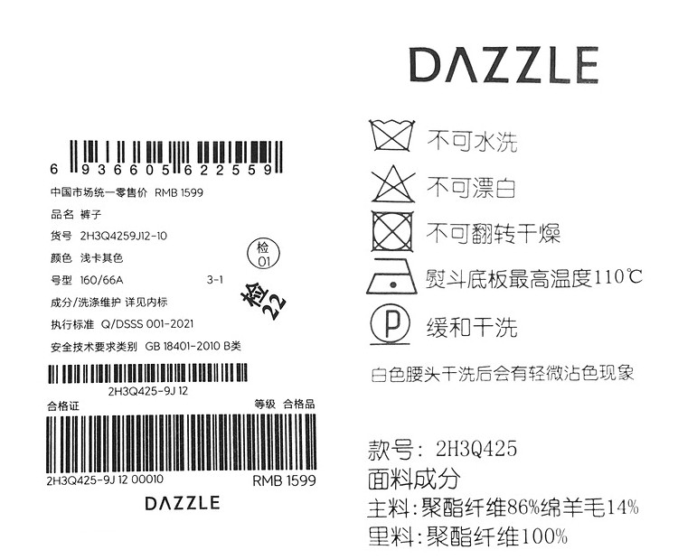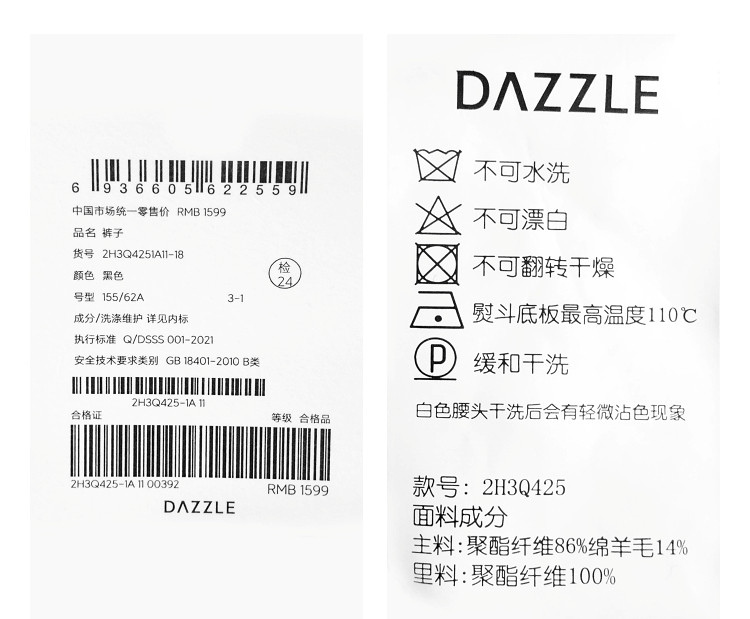 DAZZLE地素 休闲裤女装字母提花橡筋腰头长裤