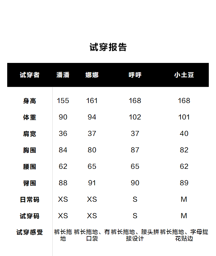 China (cm) 160-165/84-86 165-170 / 88-90 167-172 / 92-96 168-173 / 98-102 170-176 / 106-110