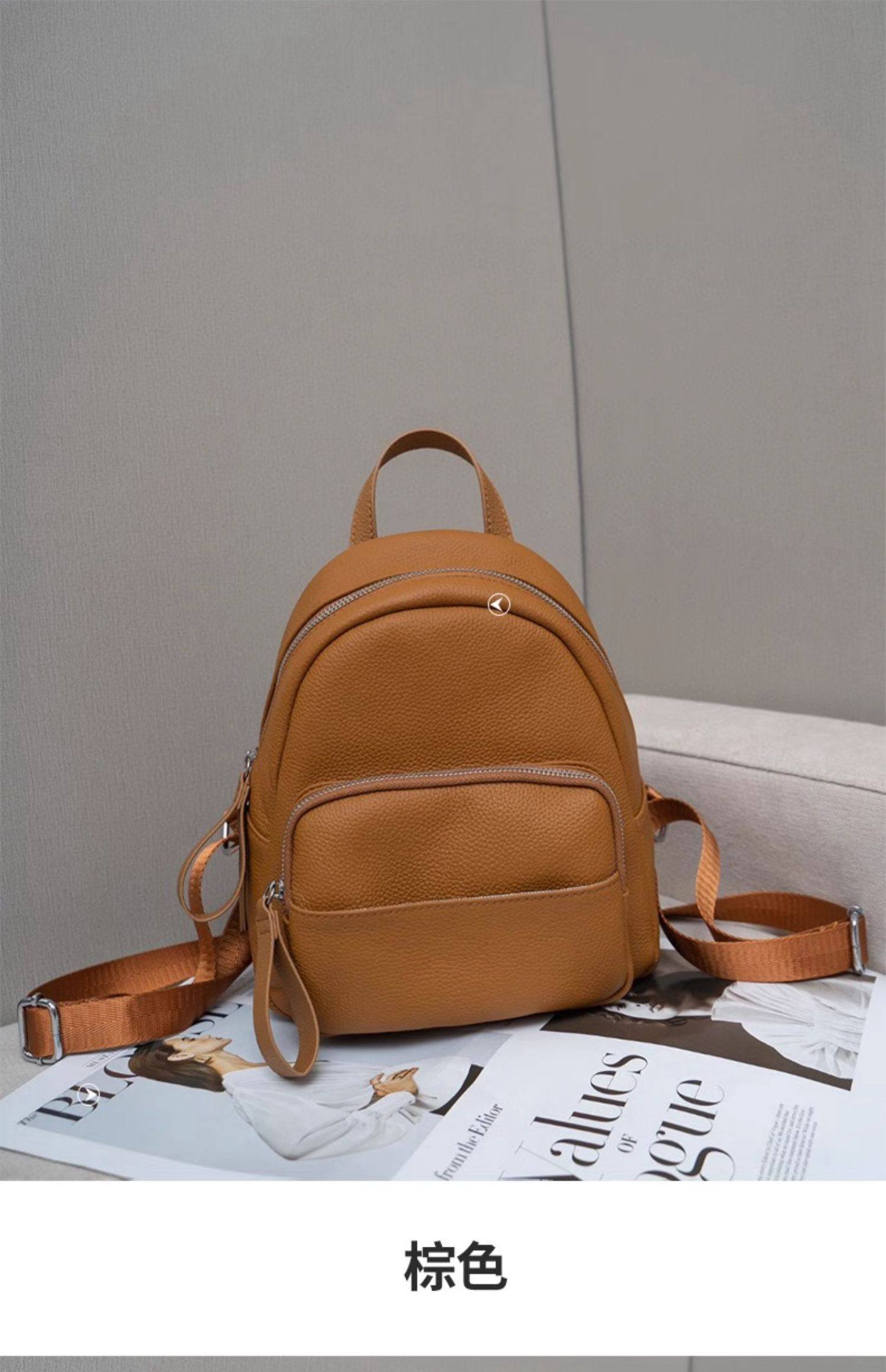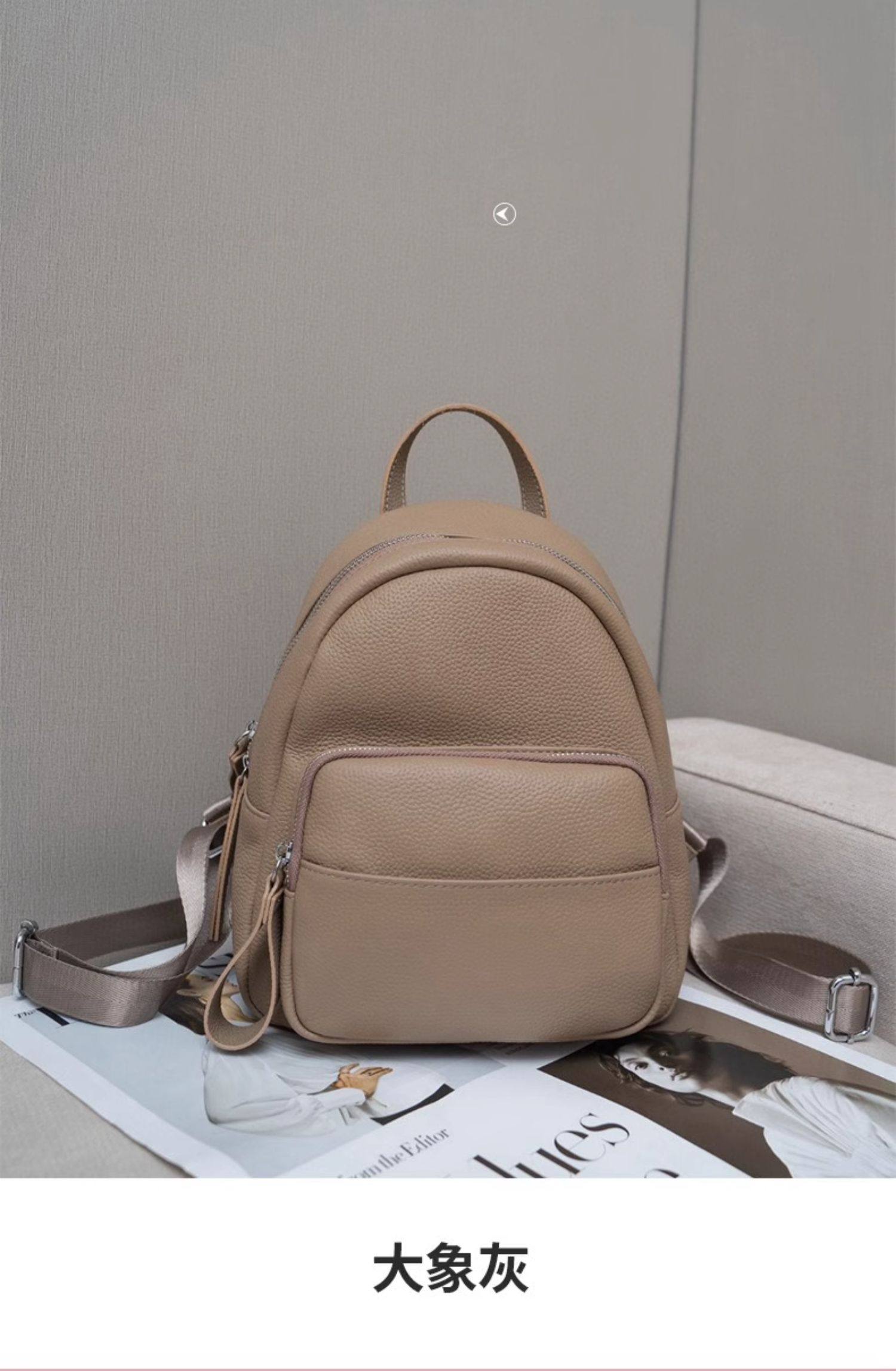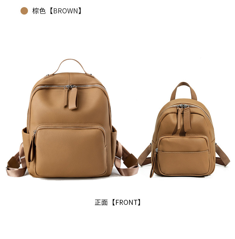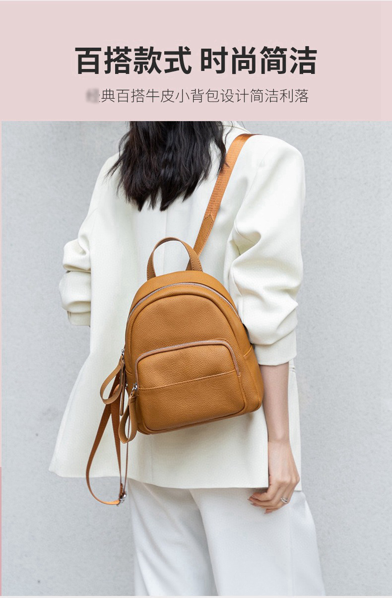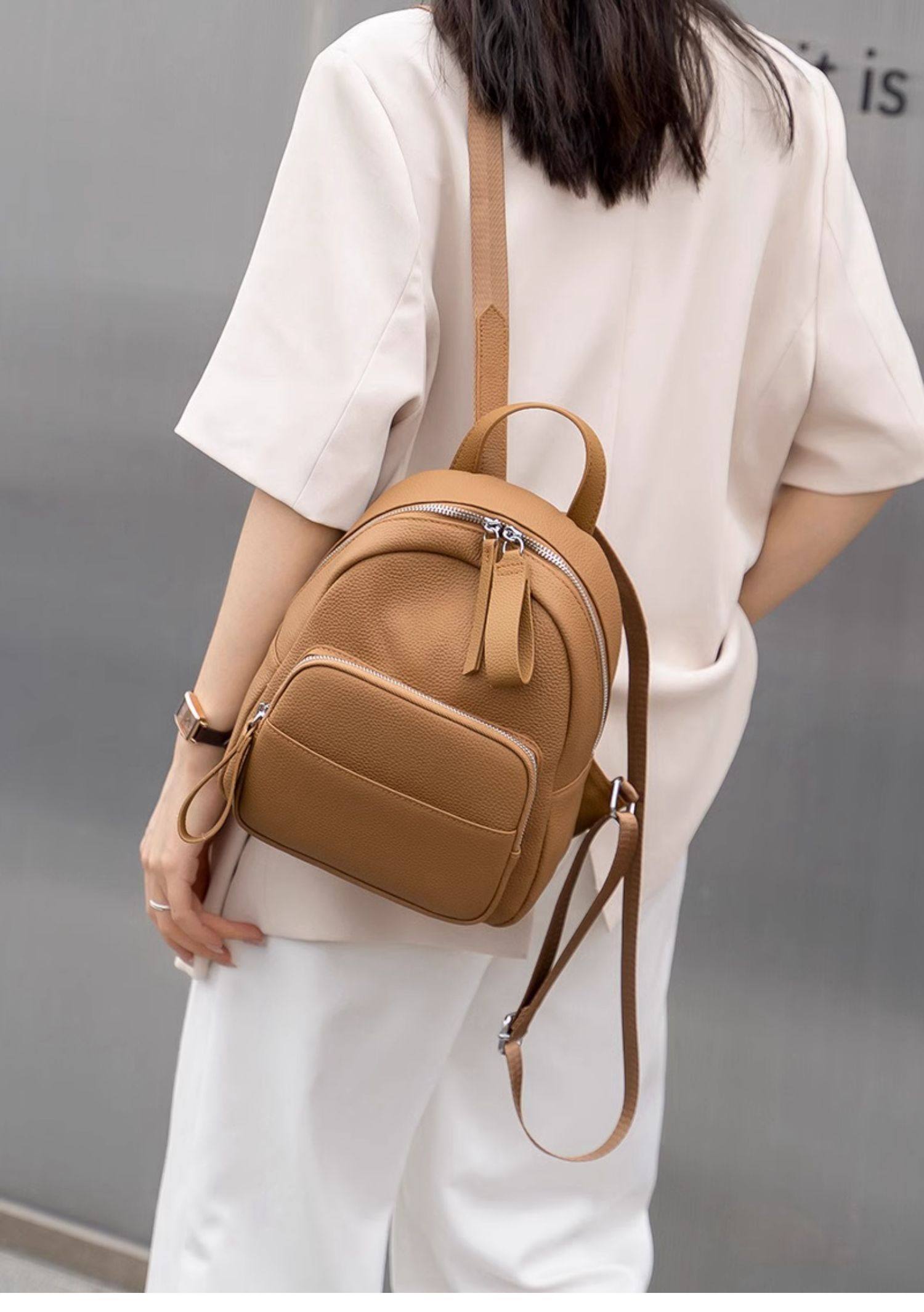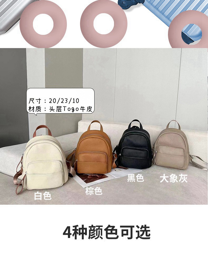 Mochila de cuero genuino de moda, versión coreana informal Togo mochila pequeña de piel de vaca de primera capa, bolso de viaje de cuero suave para mujeres