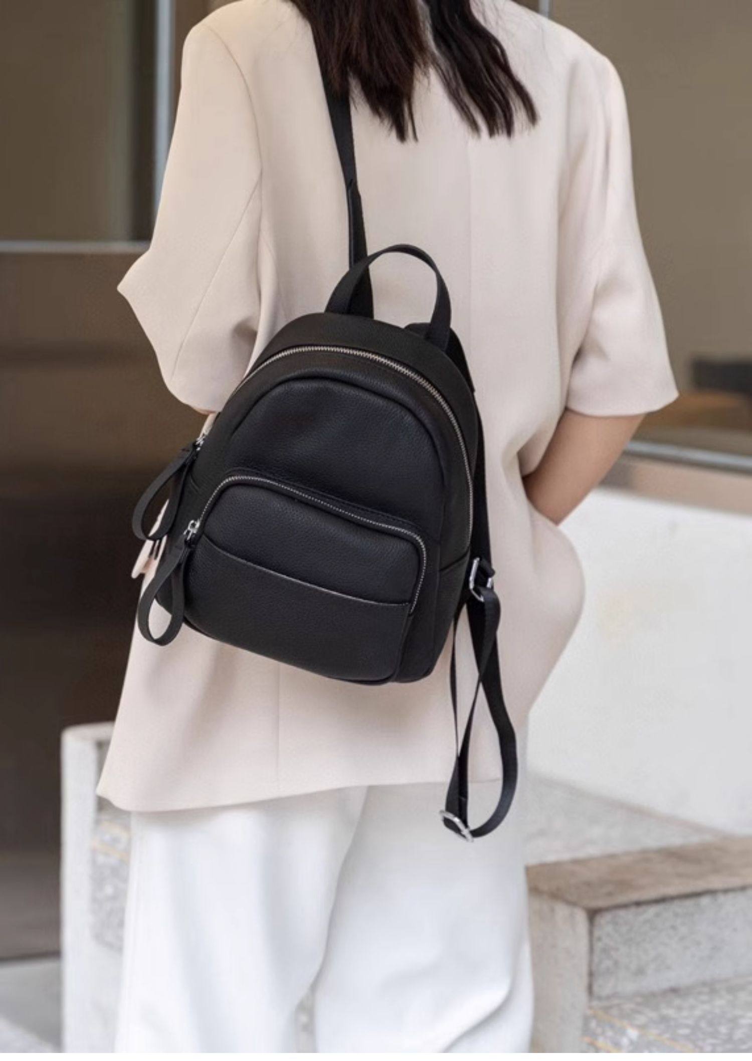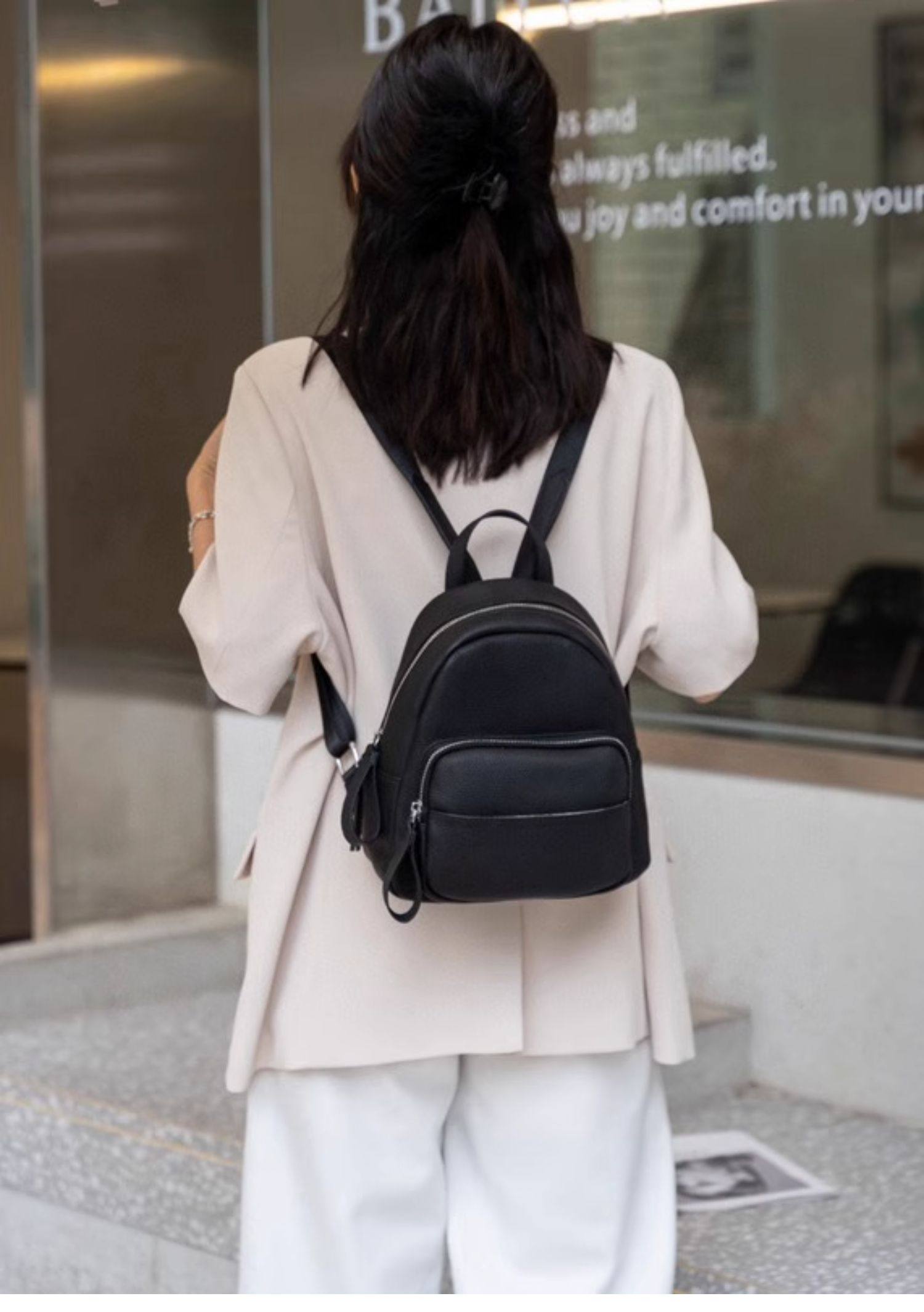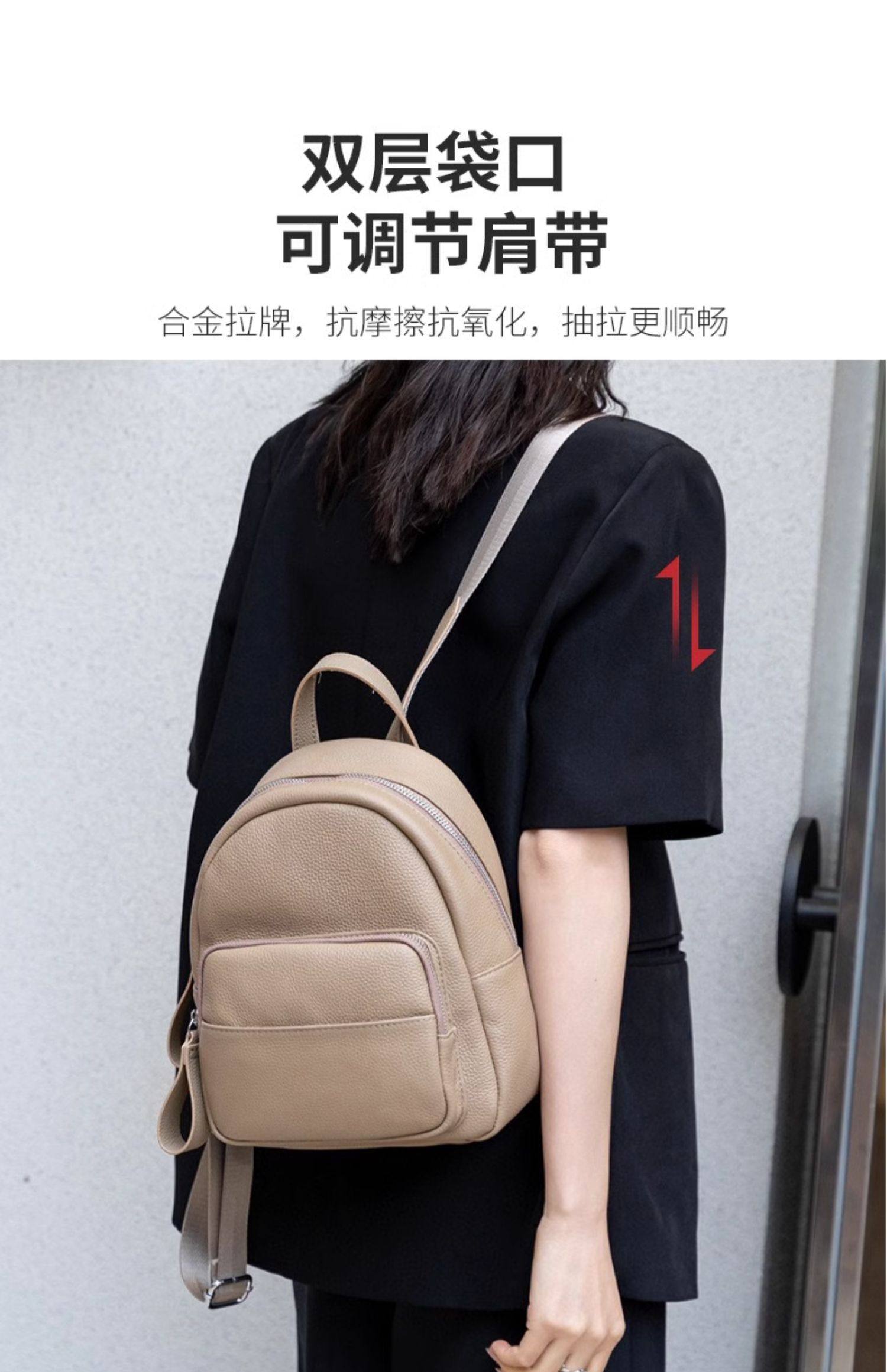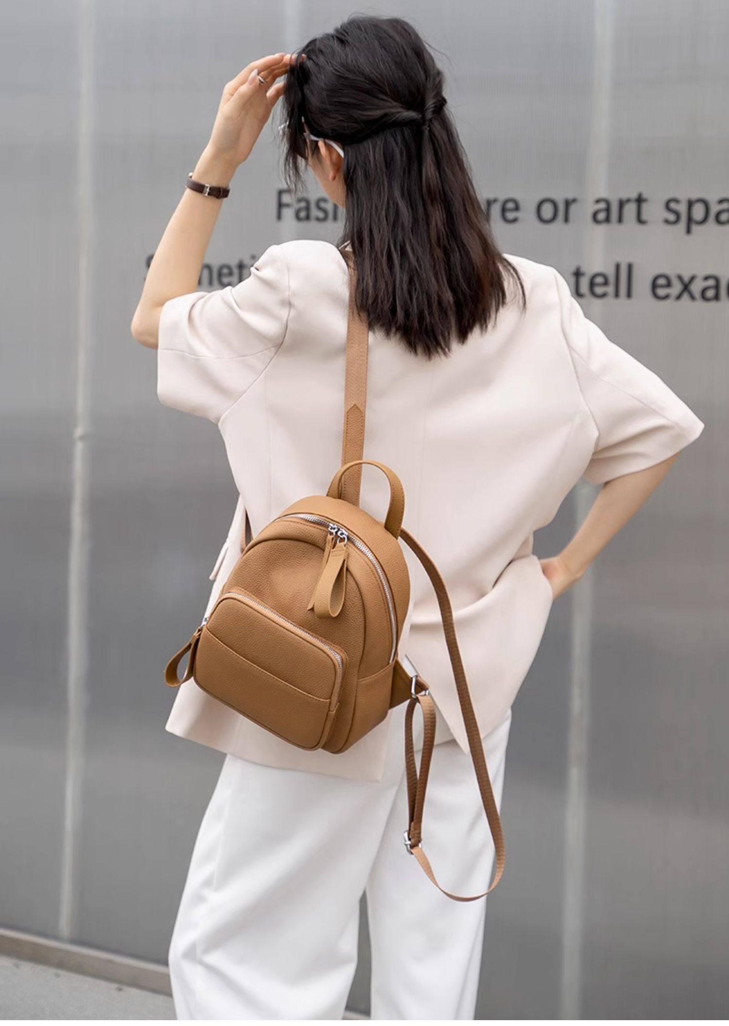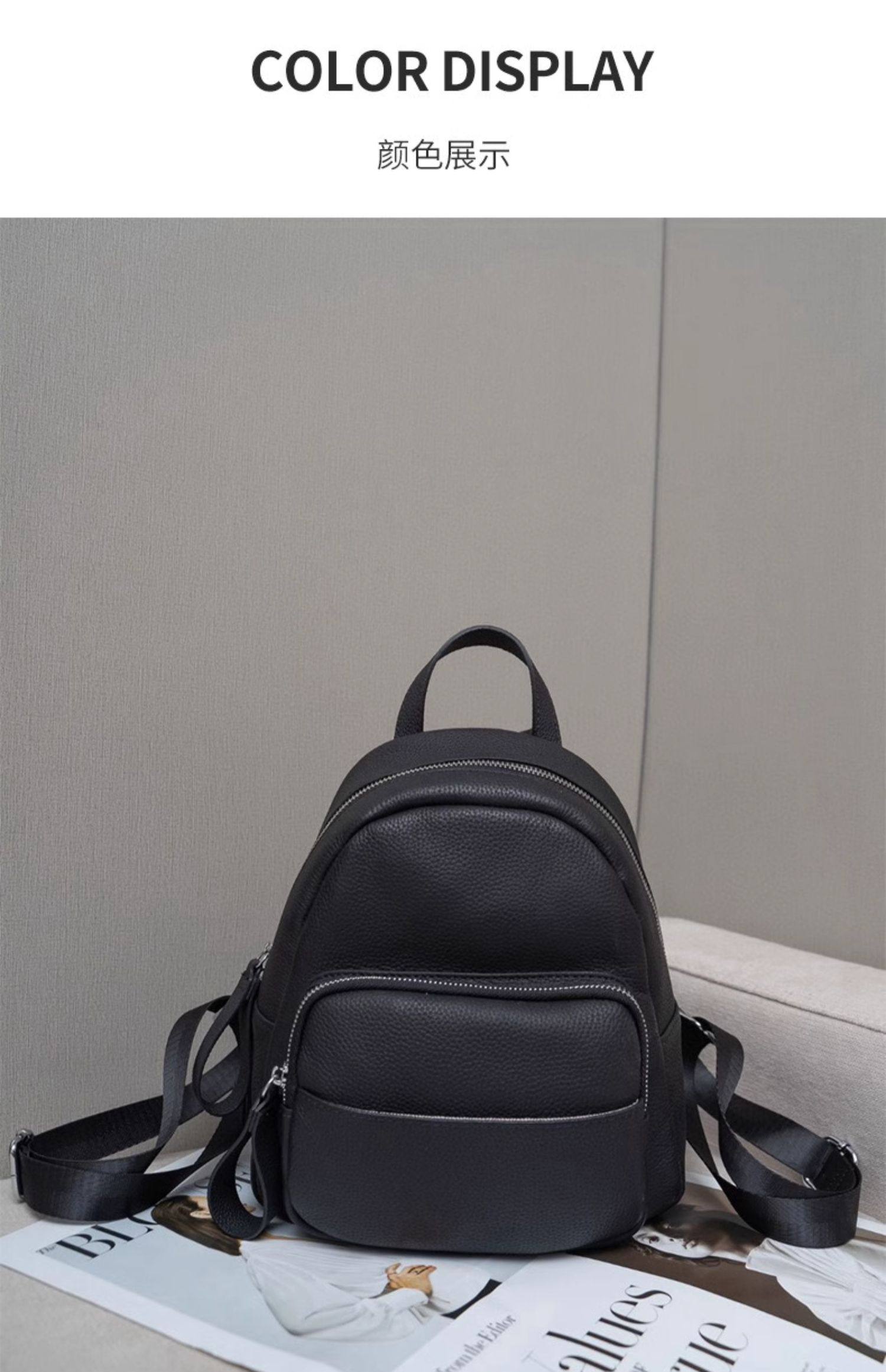 Mochila de cuero genuino de moda, versión coreana informal Togo mochila pequeña de piel de vaca de primera capa, bolso de viaje de cuero suave para mujeres