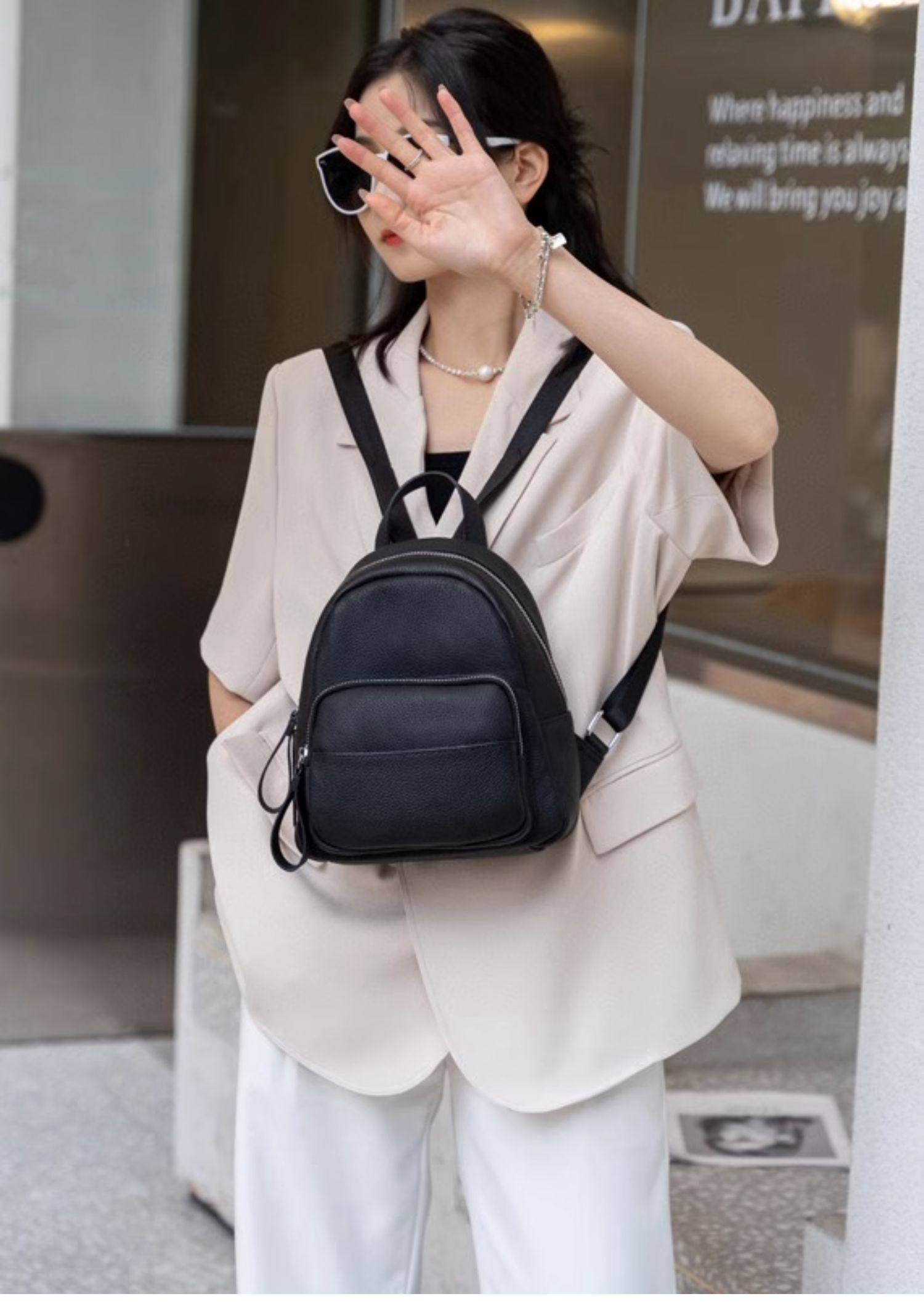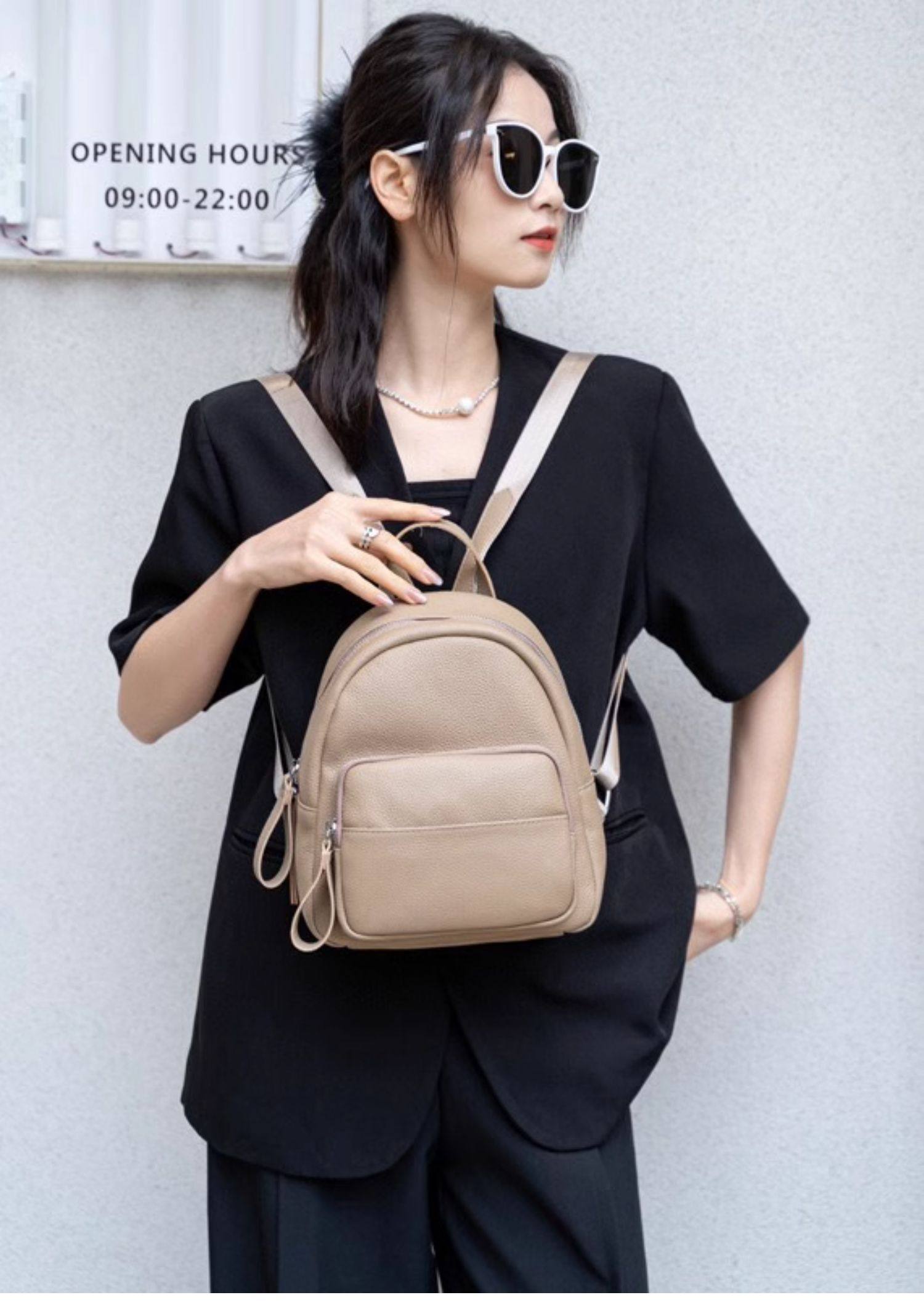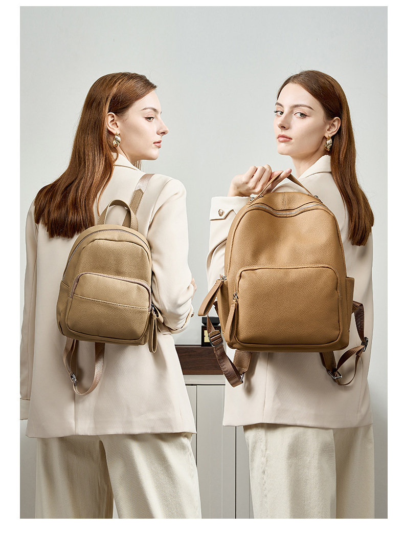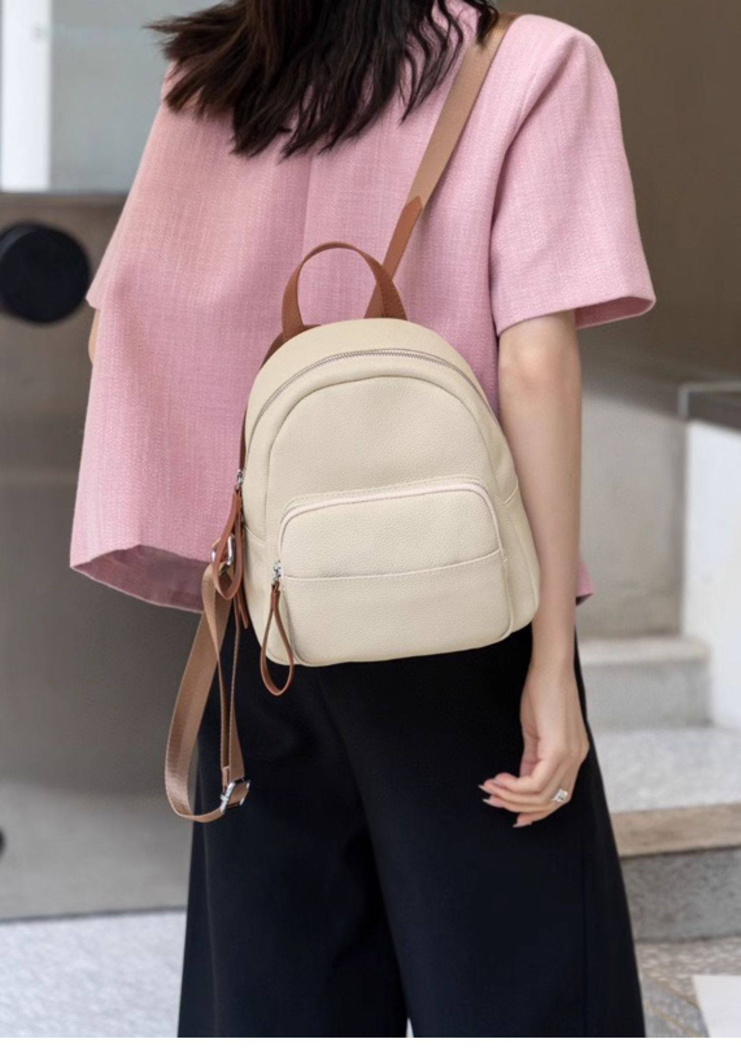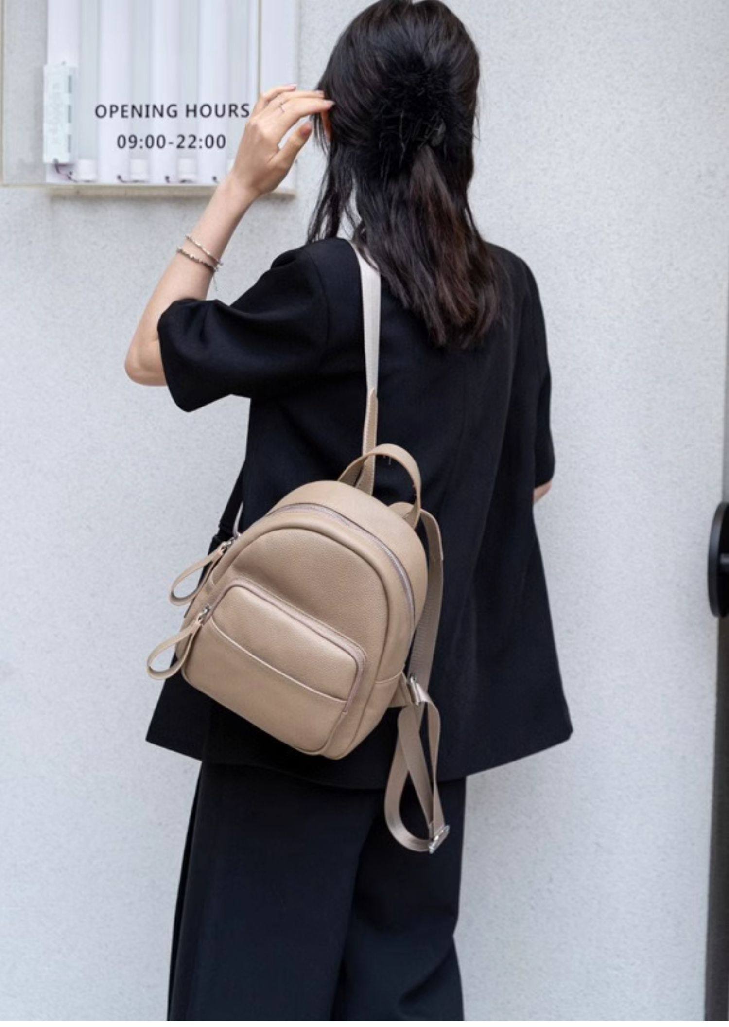 Mochila de cuero genuino de moda, versión coreana informal Togo mochila pequeña de piel de vaca de primera capa, bolso de viaje de cuero suave para mujeres