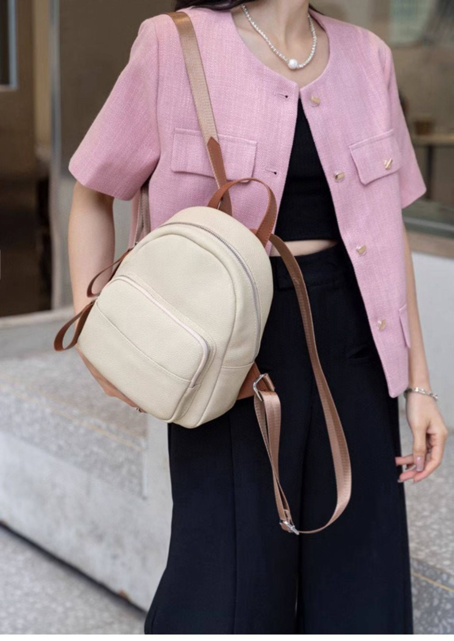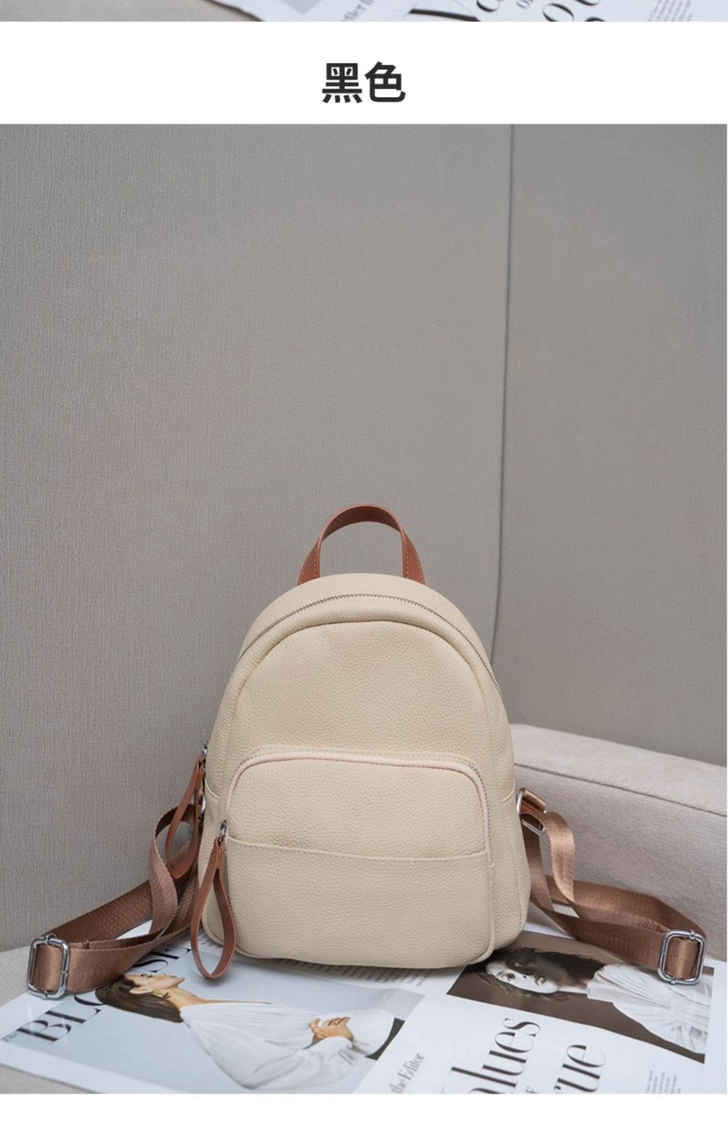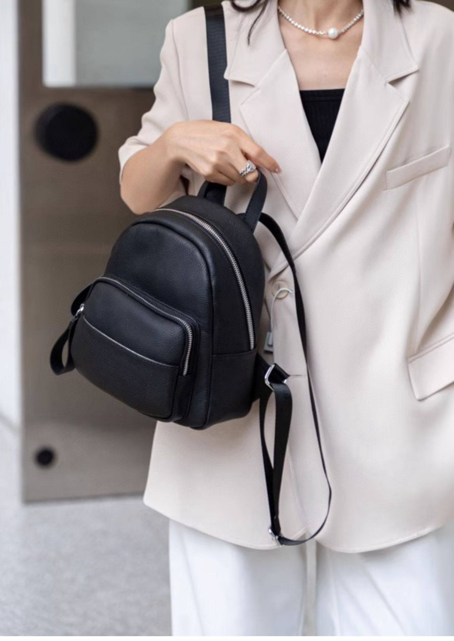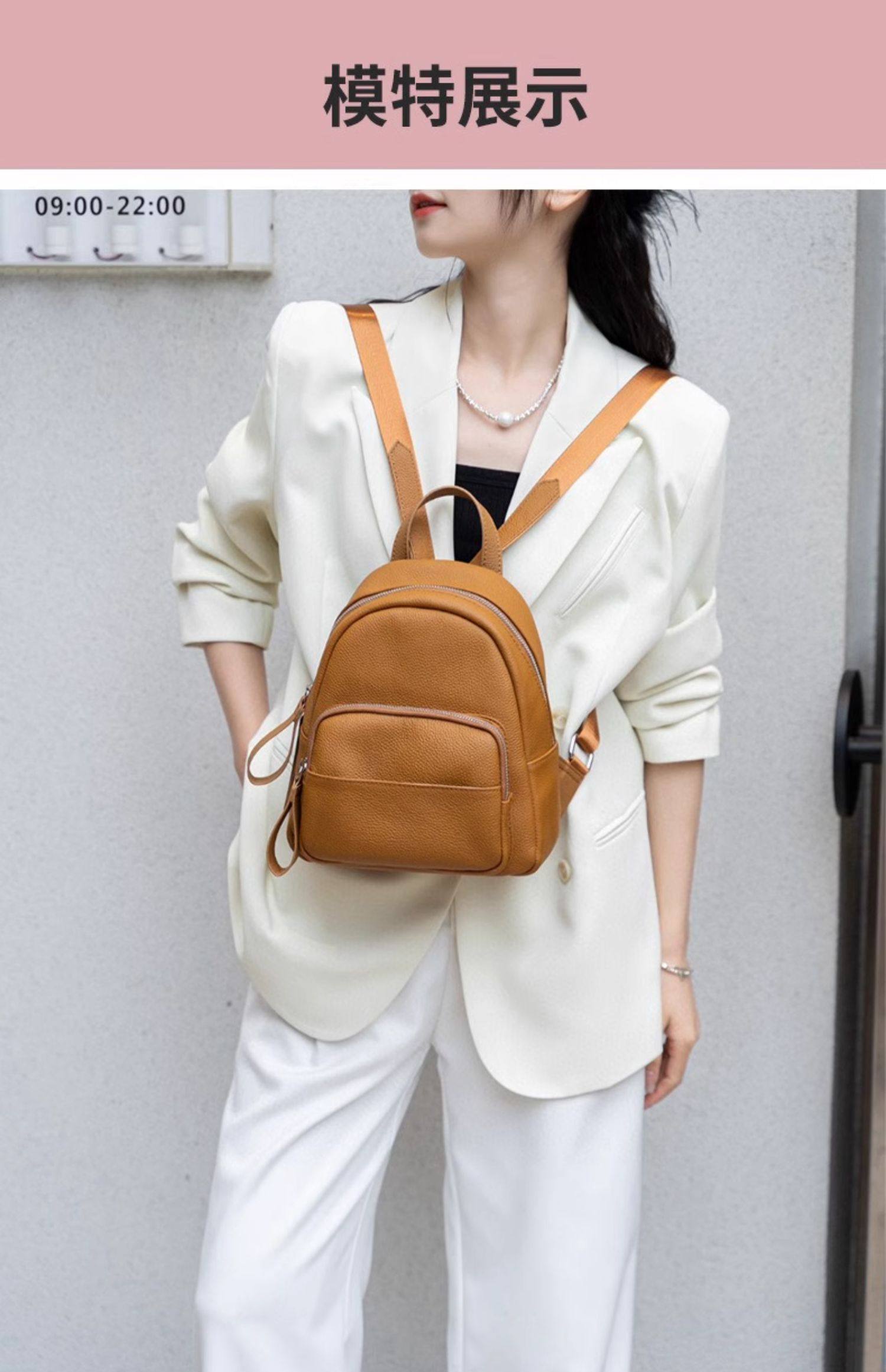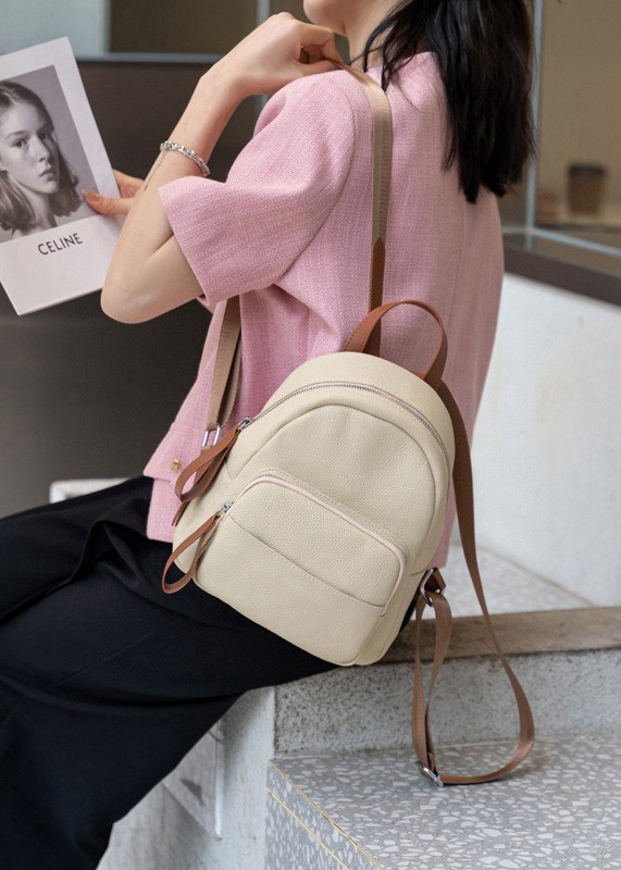 Mochila de cuero genuino de moda, versión coreana informal Togo mochila pequeña de piel de vaca de primera capa, bolso de viaje de cuero suave para mujeres