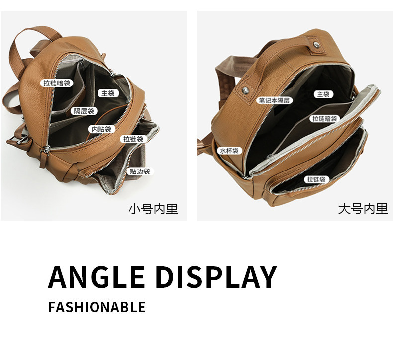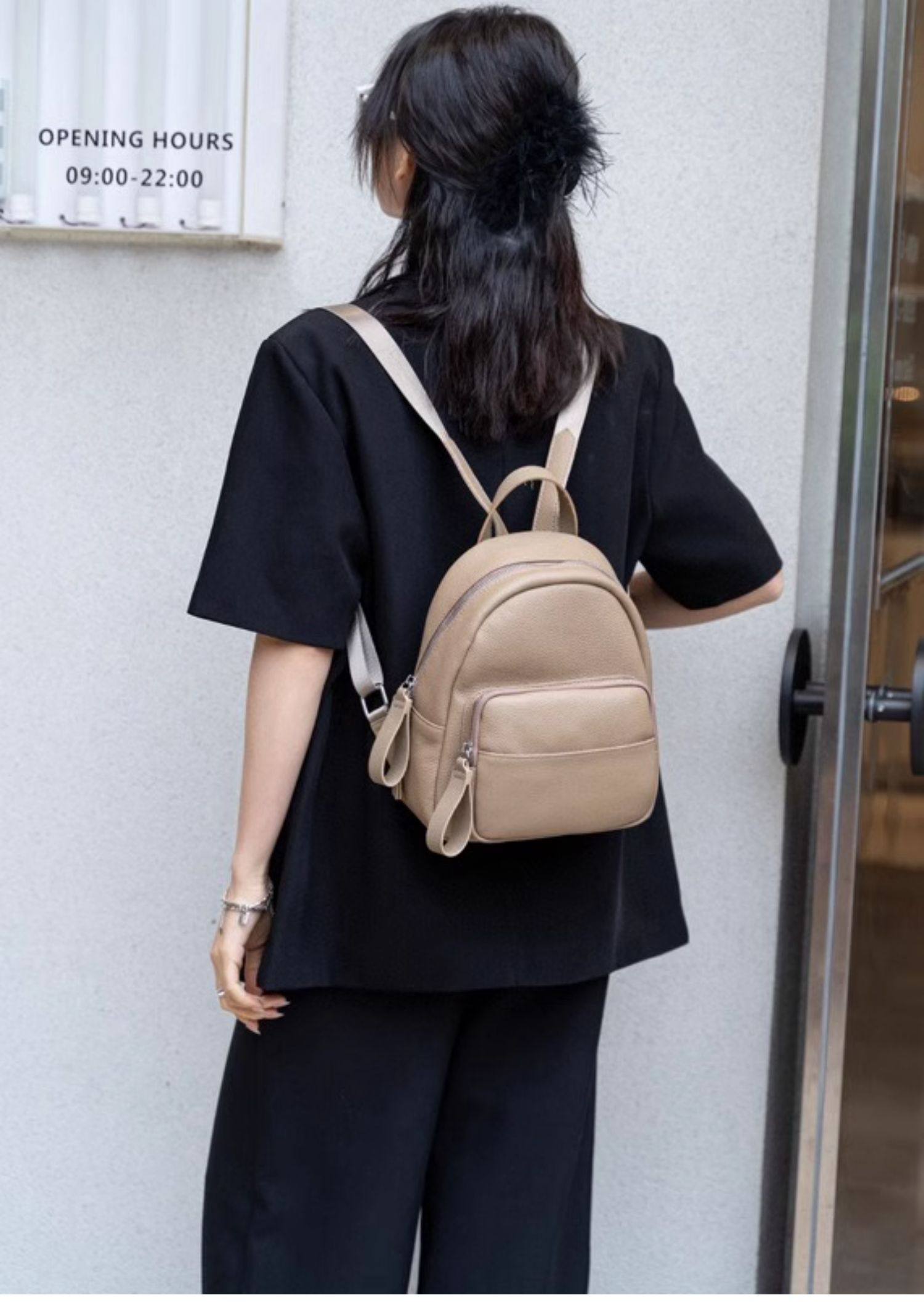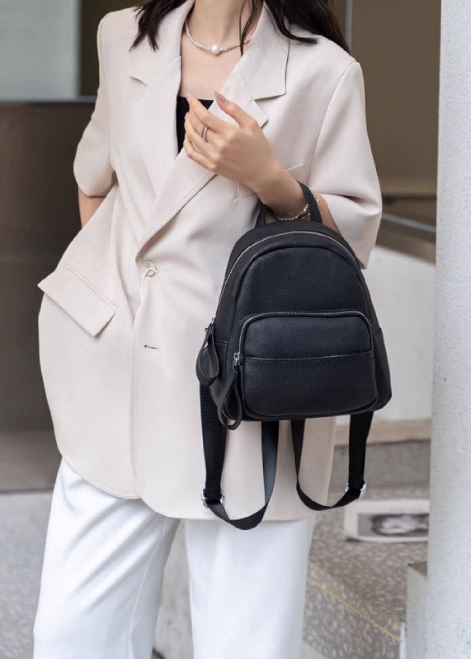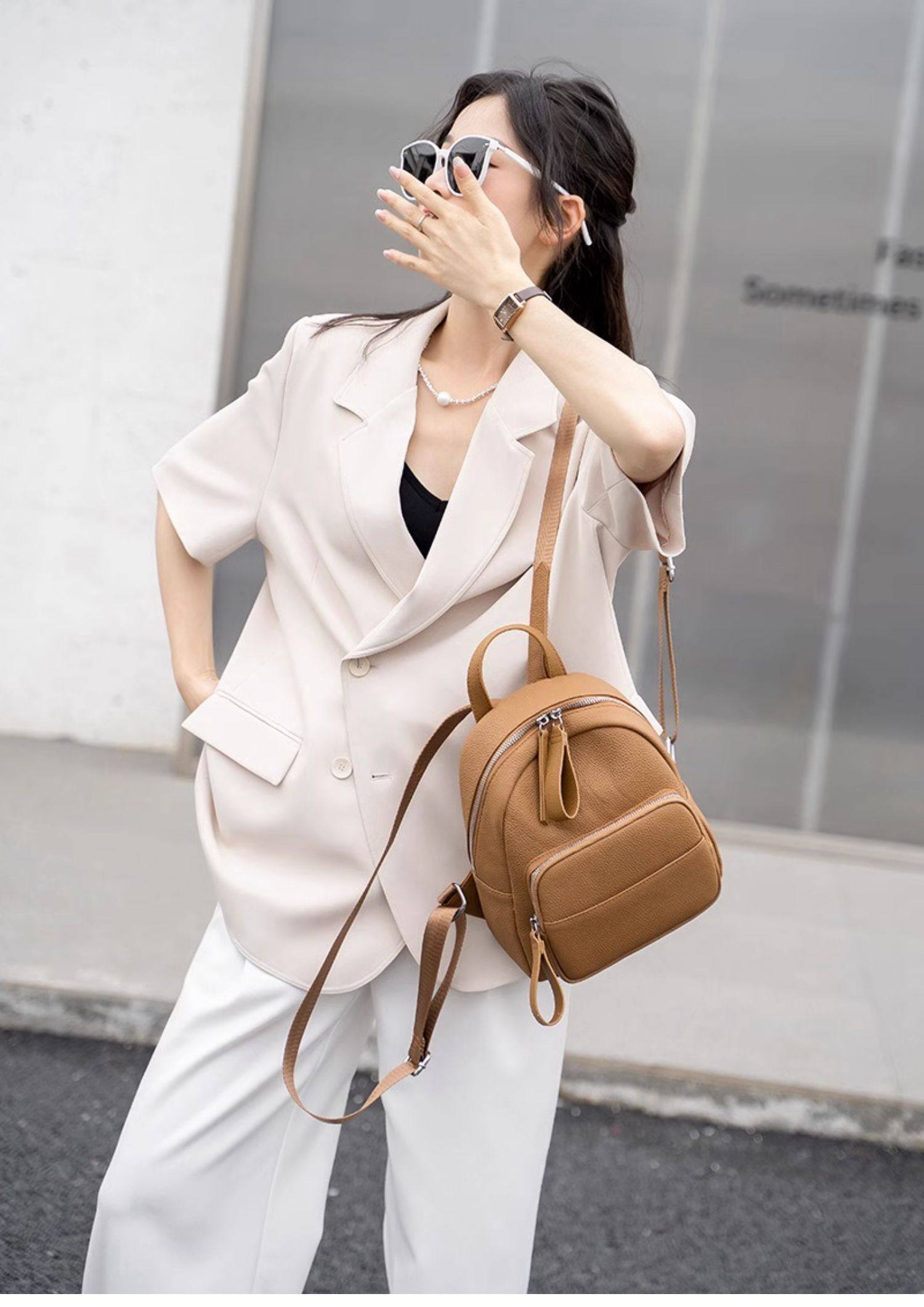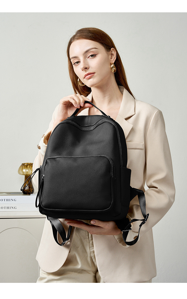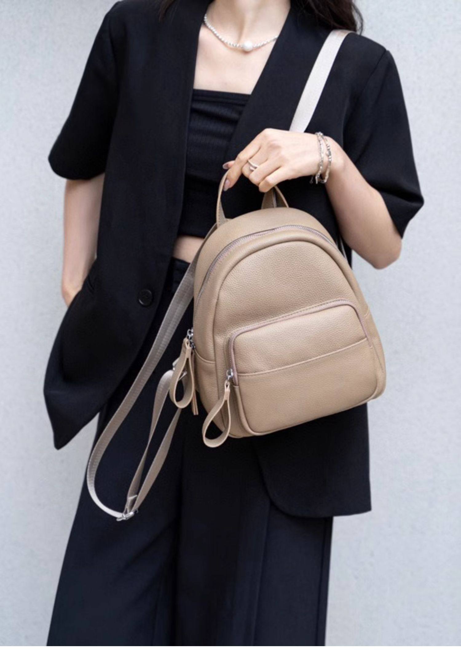 Mochila de cuero genuino de moda, versión coreana informal Togo mochila pequeña de piel de vaca de primera capa, bolso de viaje de cuero suave para mujeres