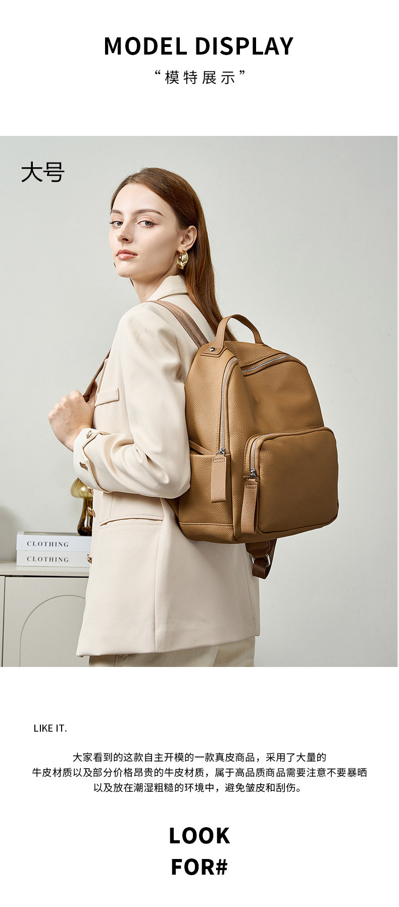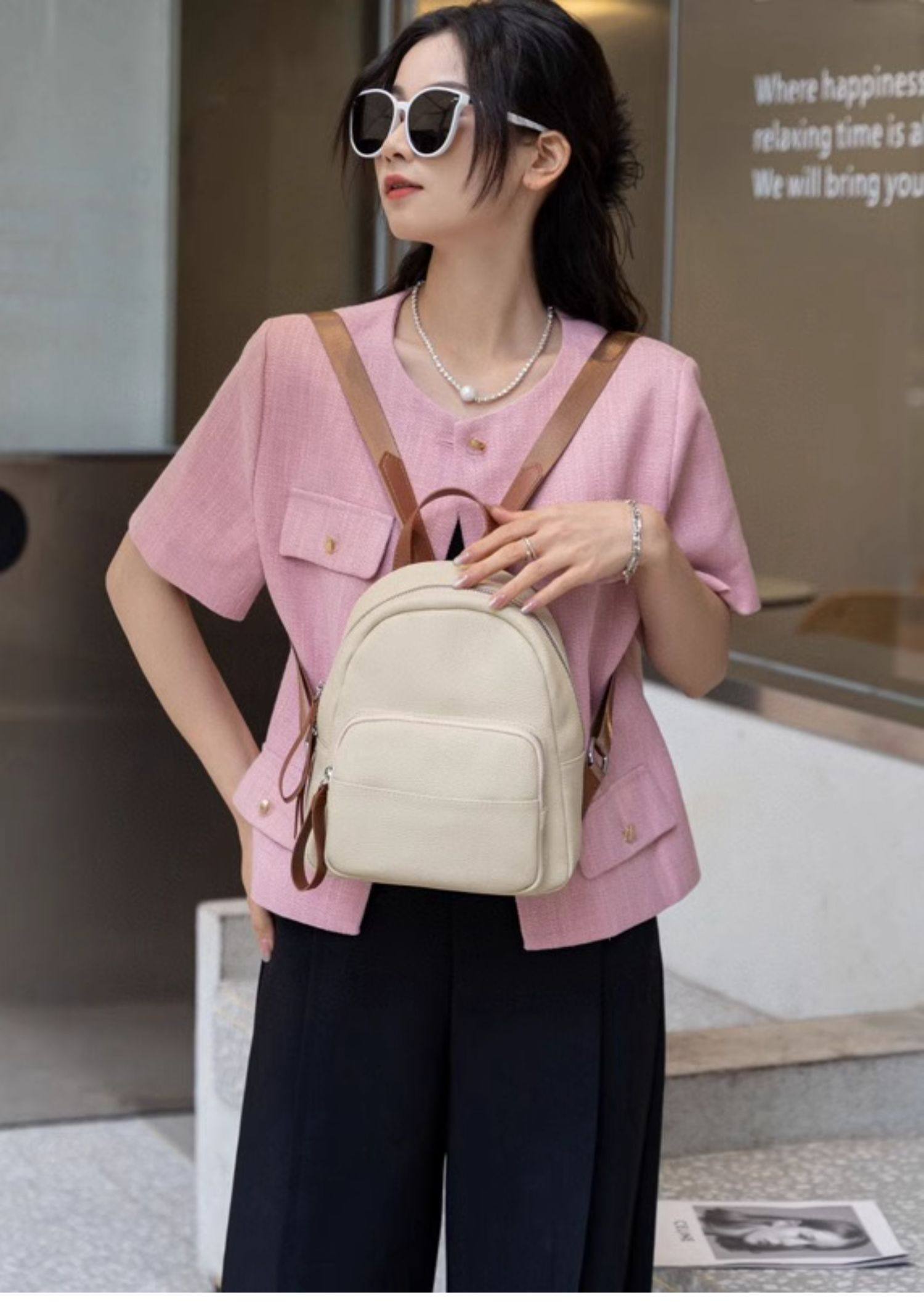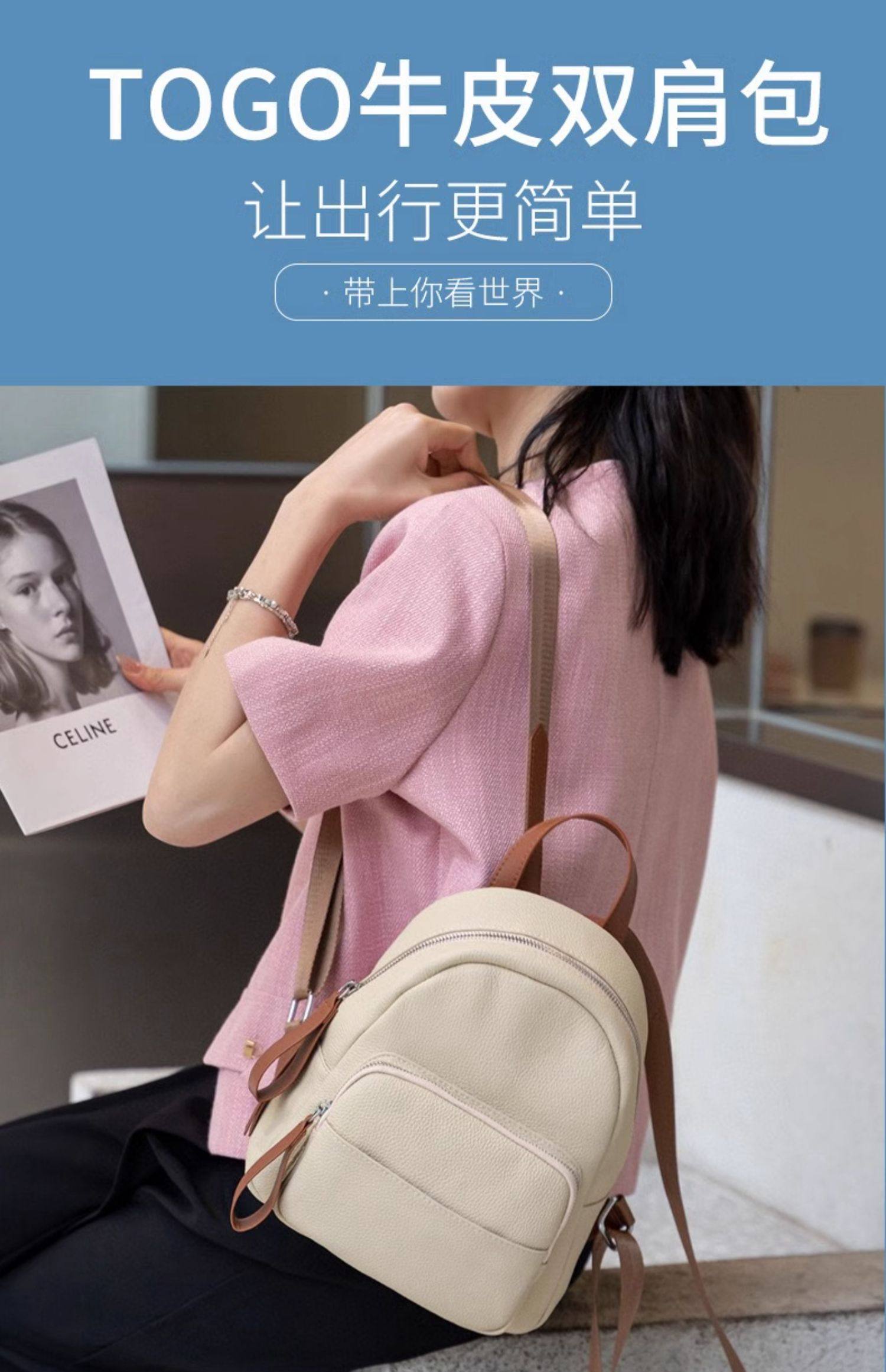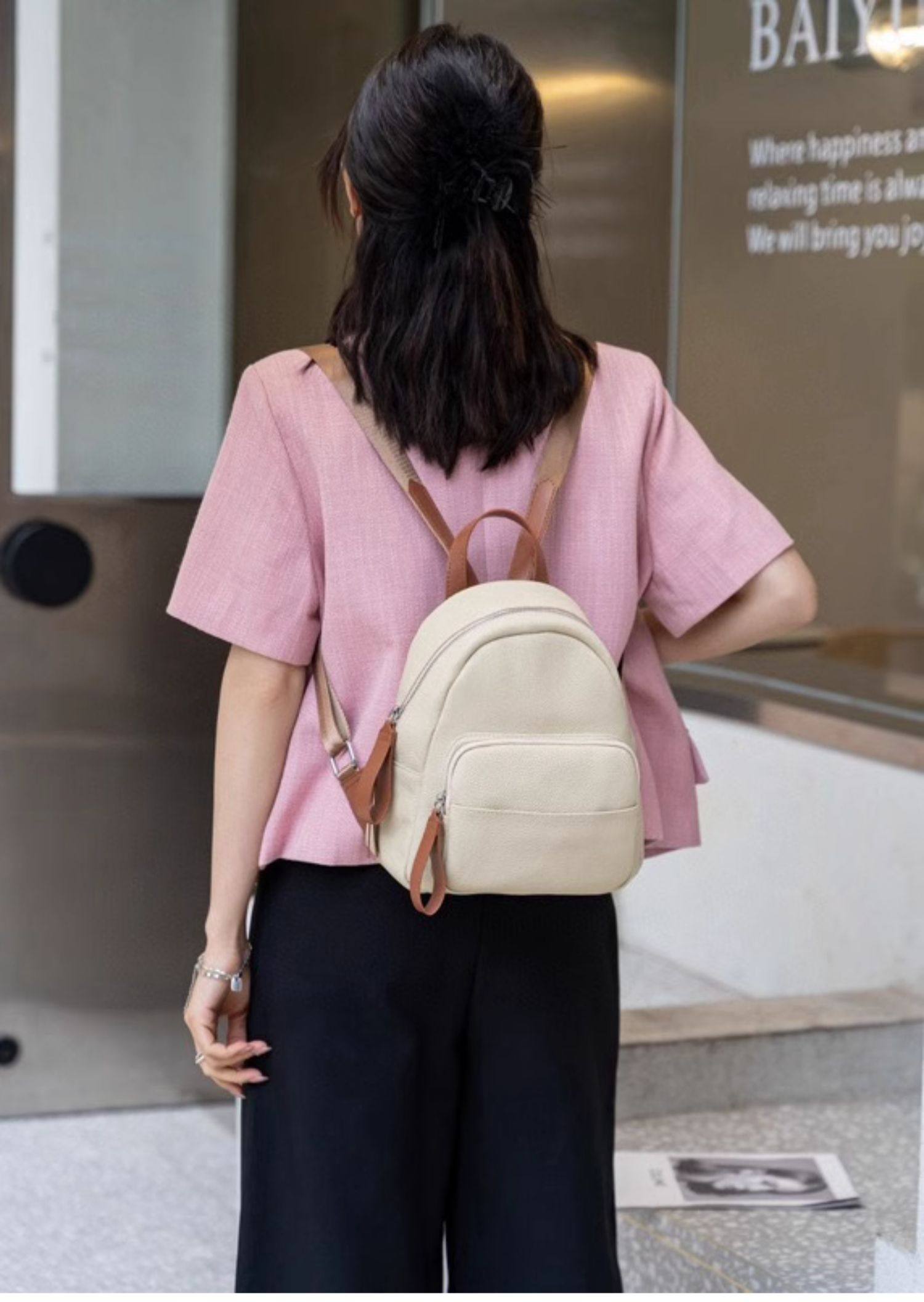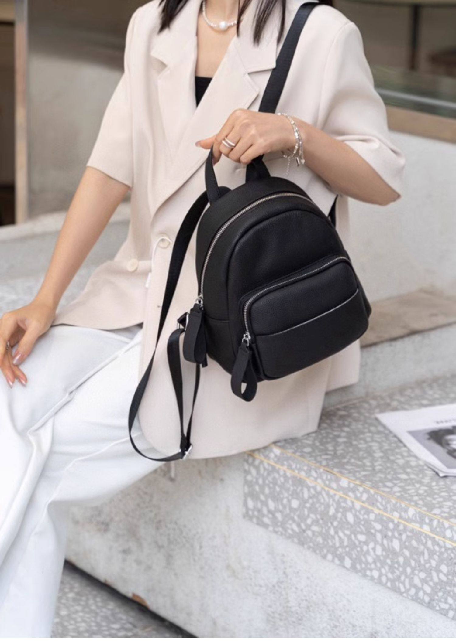 Mochila de cuero genuino de moda, versión coreana informal Togo mochila pequeña de piel de vaca de primera capa, bolso de viaje de cuero suave para mujeres