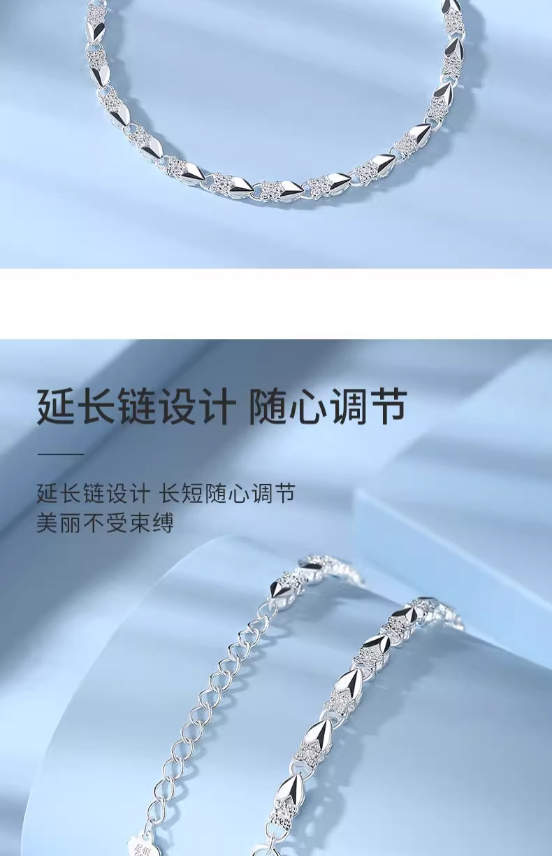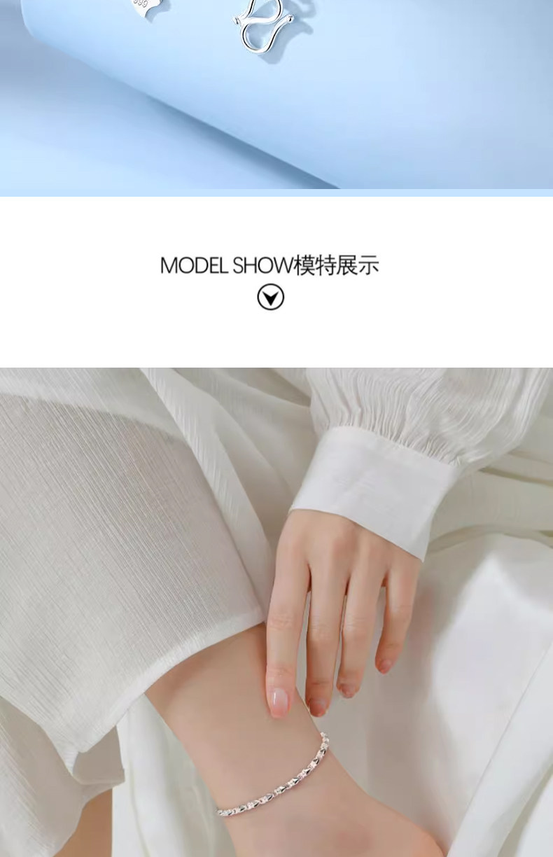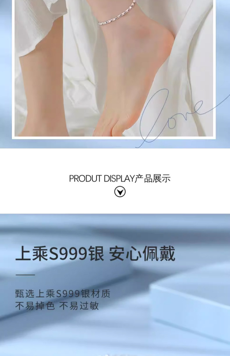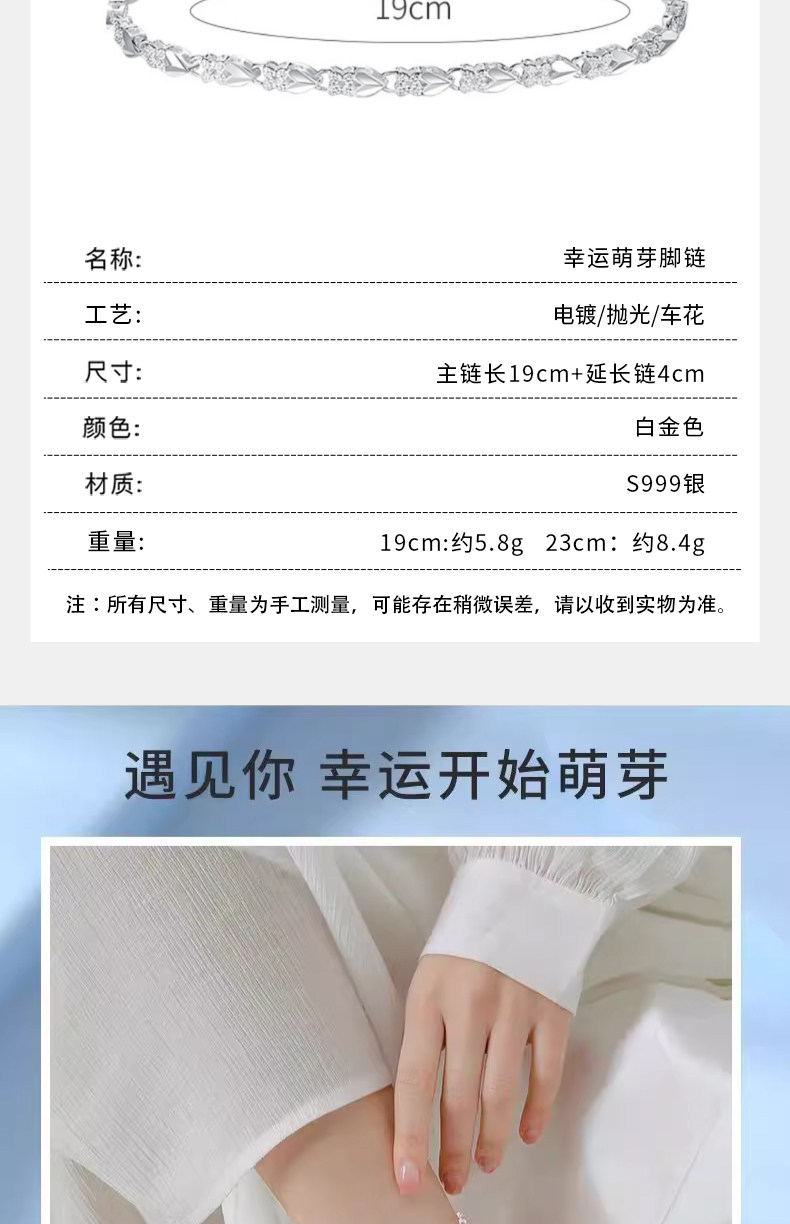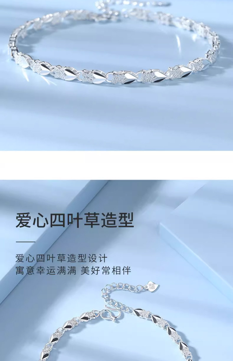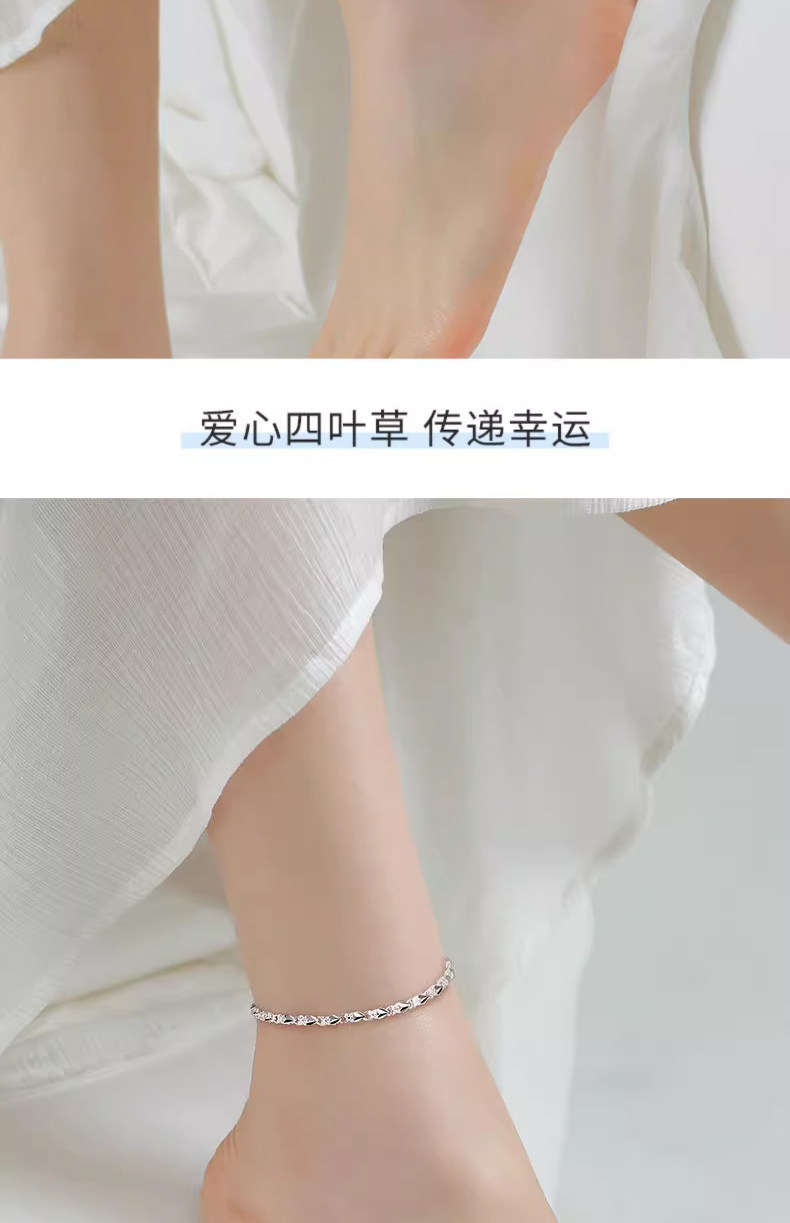 Glückliches vierblättriges Kleeblatt, S999-Sterlingsilber-Fußkettchen für Frauen, authentisches Fußkettchen aus reinem Silber, Damen-Fußkettchen, Valentinstagsgeschenk für Freundin