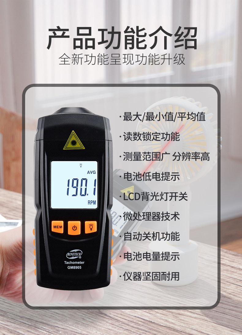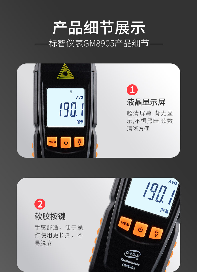 Biaozhi Gm8905 Laser Tachometer, Induction-Type Photoelectric Tachometer, Contact-Type Tachometer
