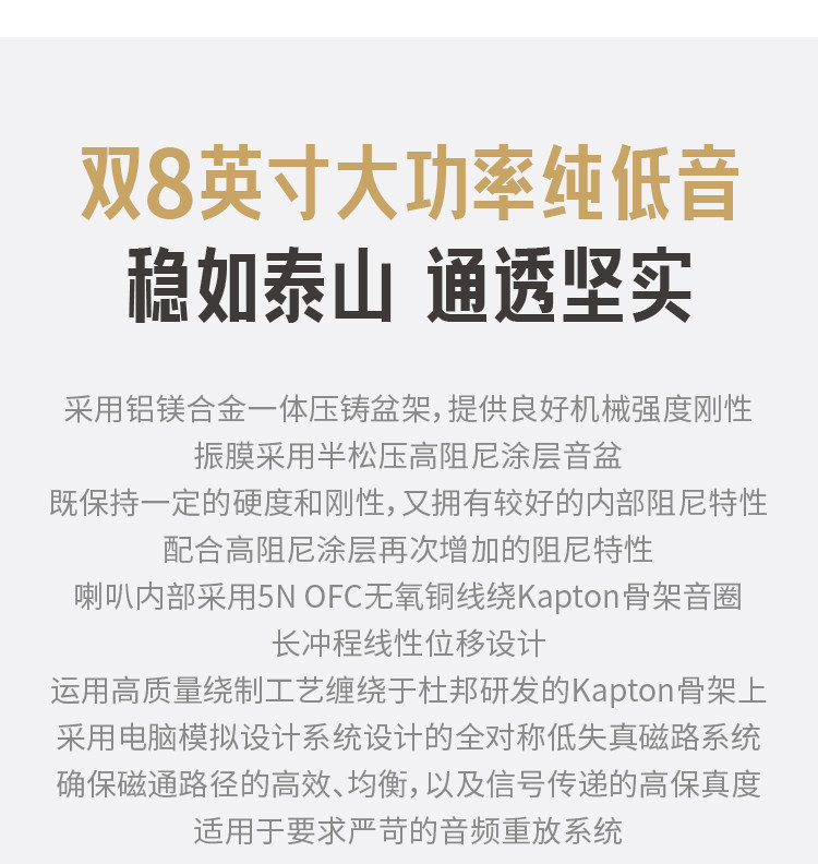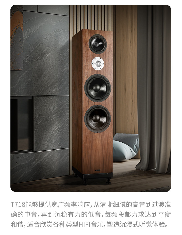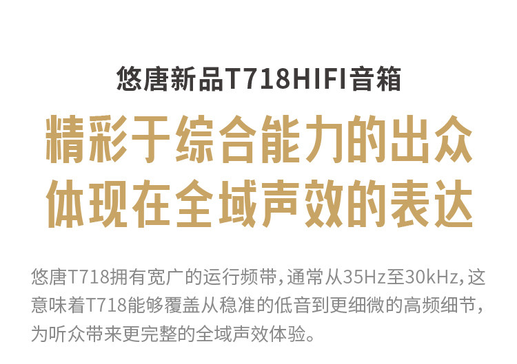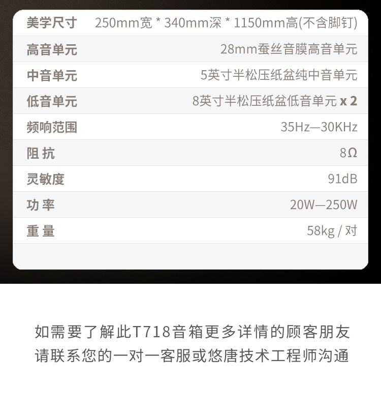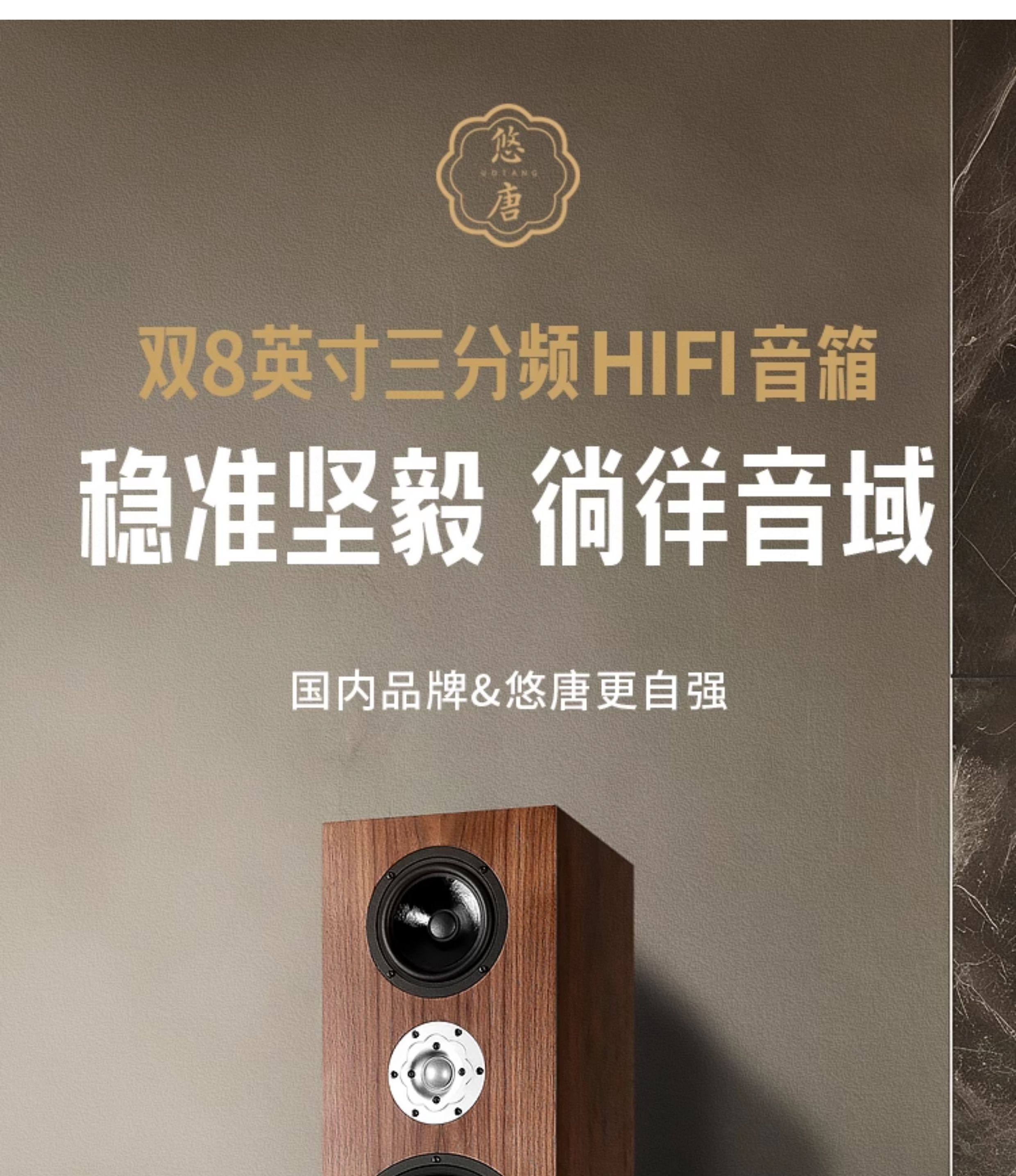 悠唐 T718发烧级hifi无源音箱双8英寸音响高中低音三分频落地音箱
