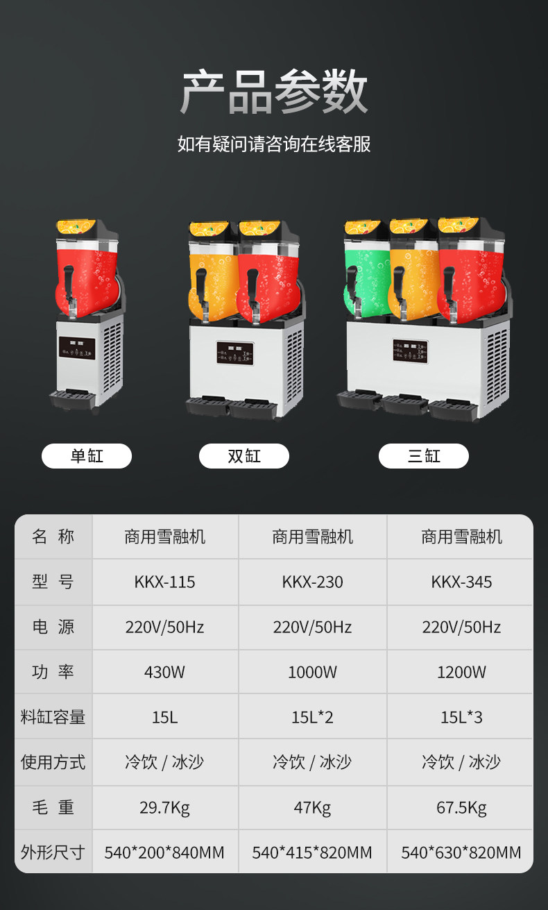 颜色分类 单缸冷饮/沙冰两用15升,双缸冷饮/沙冰两用30升,三缸冷饮/沙冰两用45升
