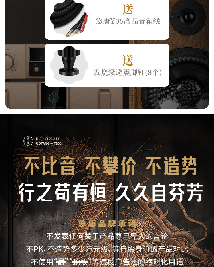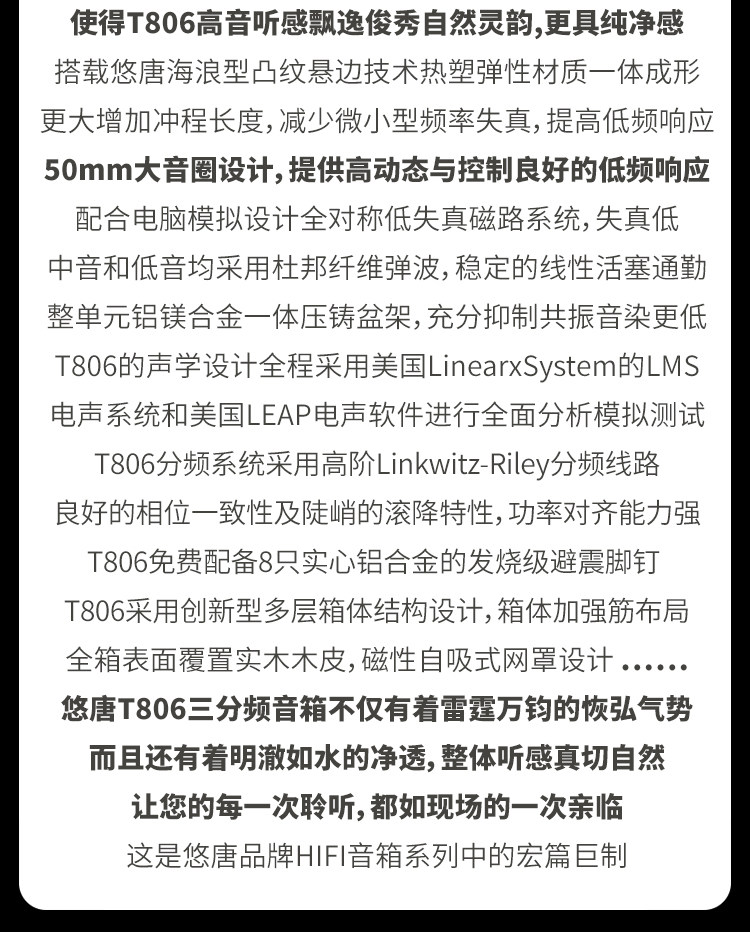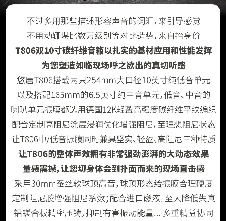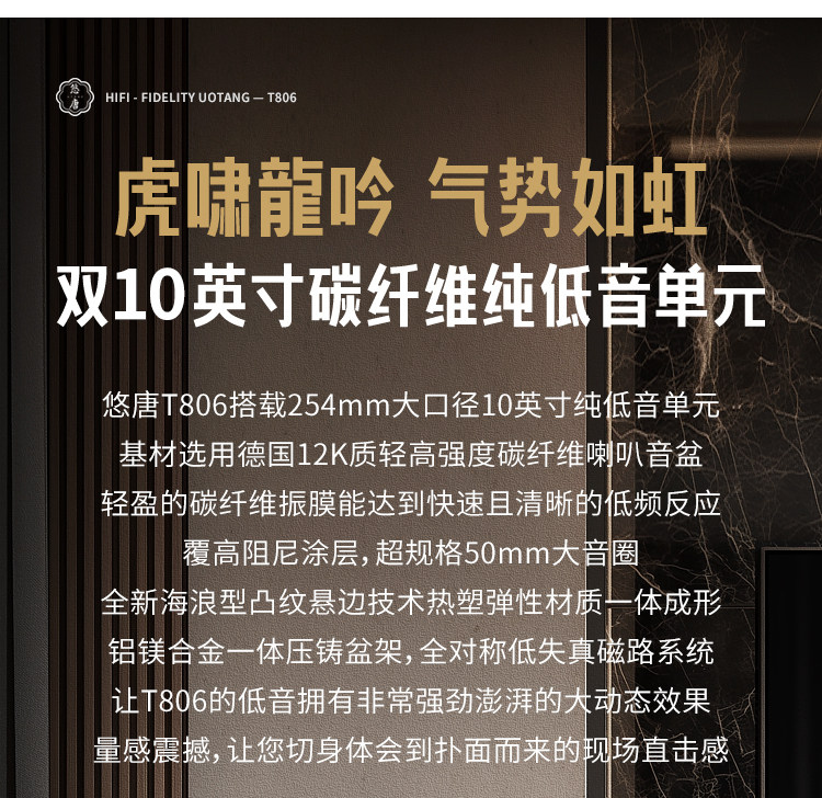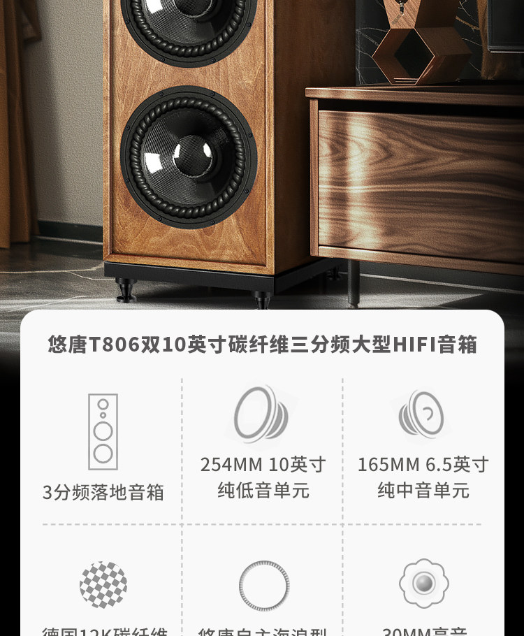 悠唐T806无源音箱hifi发烧级落地音箱高中低音10寸三分频专业音响