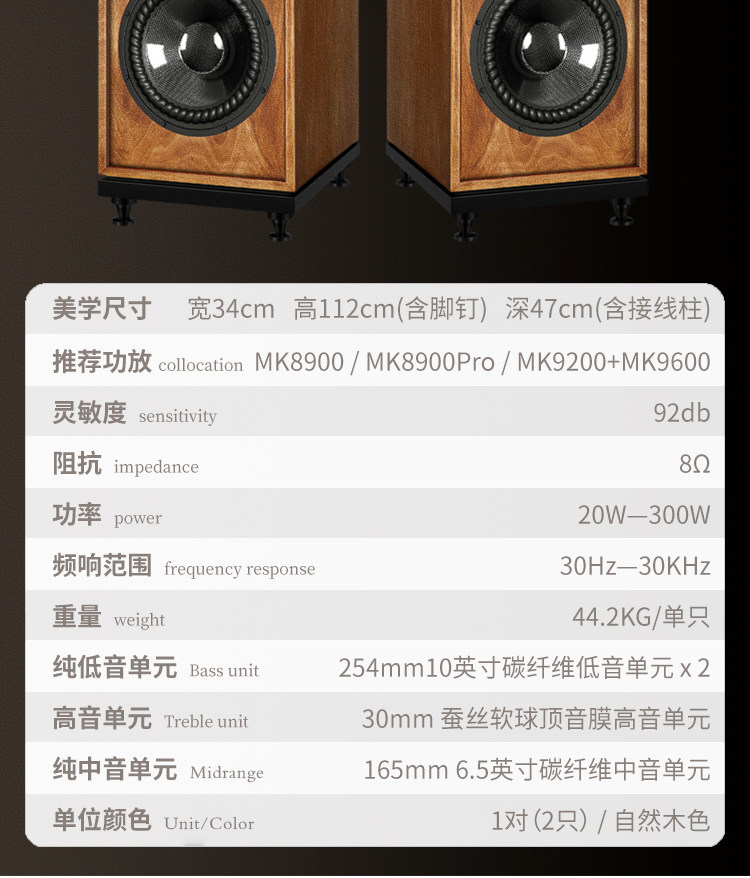 颜色分类 HIFI音箱双10英寸,MK9200前级+MK9600后级功放+T806落地箱(组合套装)