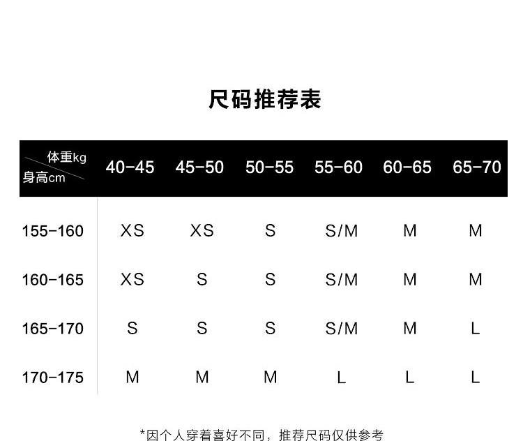 China (cm) 160-165/84-86 165-170 / 88-90 167-172 / 92-96 168-173 / 98-102 170-176 / 106-110
