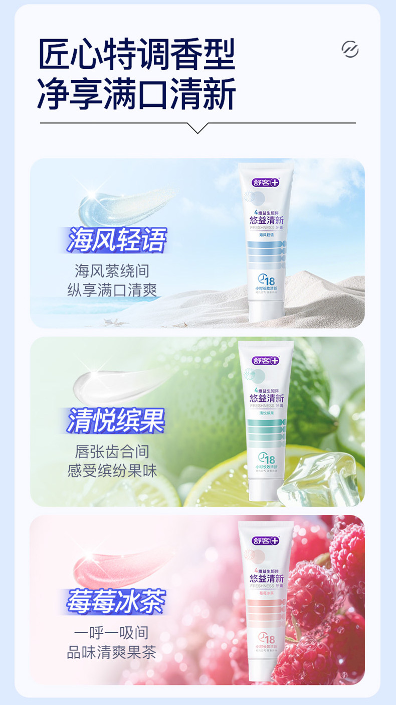 颜色分类 【4支】冰茶莓莓*2支+海风沁薄+清悦鲜果*旅行装*2支,【3支】冰茶莓莓+海风沁薄+清悦鲜果*旅行装*2支,【2支】冰茶莓莓+海风沁薄+旅行装,【2支】冰茶莓莓+清悦鲜果+旅行装,益生菌海风沁薄120g*1支+旅行装*1支,益生菌冰茶莓莓120g*1支+旅行装*1支,益生菌清悦鲜果120g*1支+旅行装*1支