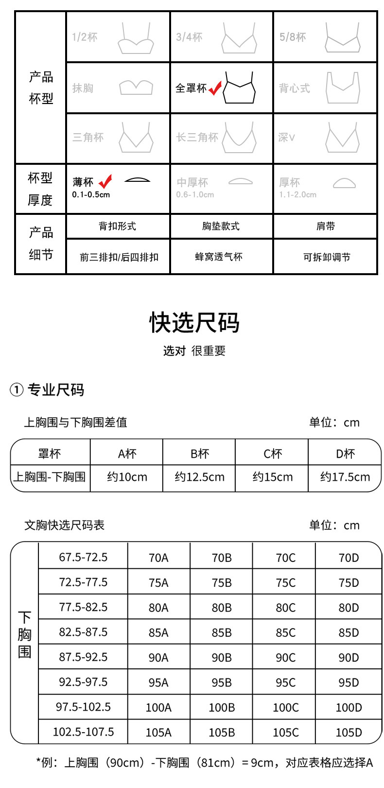 Size 95C,95D,90C,95B,85B,90D,85D,90B,80C,85C,80D,75D,75C,80B,75B,105C,105D,100C,100D