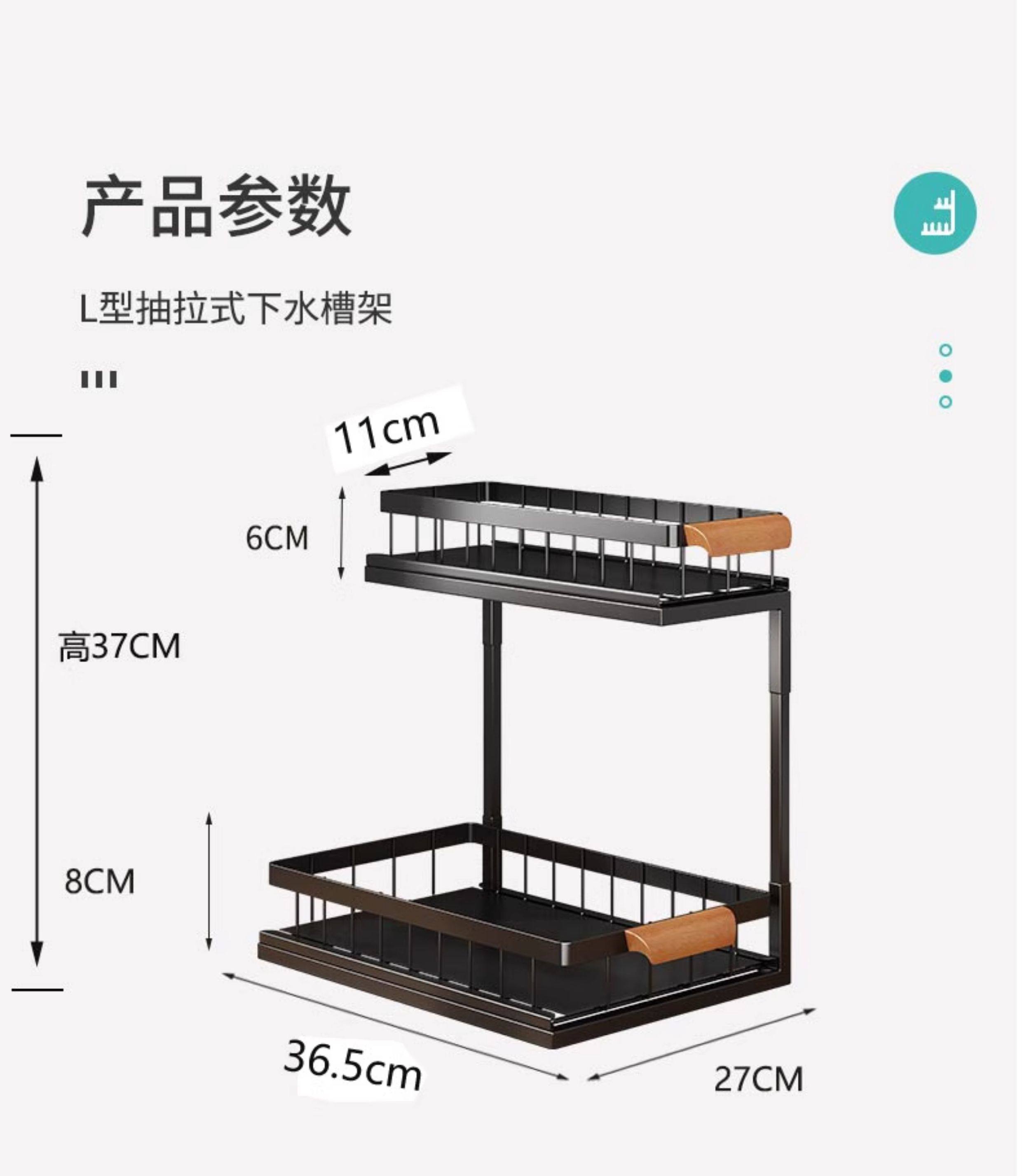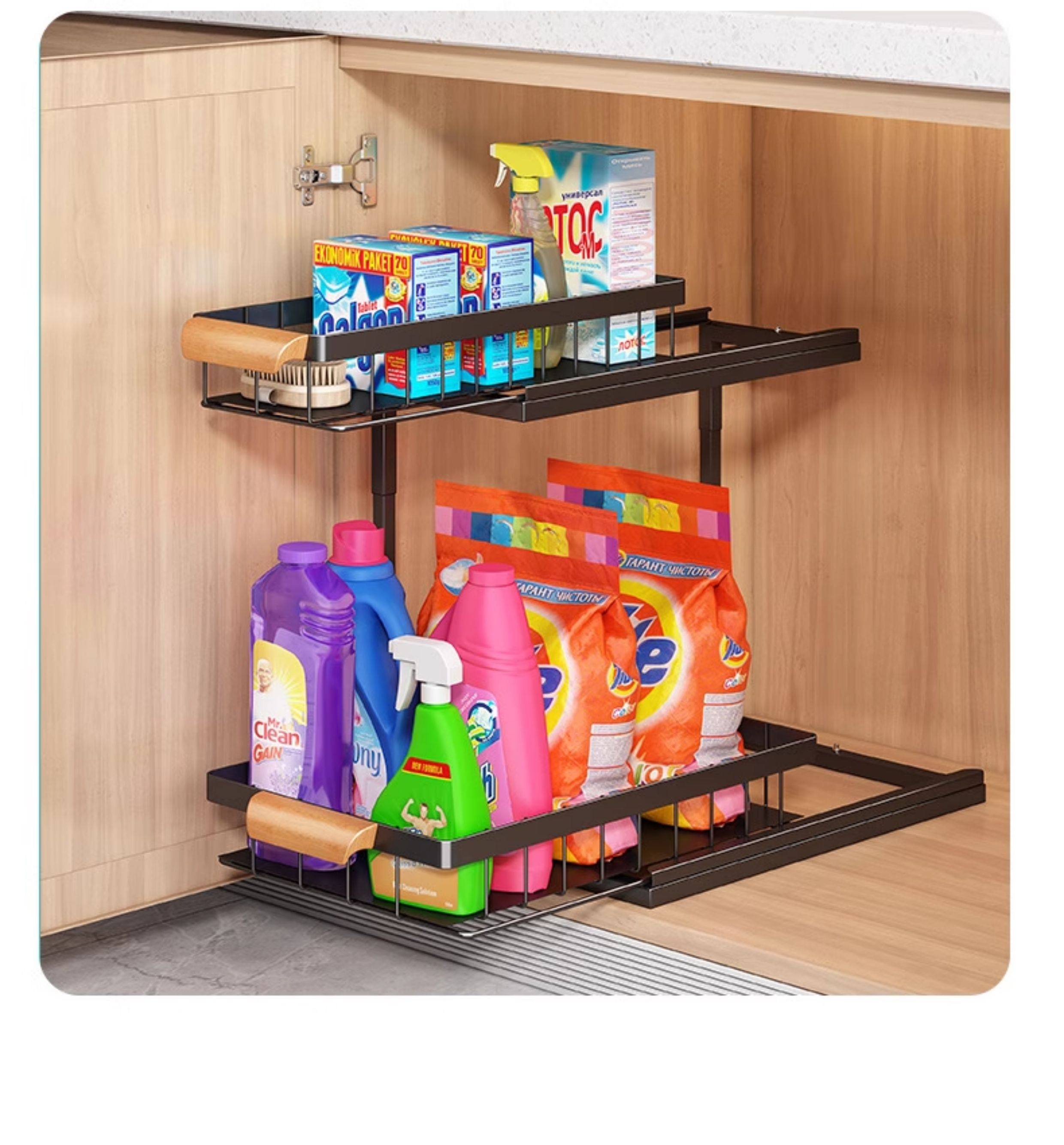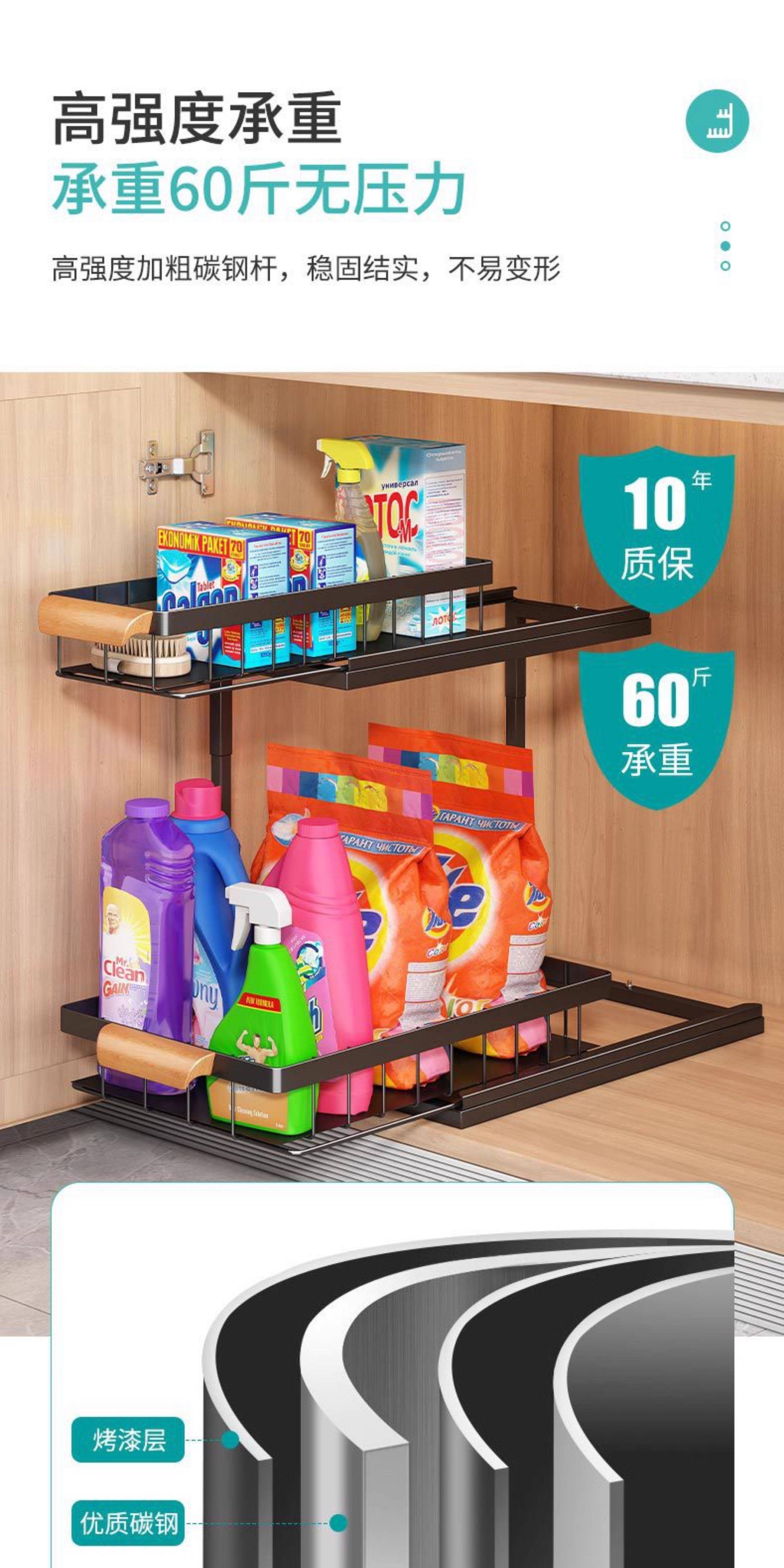 Küchenbedarf unter der Spüle, Aufbewahrungsregal, multifunktionaler Gewürz-Aufbewahrungskorb, ausziehbares Regal, zweischichtige Organisationsschublade aus Metall