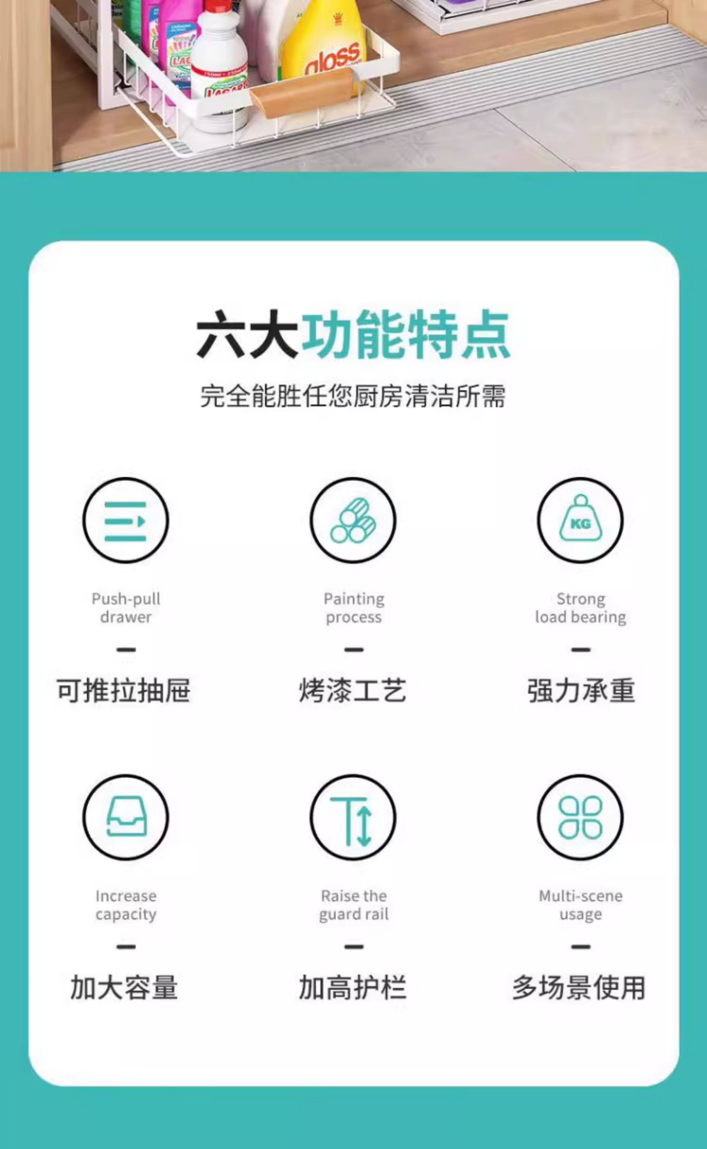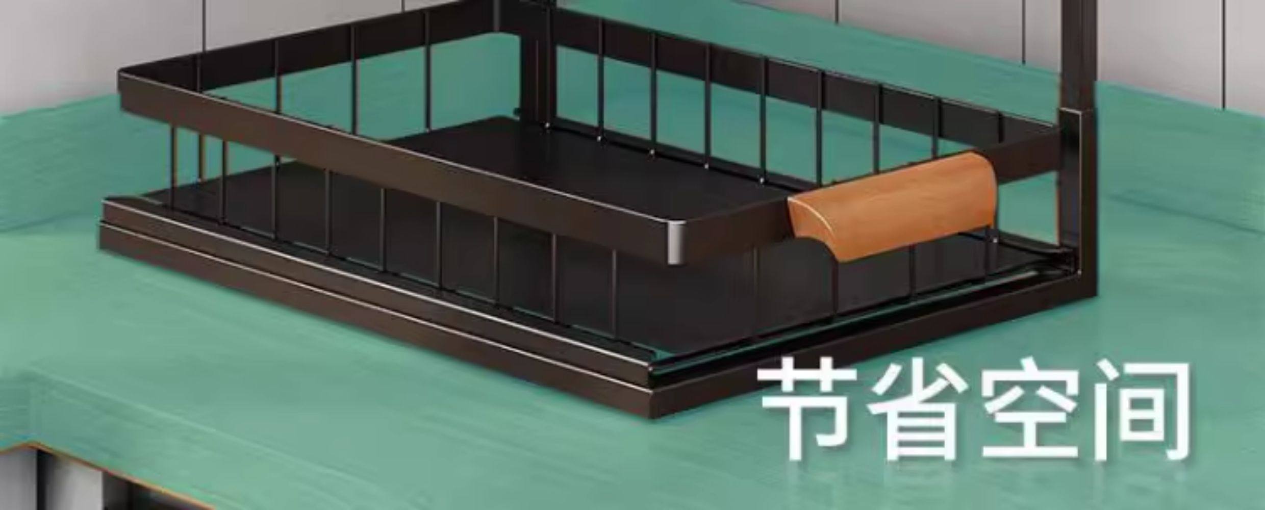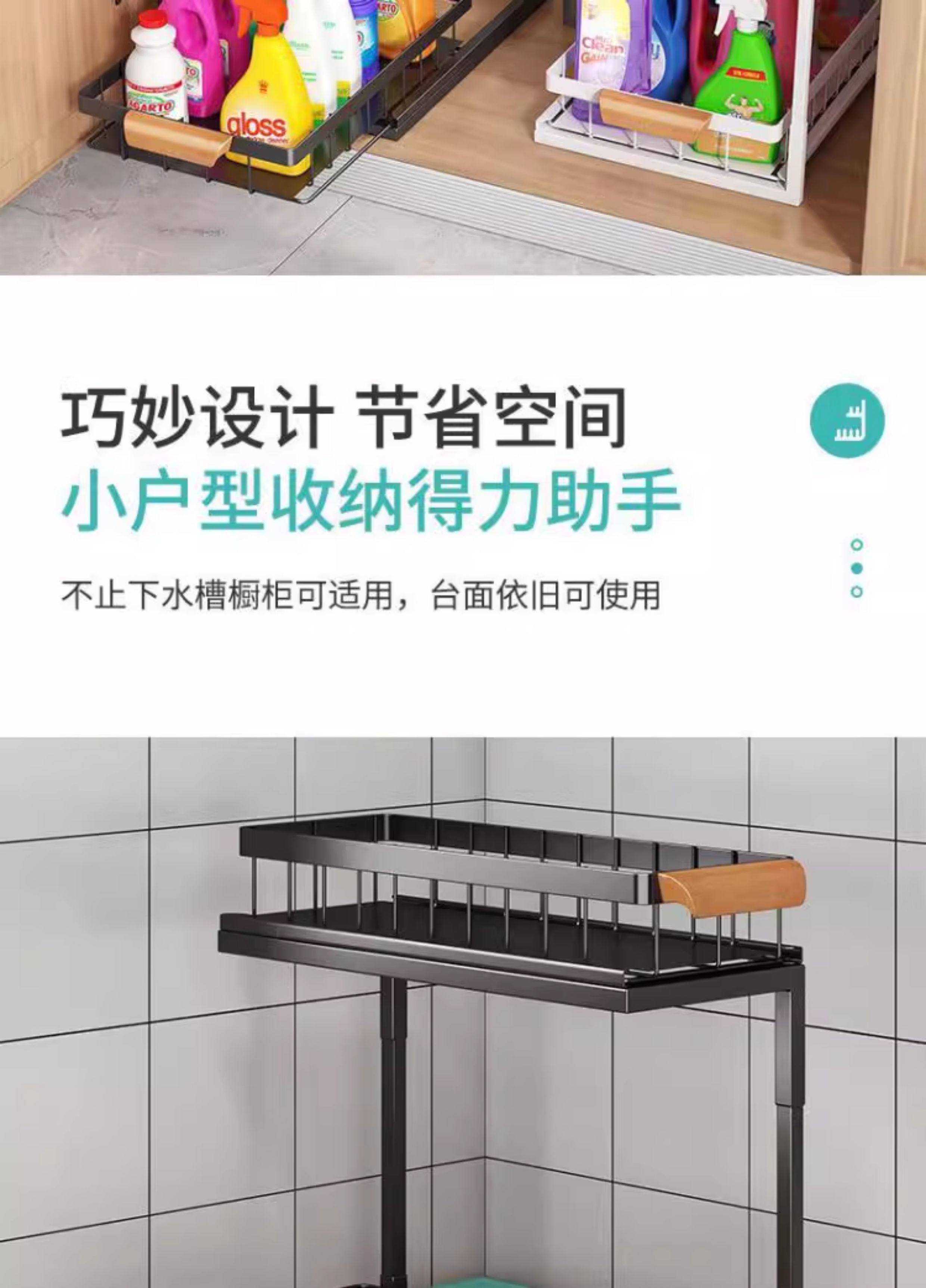 Küchenbedarf unter der Spüle, Aufbewahrungsregal, multifunktionaler Gewürz-Aufbewahrungskorb, ausziehbares Regal, zweischichtige Organisationsschublade aus Metall