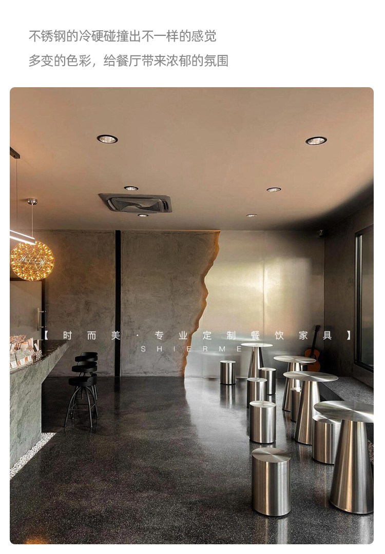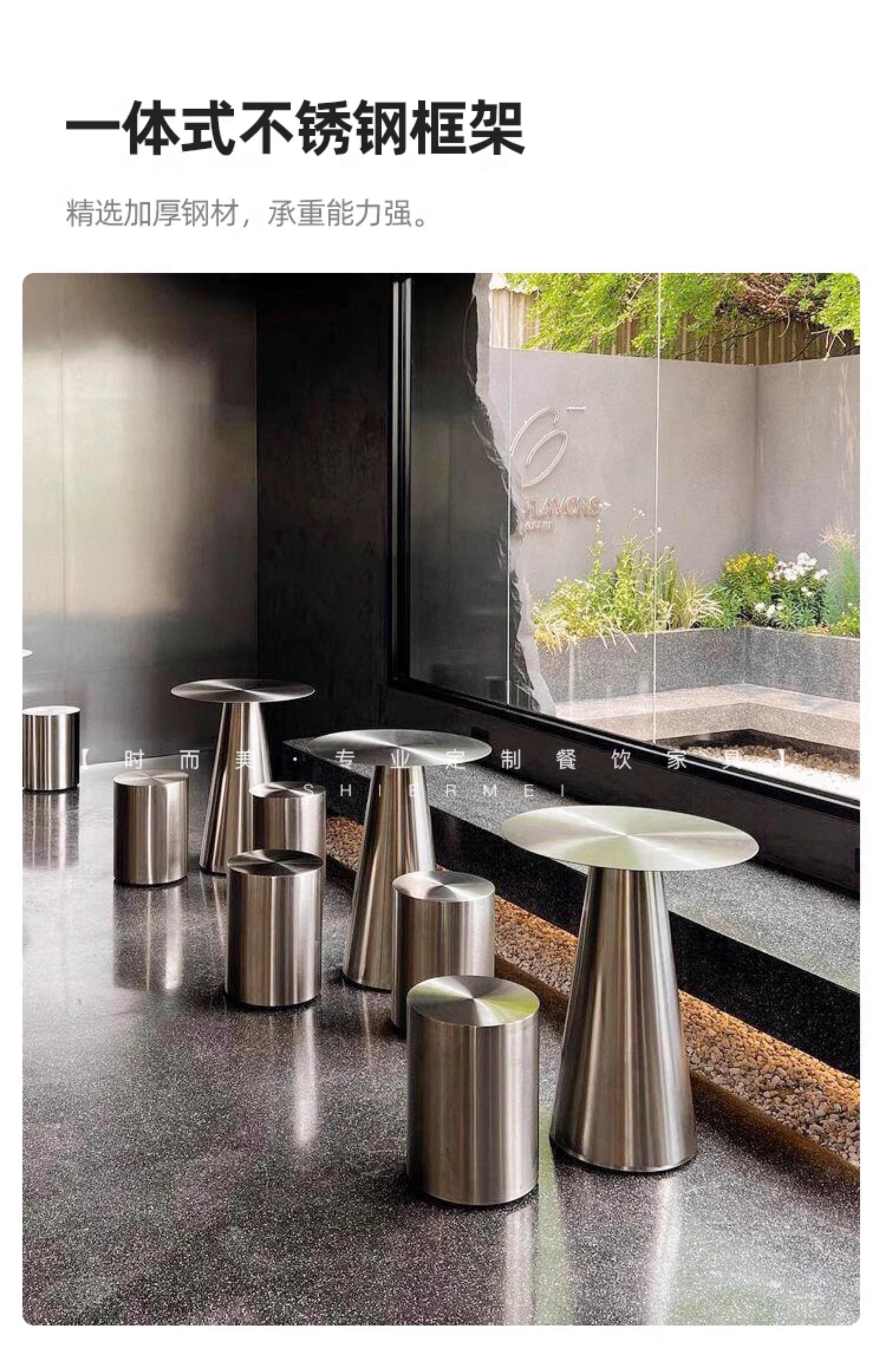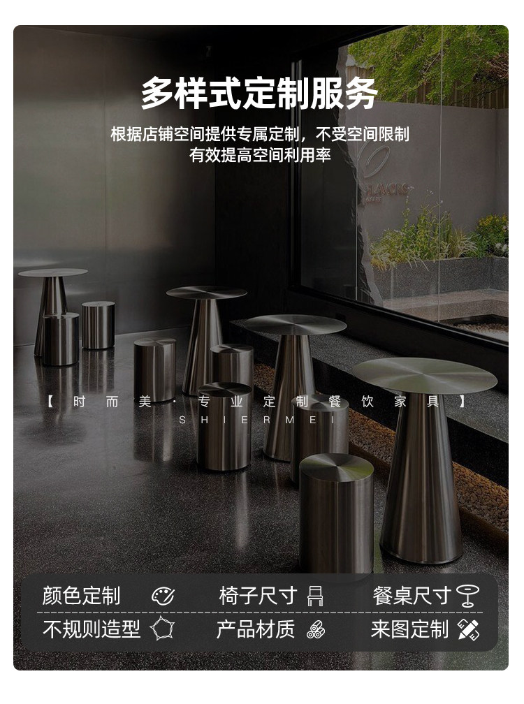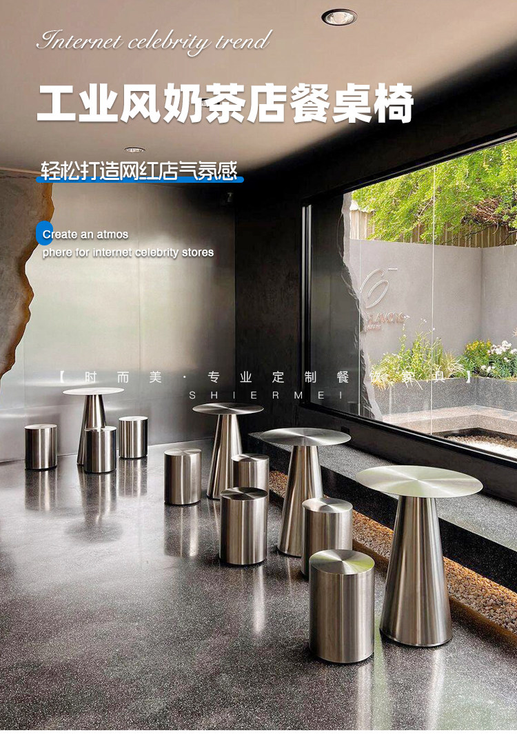 Известный в интернете комплект столов и стульев для кафе с молочными десертами, кафе в индустриальном стиле, водный бар, зона отдыха, креативные круглые табуреты из нержавеющей стали.