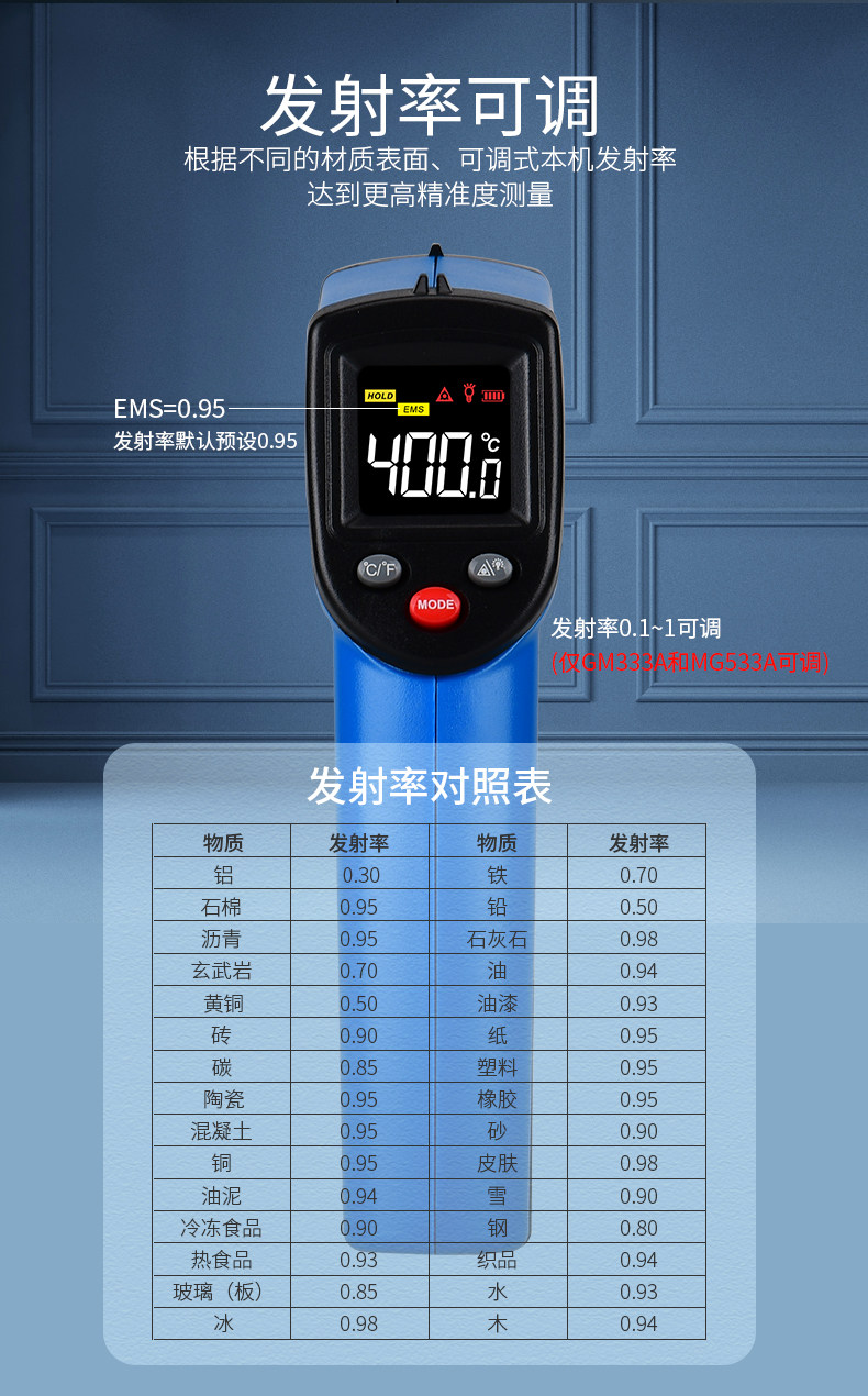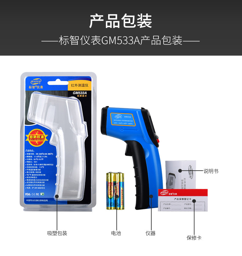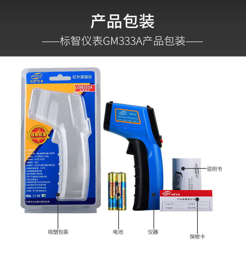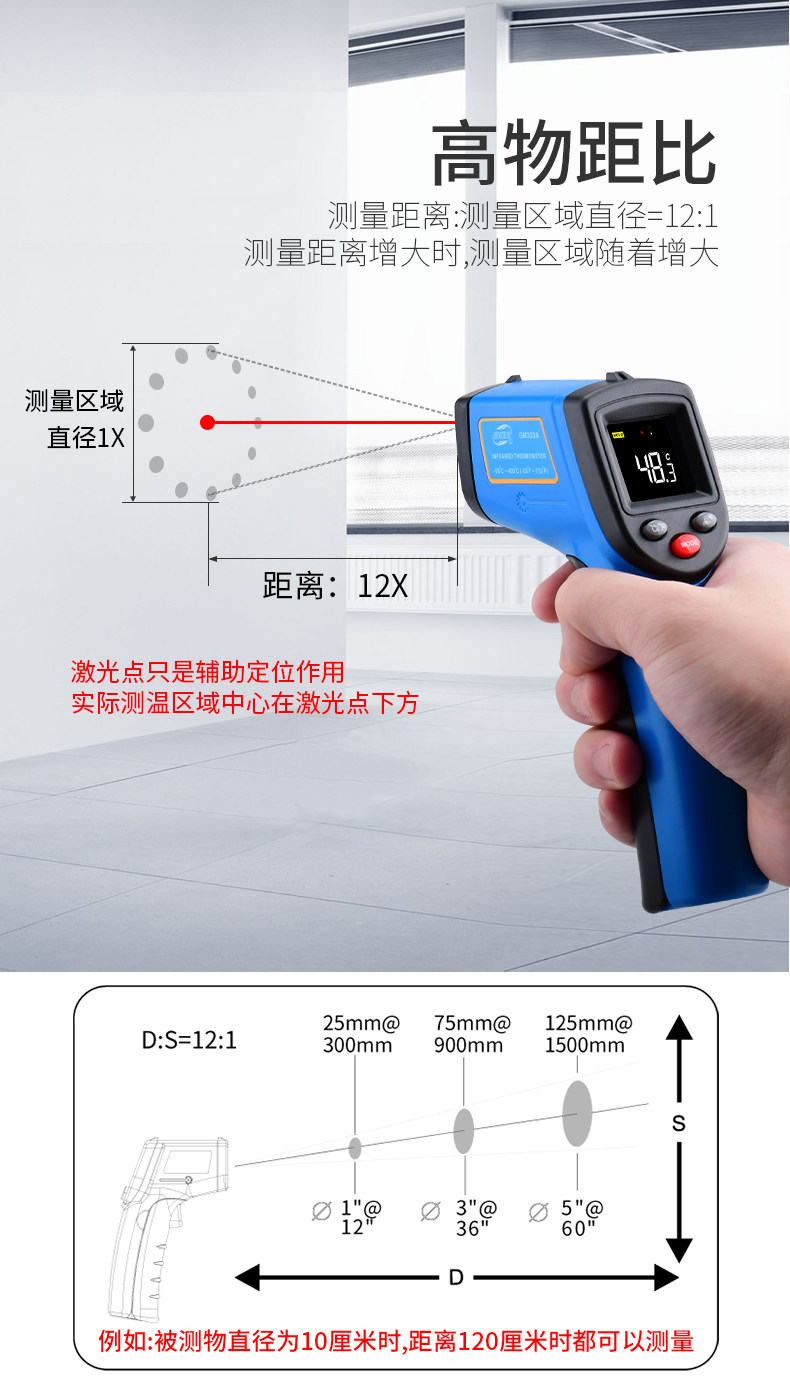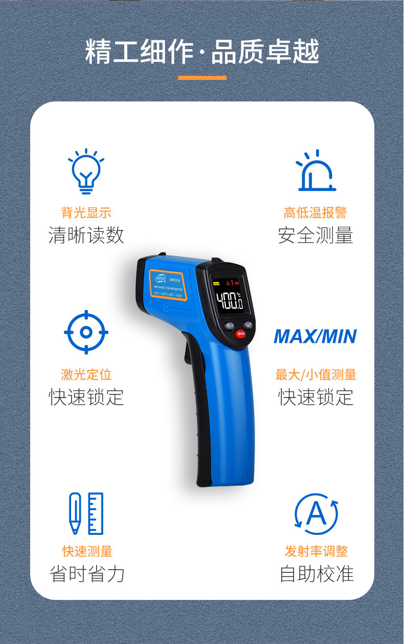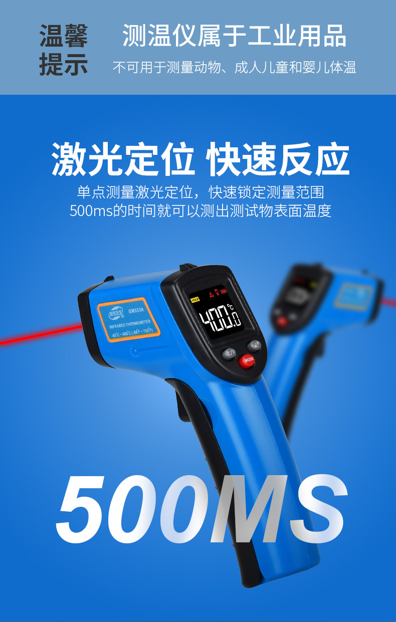 Biaozhi Gm333A Infrared Thermometer Water Temperature Oil Temperature Laser Thermometer Digital Display Non-Contact Thermometer