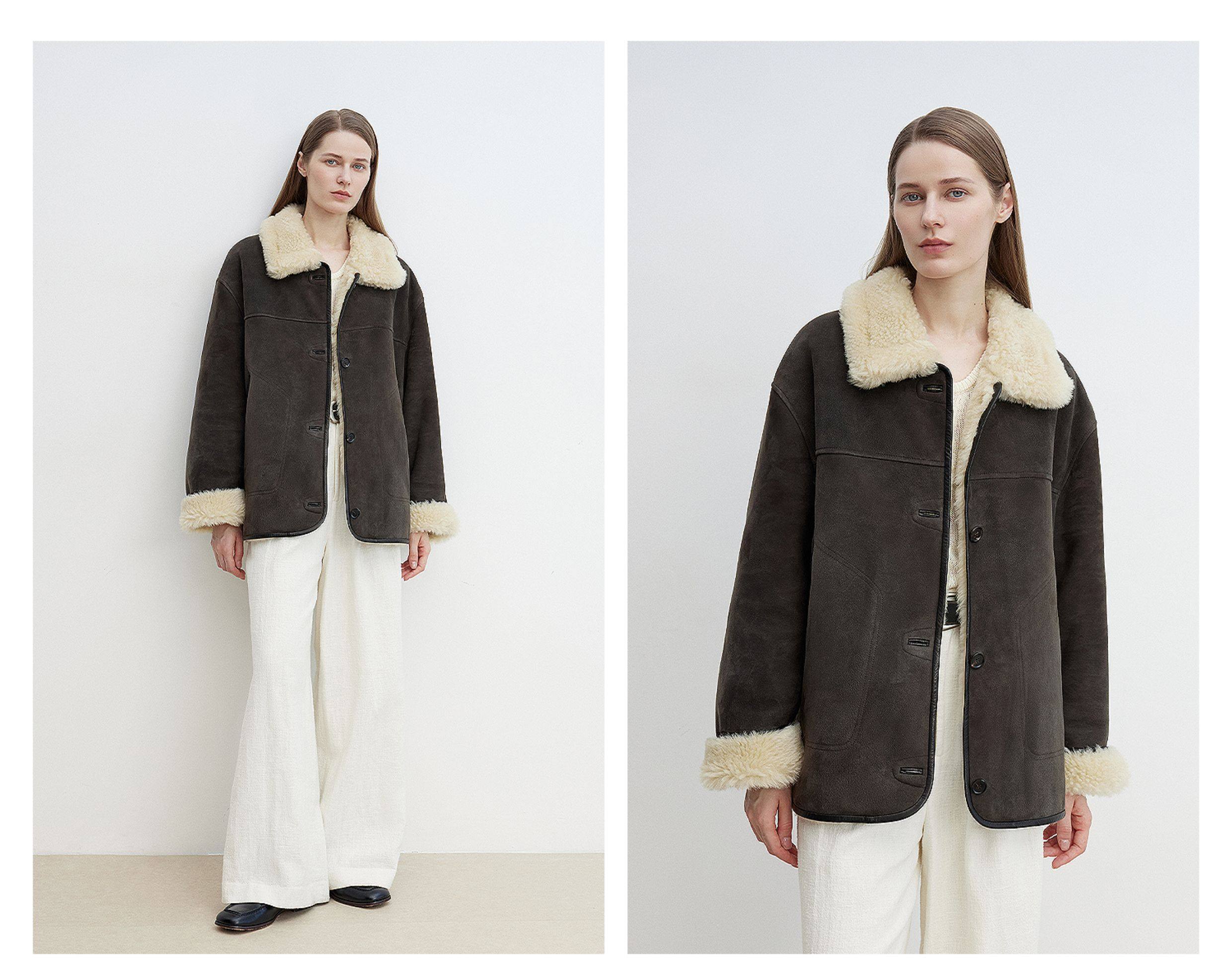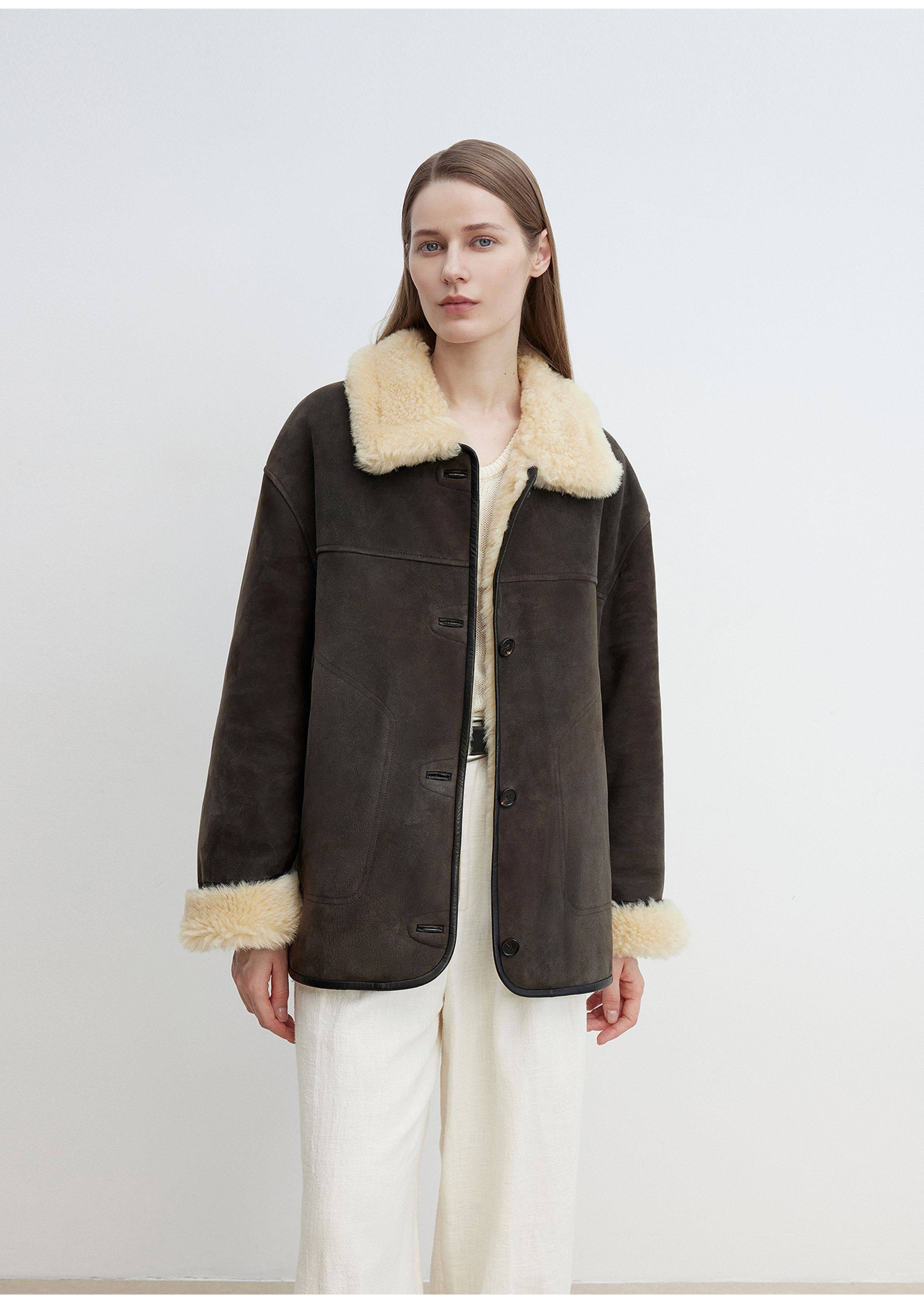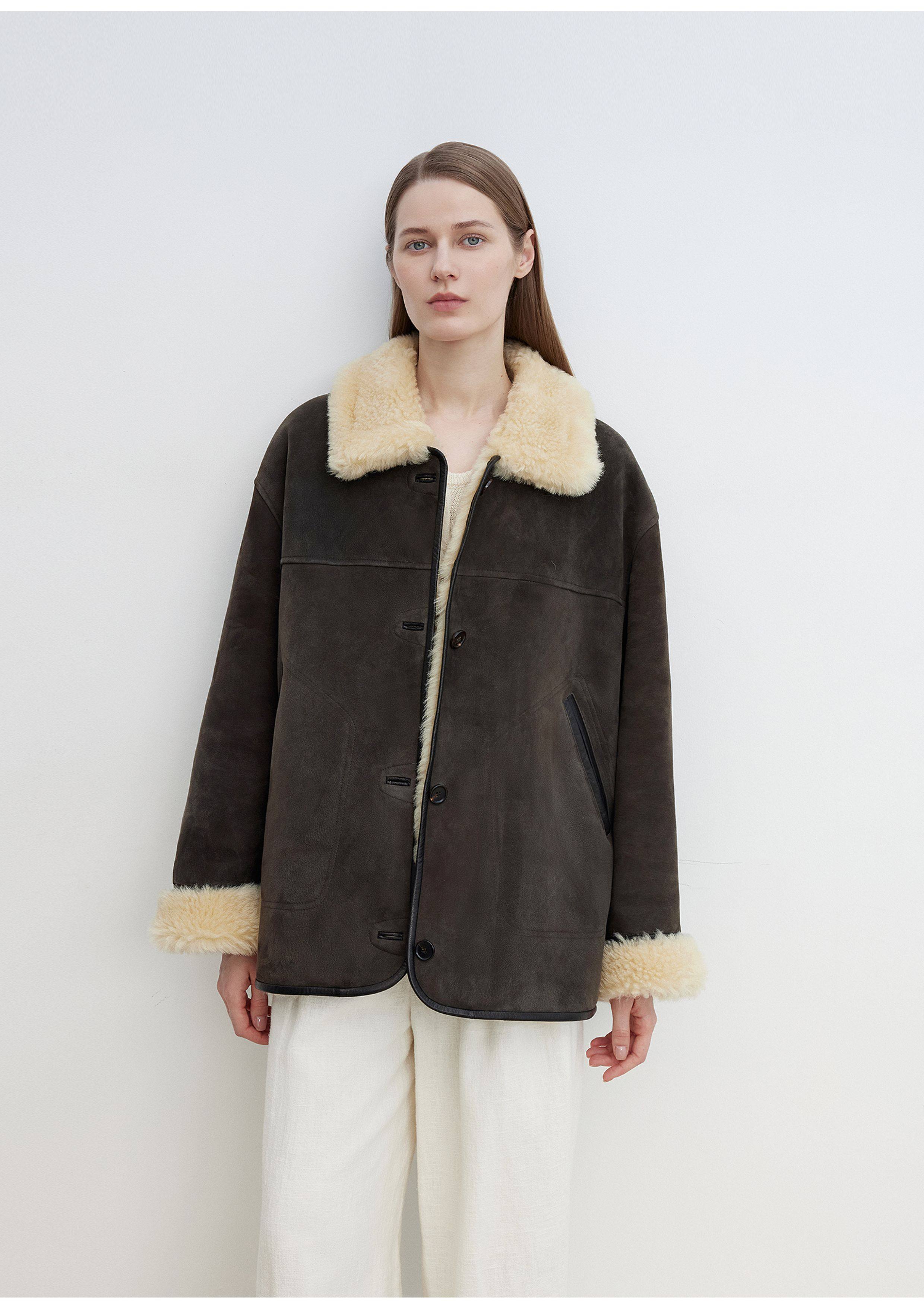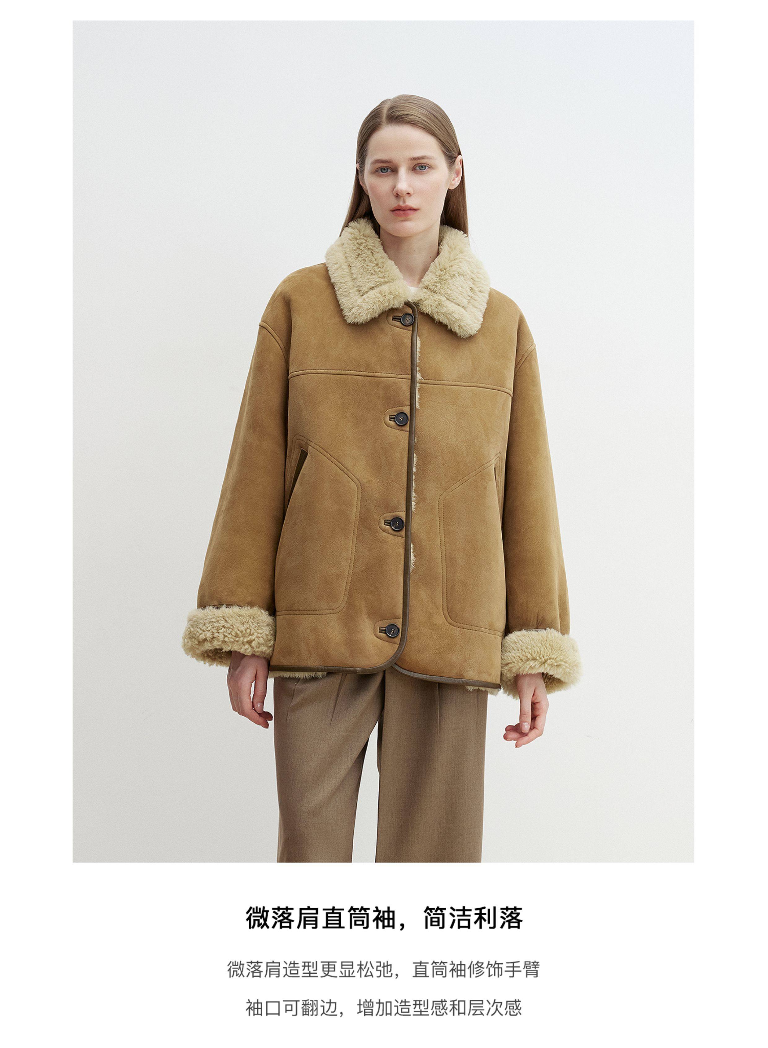 Yuanyi Letrans Winter Coco Merino fur de una sola pieza versión contrastante chaqueta de piel de gamuza mirando hacia afuera