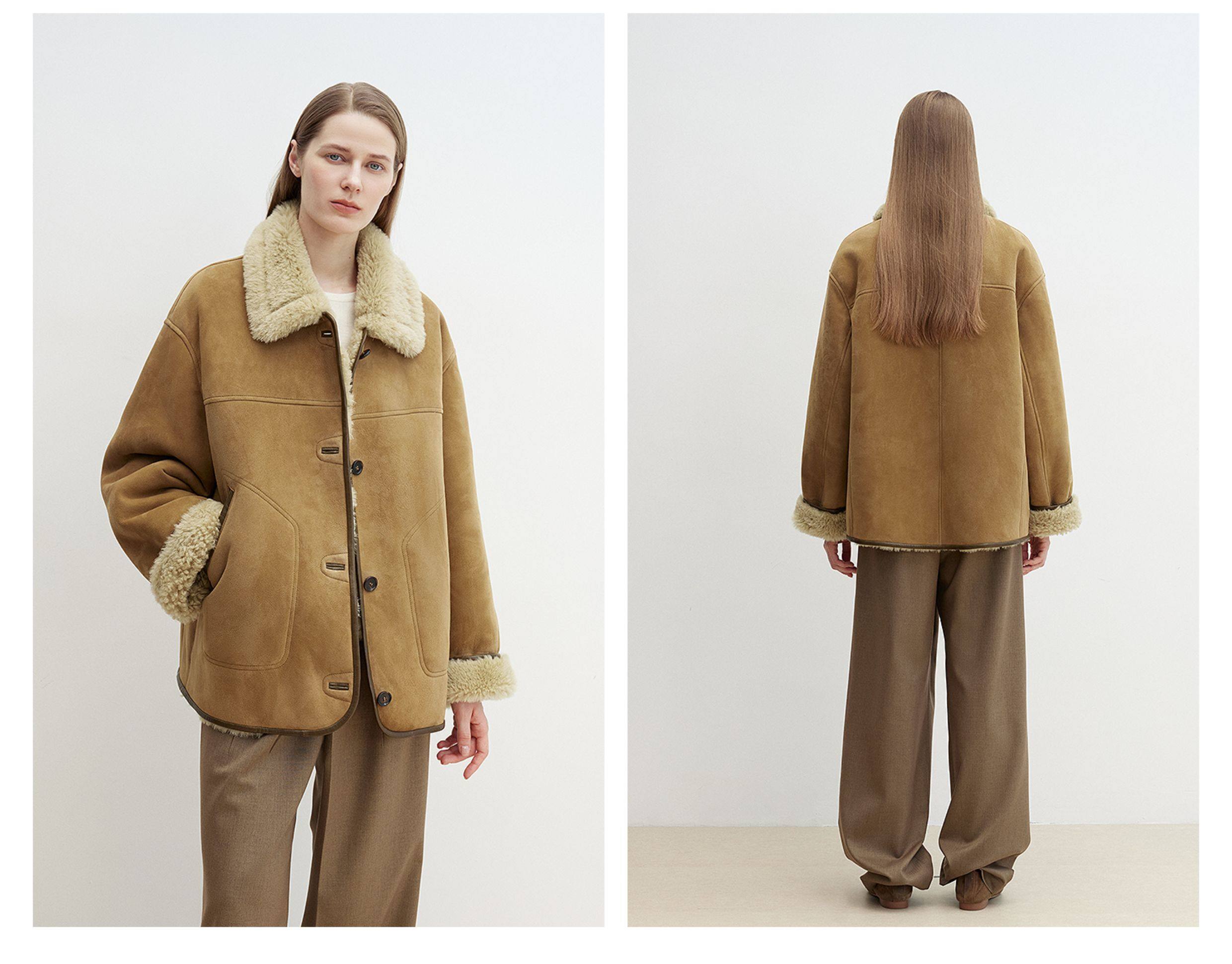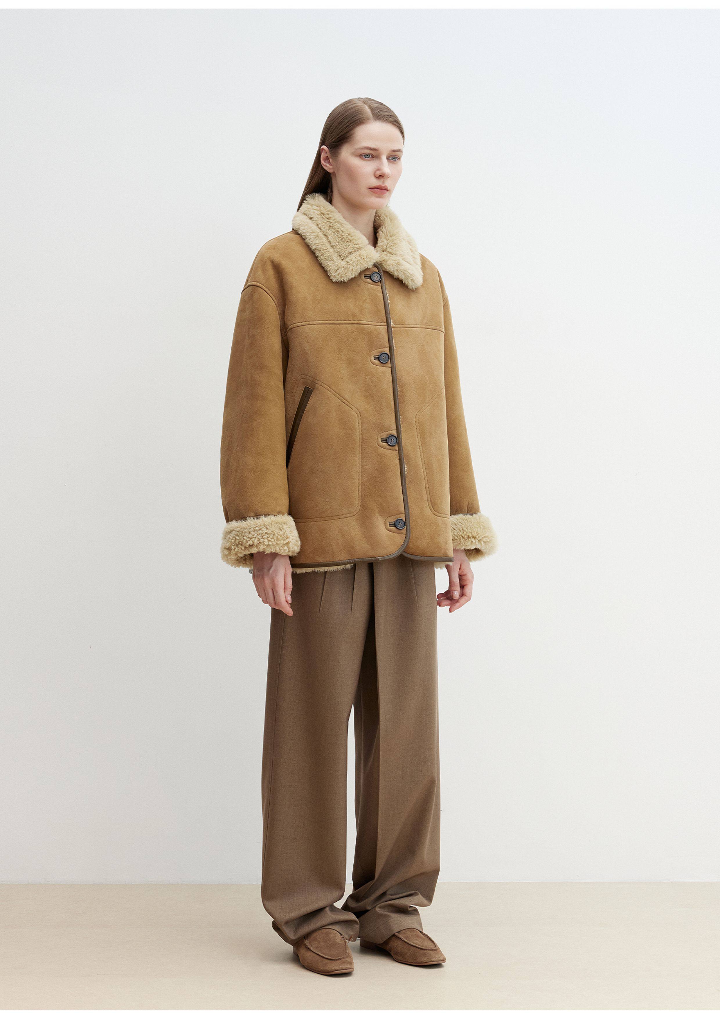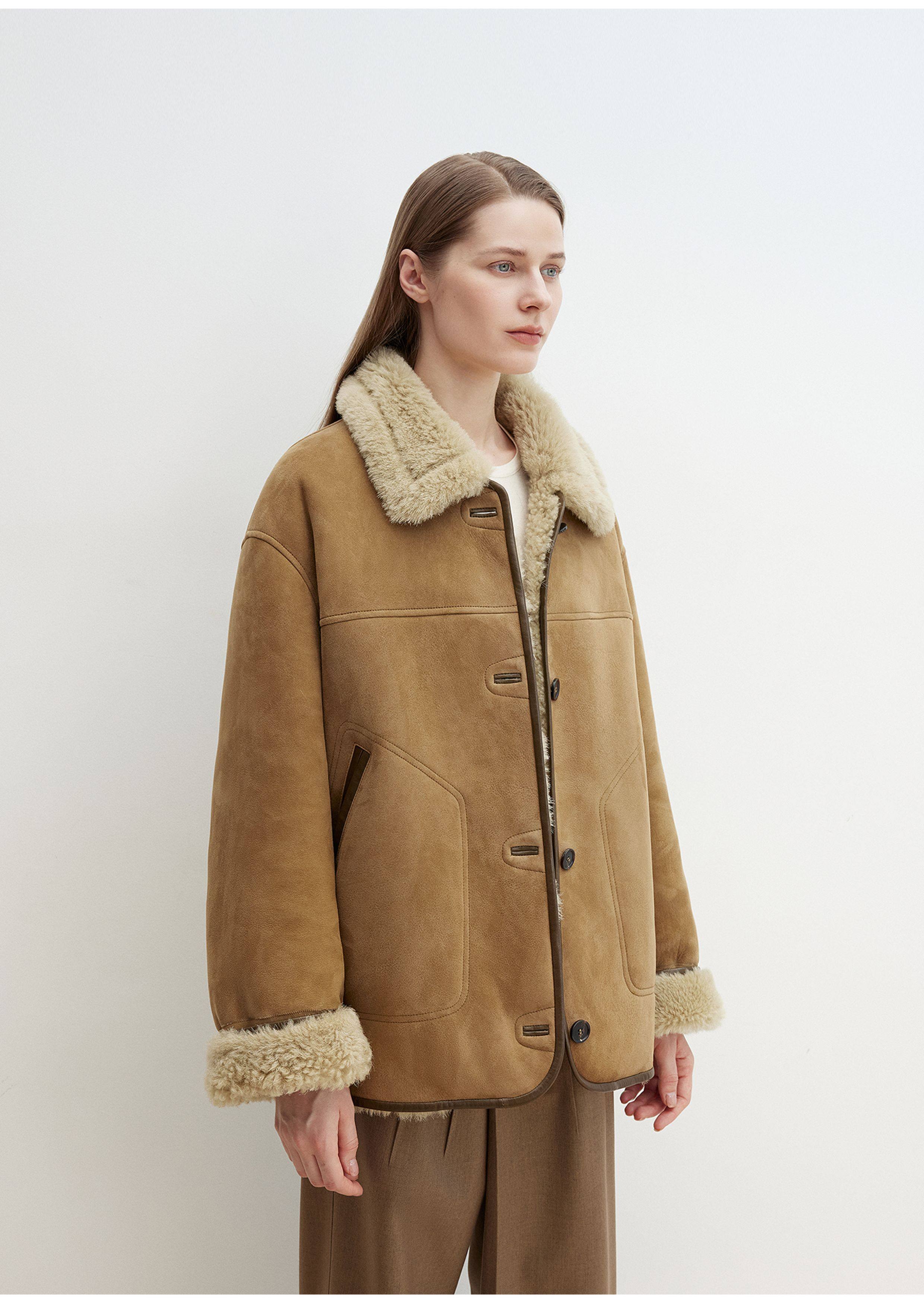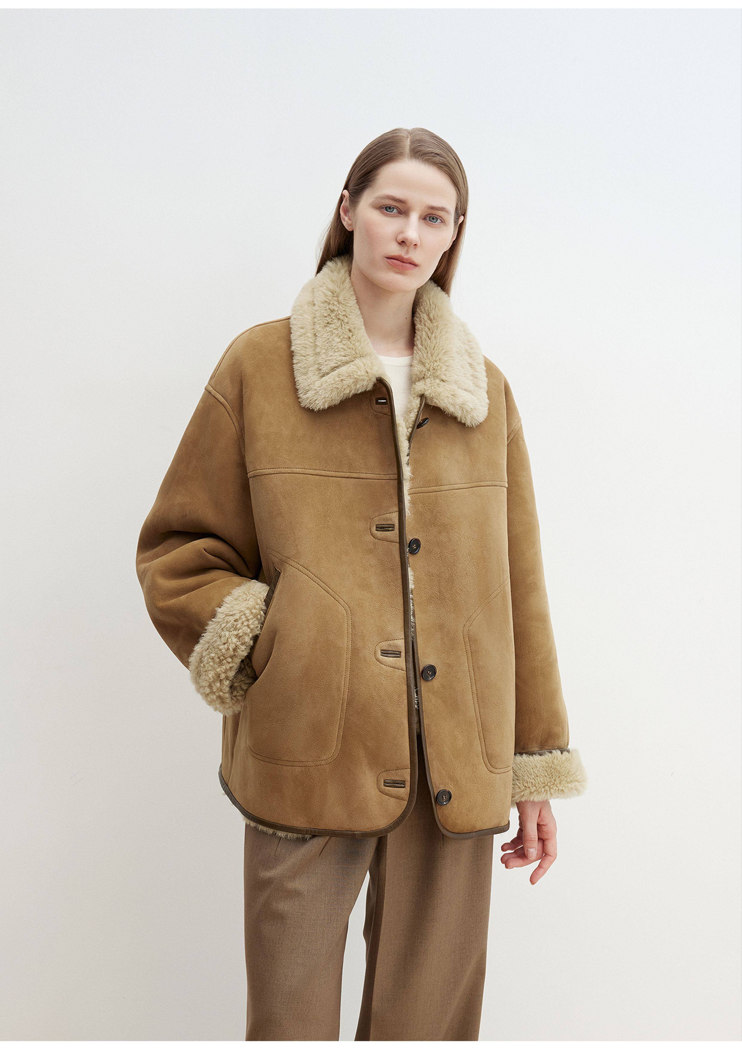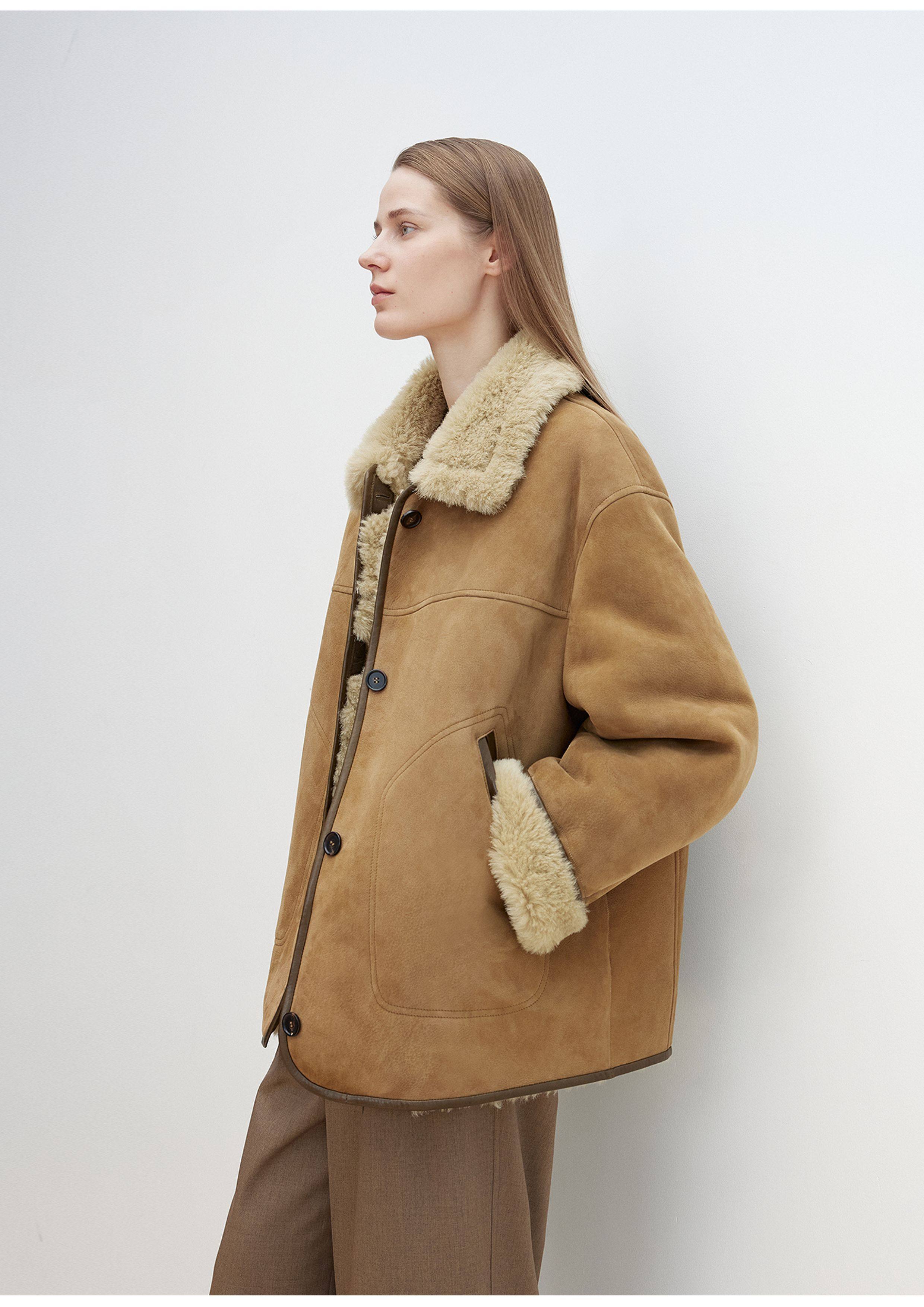 Yuanyi Letrans Winter Coco Merino fur de una sola pieza versión contrastante chaqueta de piel de gamuza mirando hacia afuera