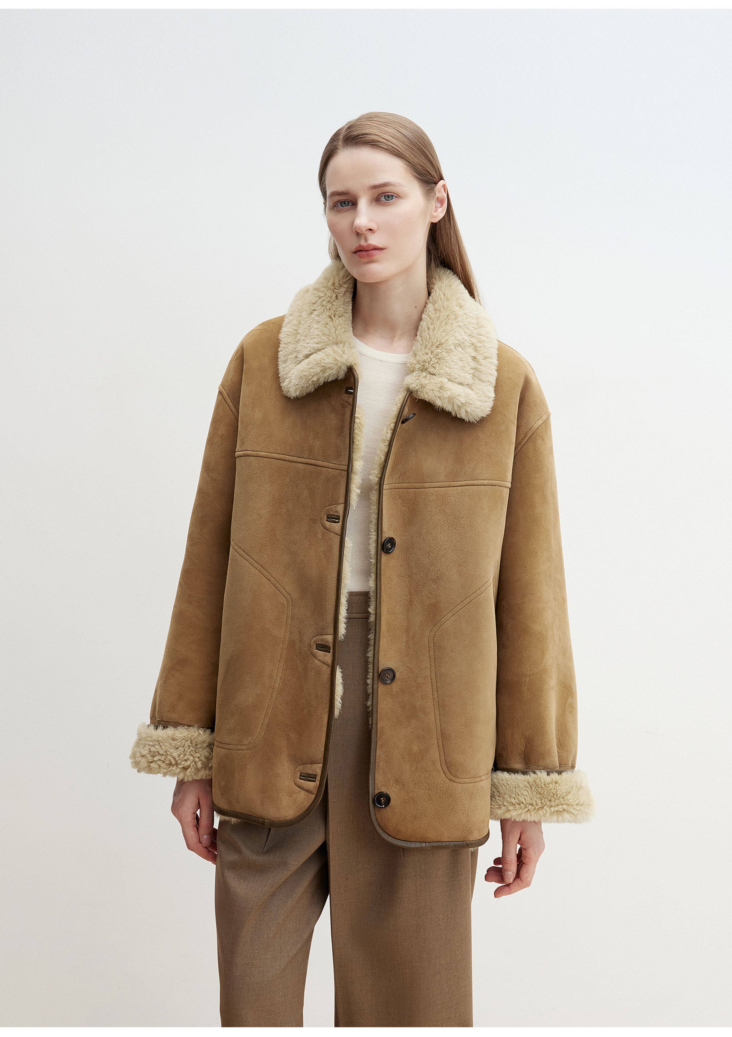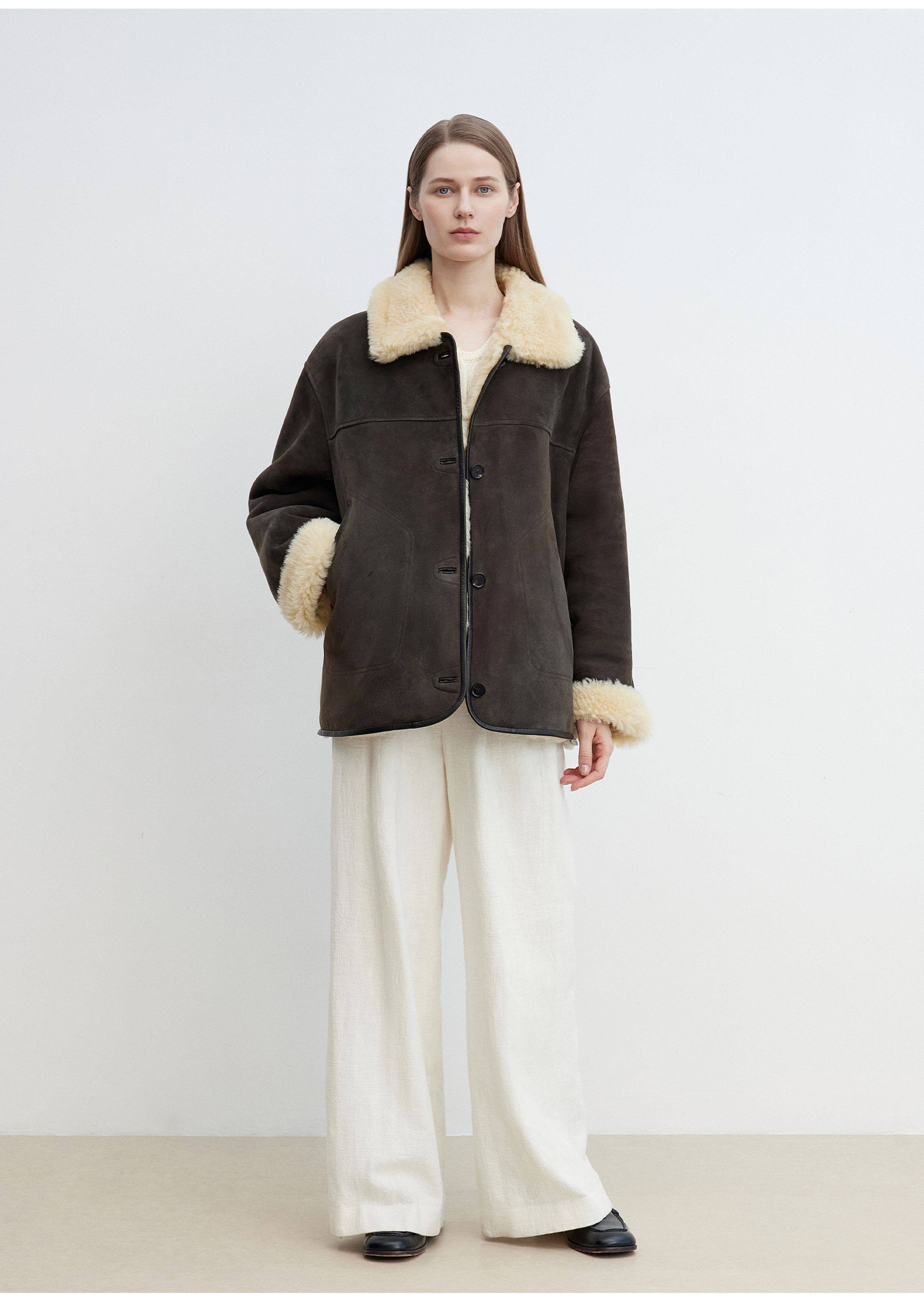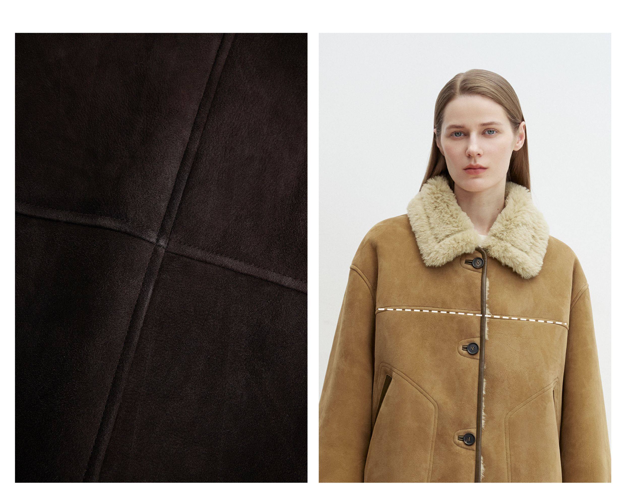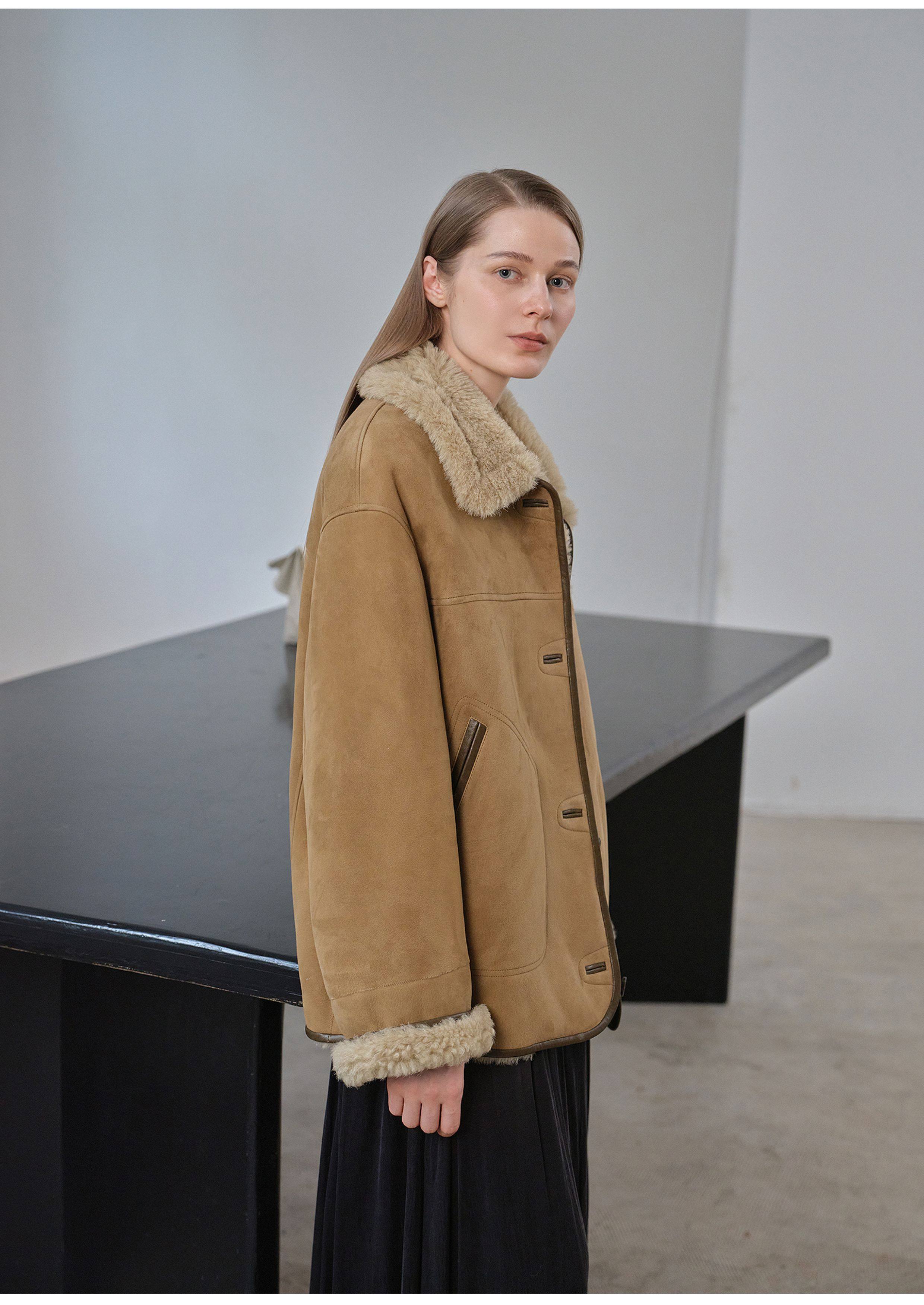 Yuanyi Letrans Winter Coco Merino fur de una sola pieza versión contrastante chaqueta de piel de gamuza mirando hacia afuera