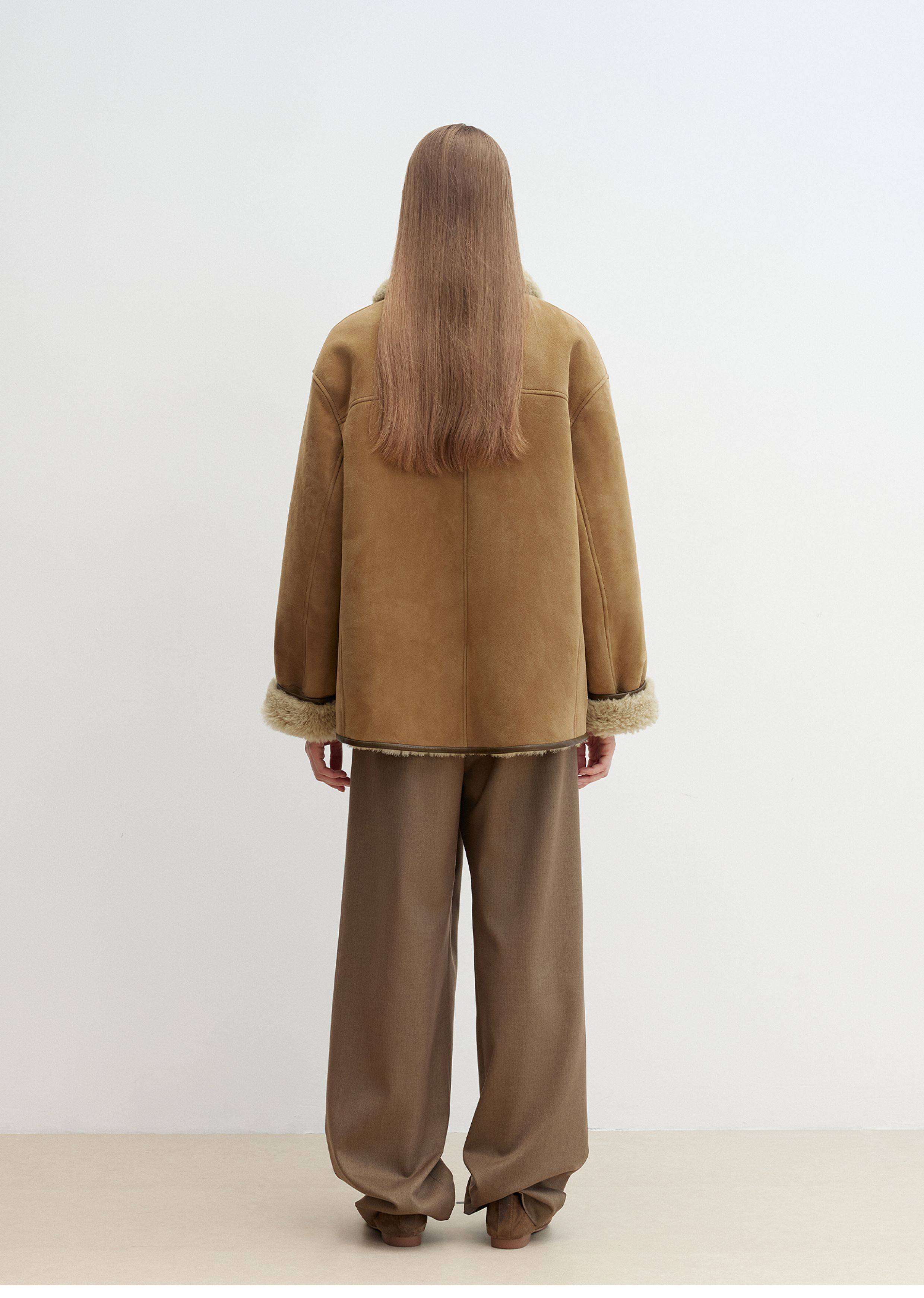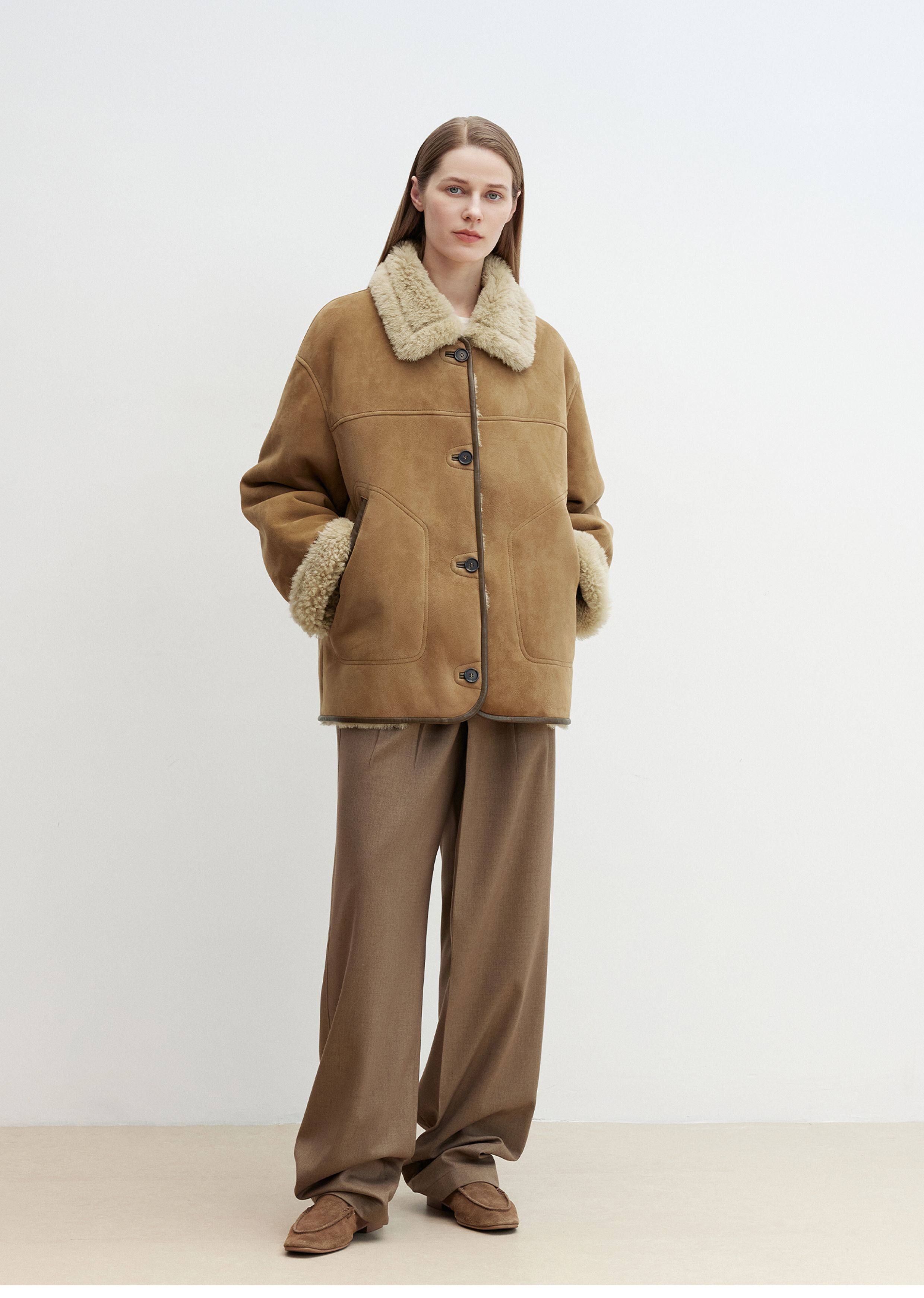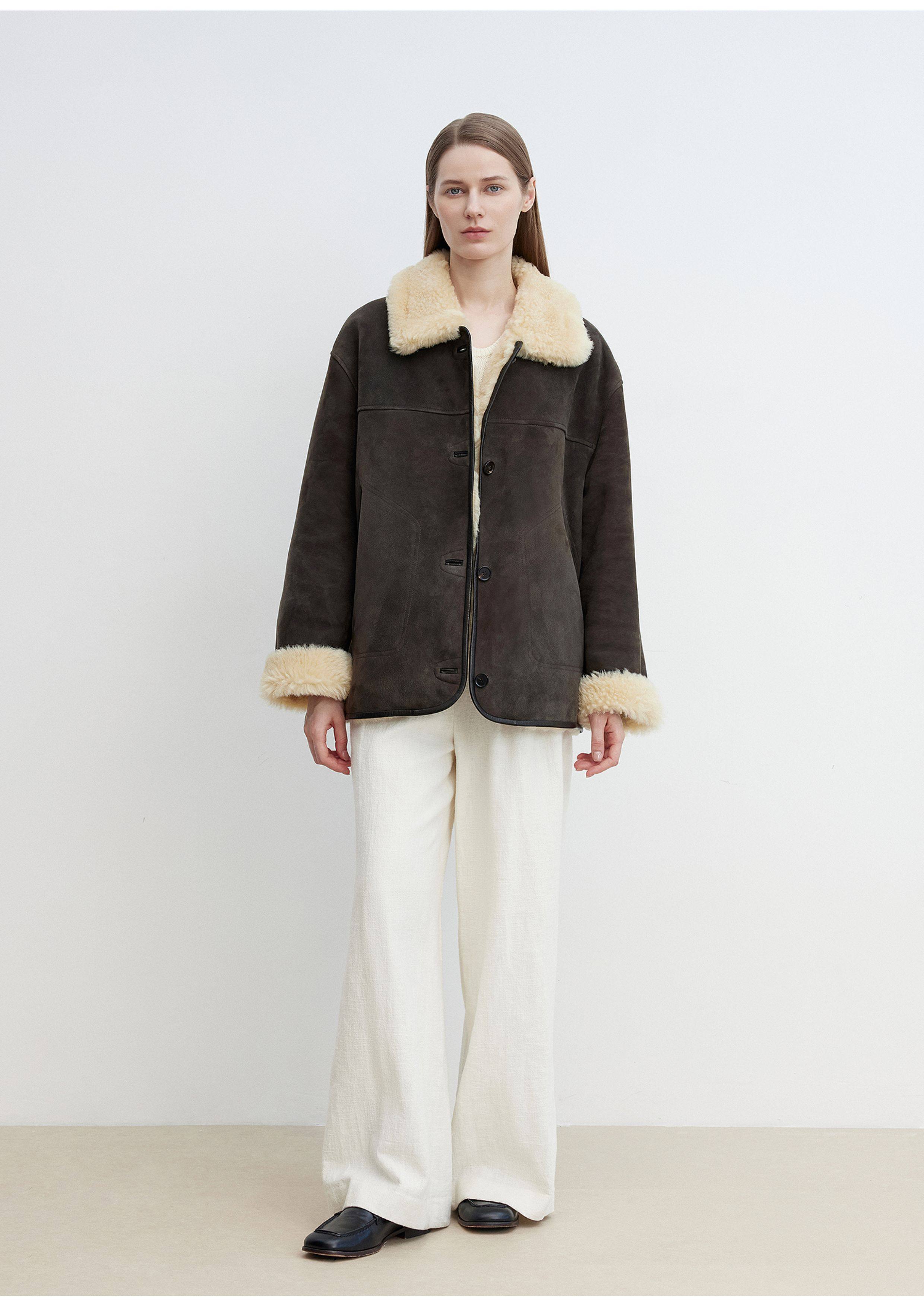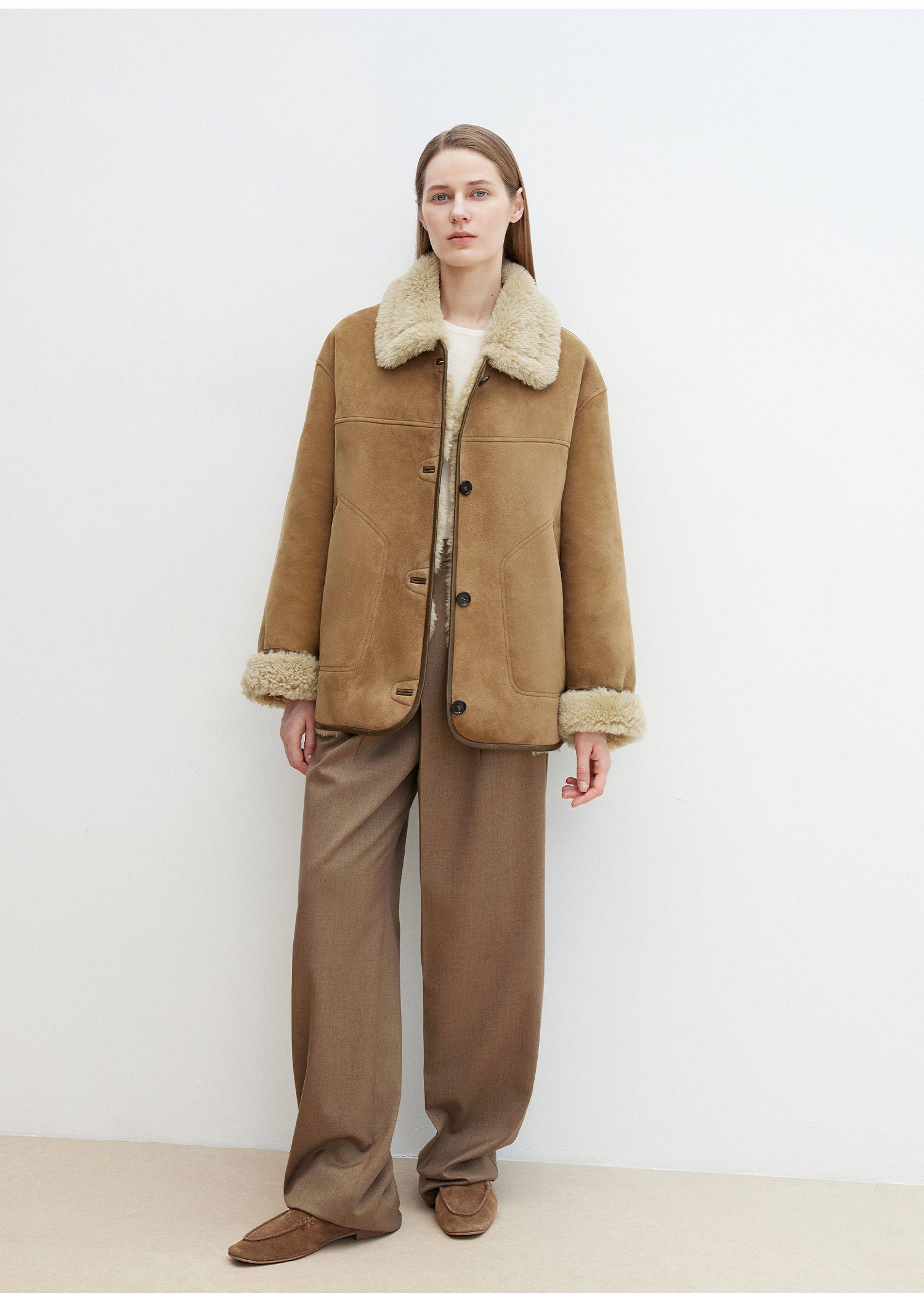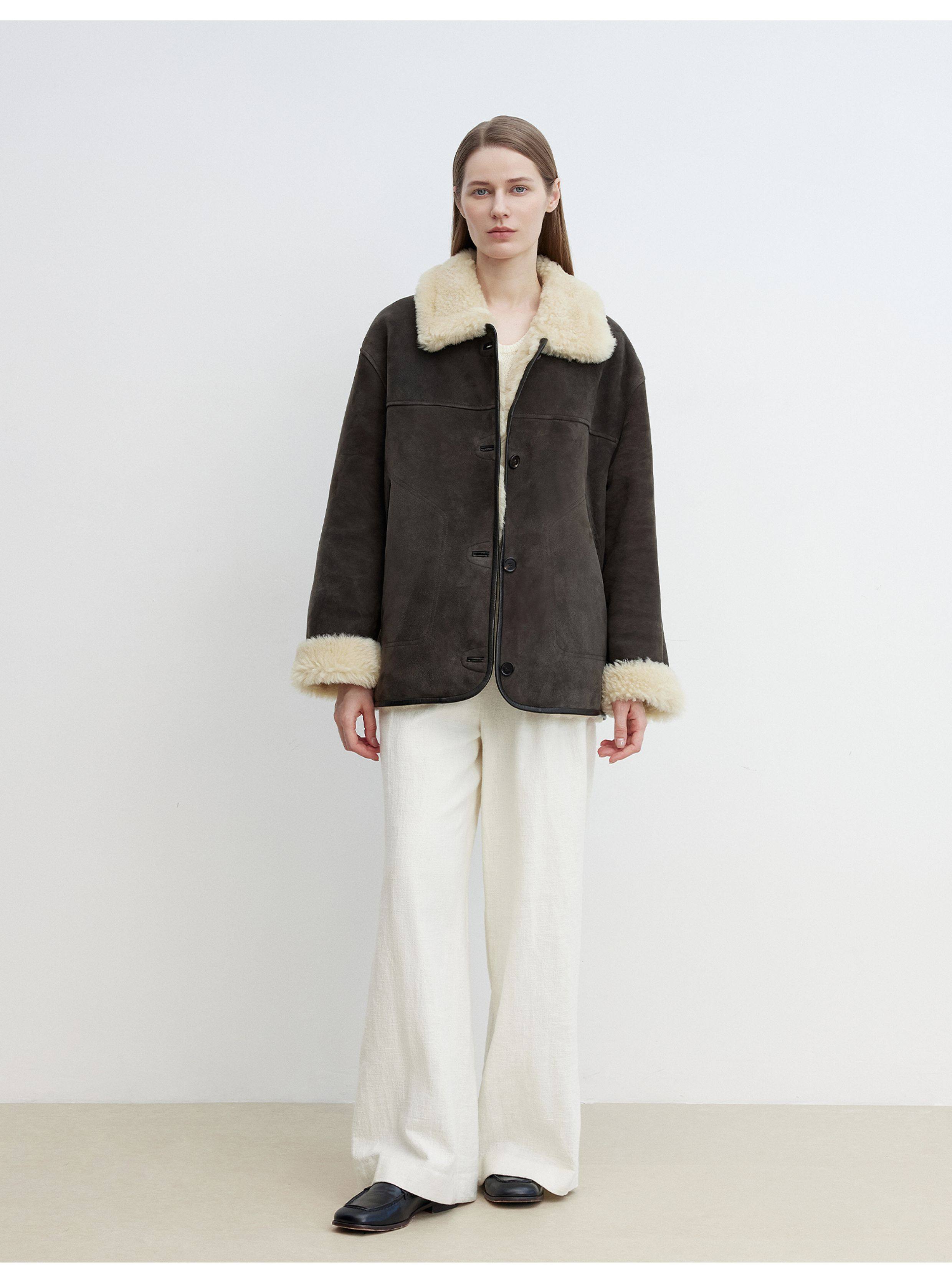 Yuanyi Letrans Winter Coco Merino fur de una sola pieza versión contrastante chaqueta de piel de gamuza mirando hacia afuera