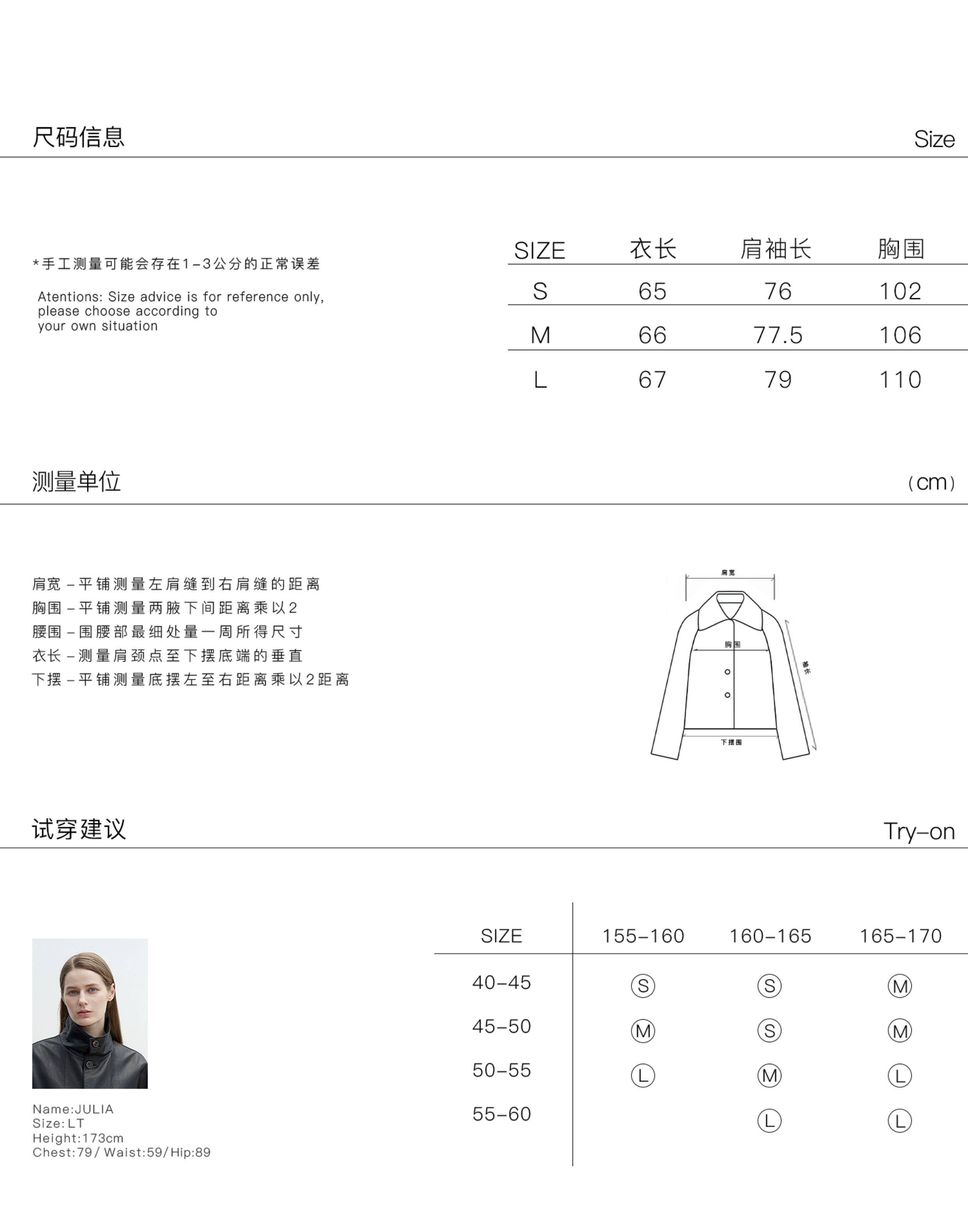 China (cm) 160-165/84-86 165-170 / 88-90 167-172 / 92-96 168-173 / 98-102 170-176 / 106-110