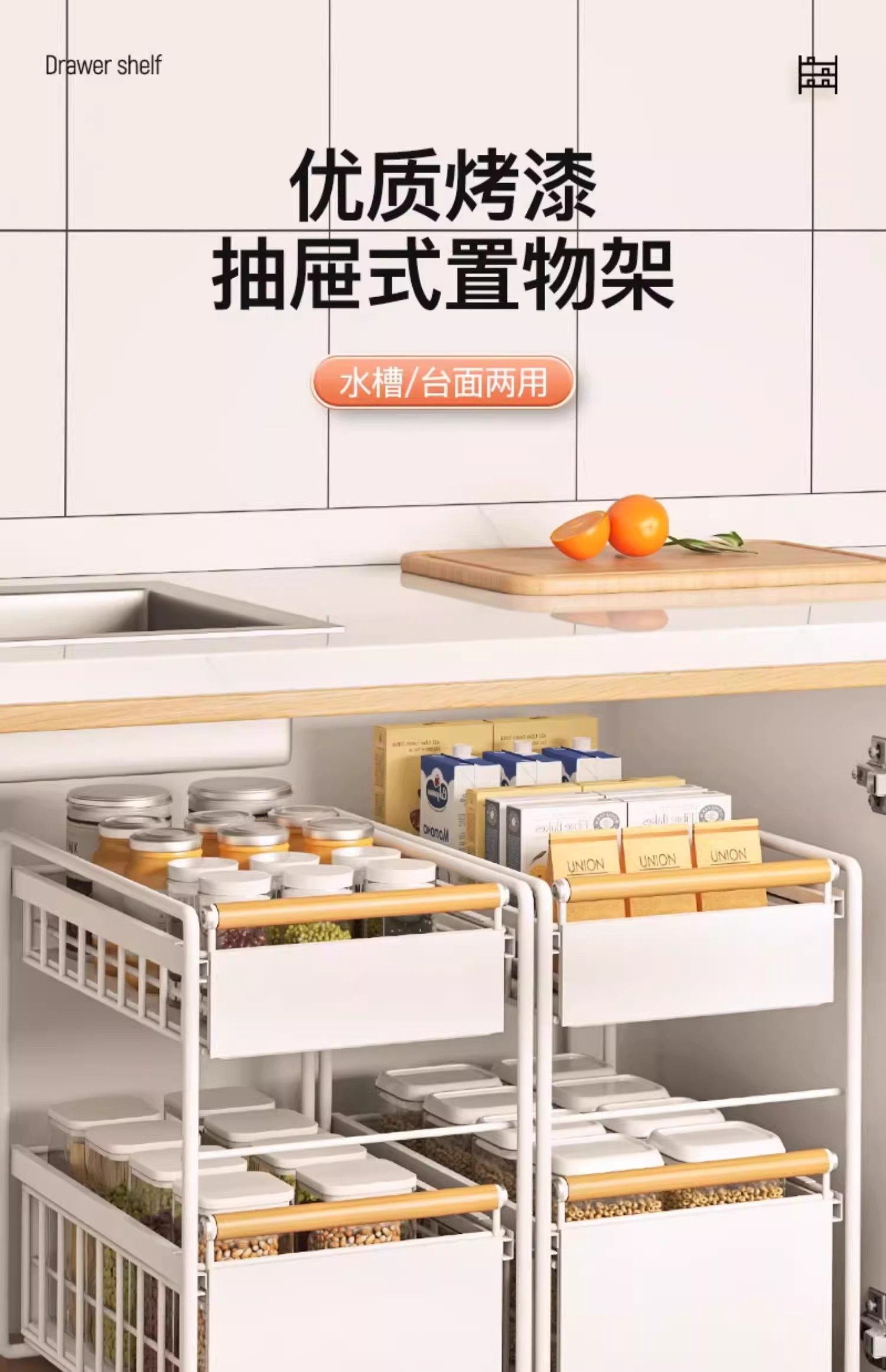 Küchenschrank-Zugkorb unter der Spüle, Aufbewahrungsregal, multifunktionales Haushaltsgeschirr, geschichtetes Regal, Küchenhelfer-Set
