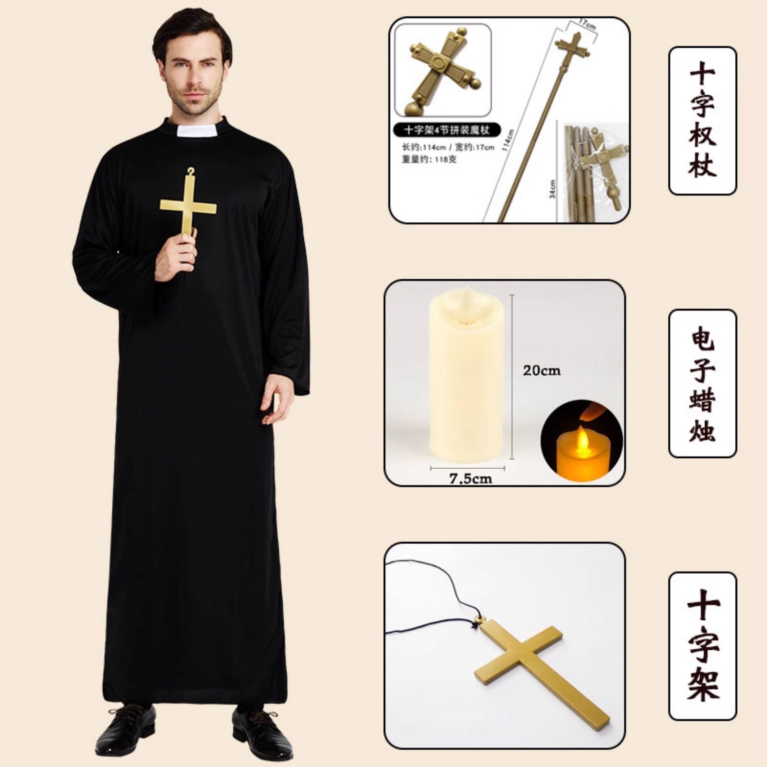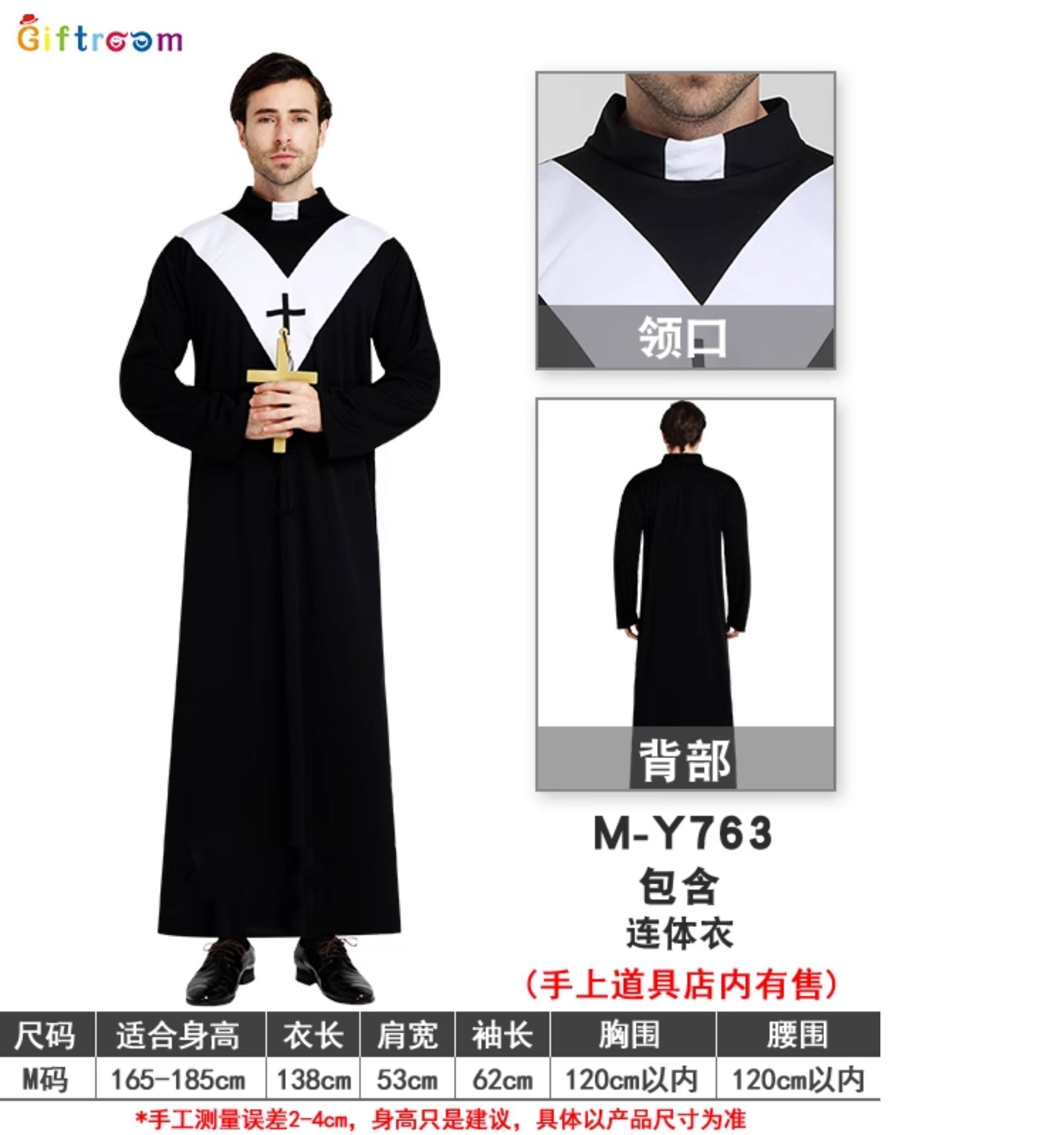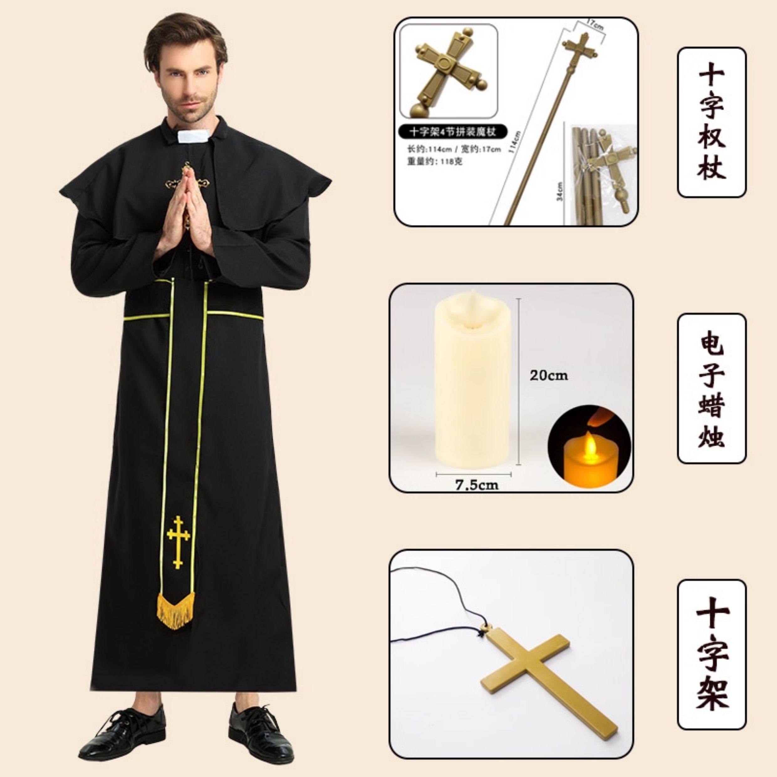 ¡Sacerdote y monja! Disfraz de Halloween disfraz de sacerdote túnica misionera hombre real actuación adulta sacerdocio en blanco y negro
