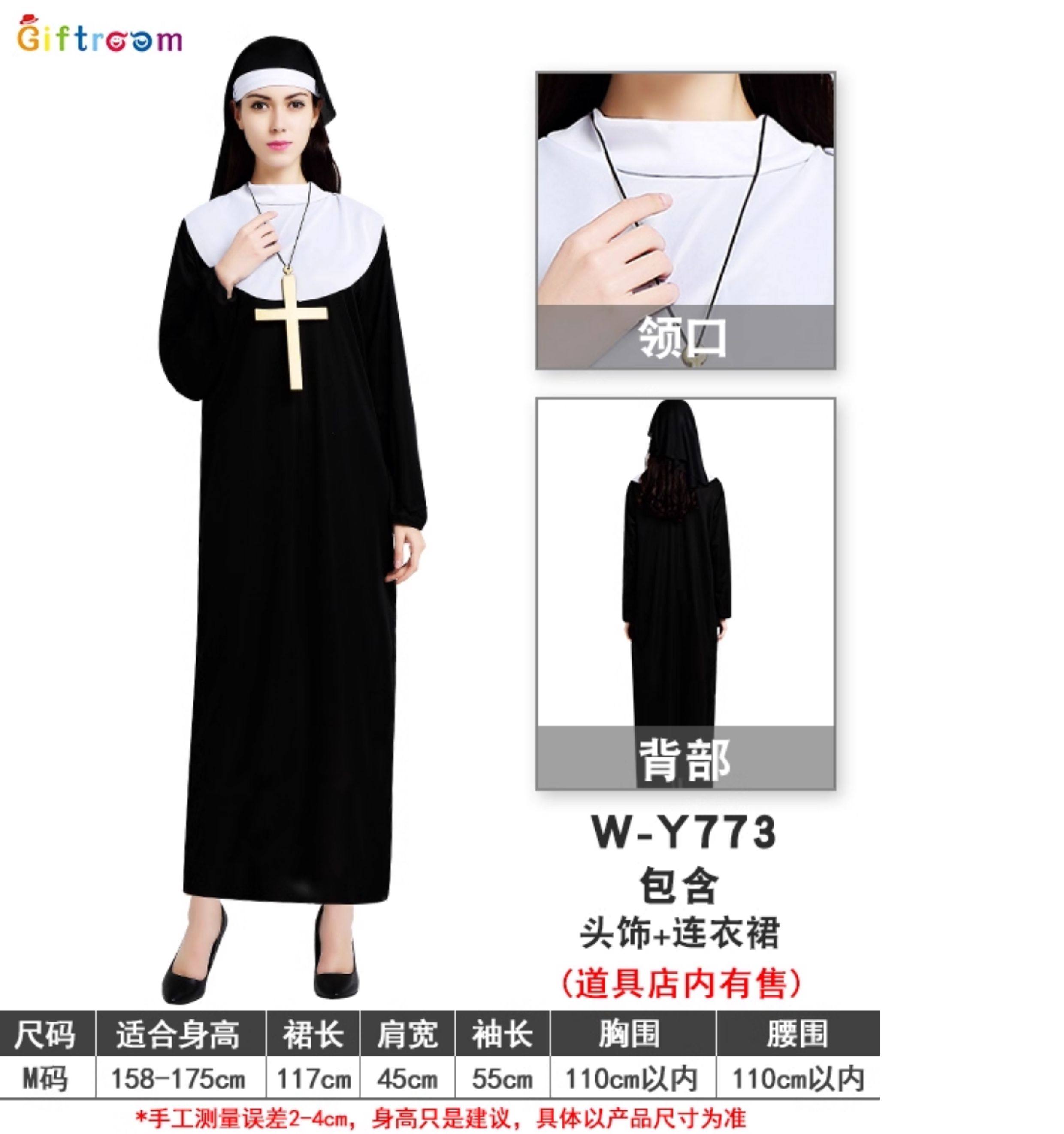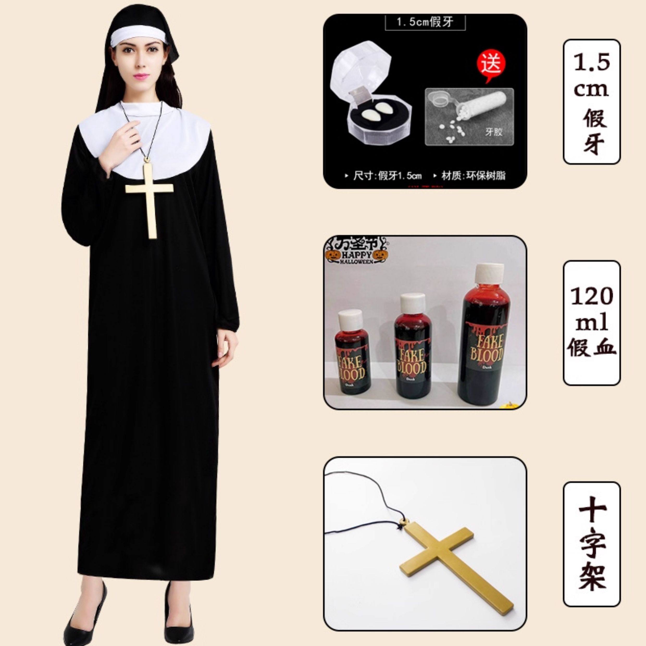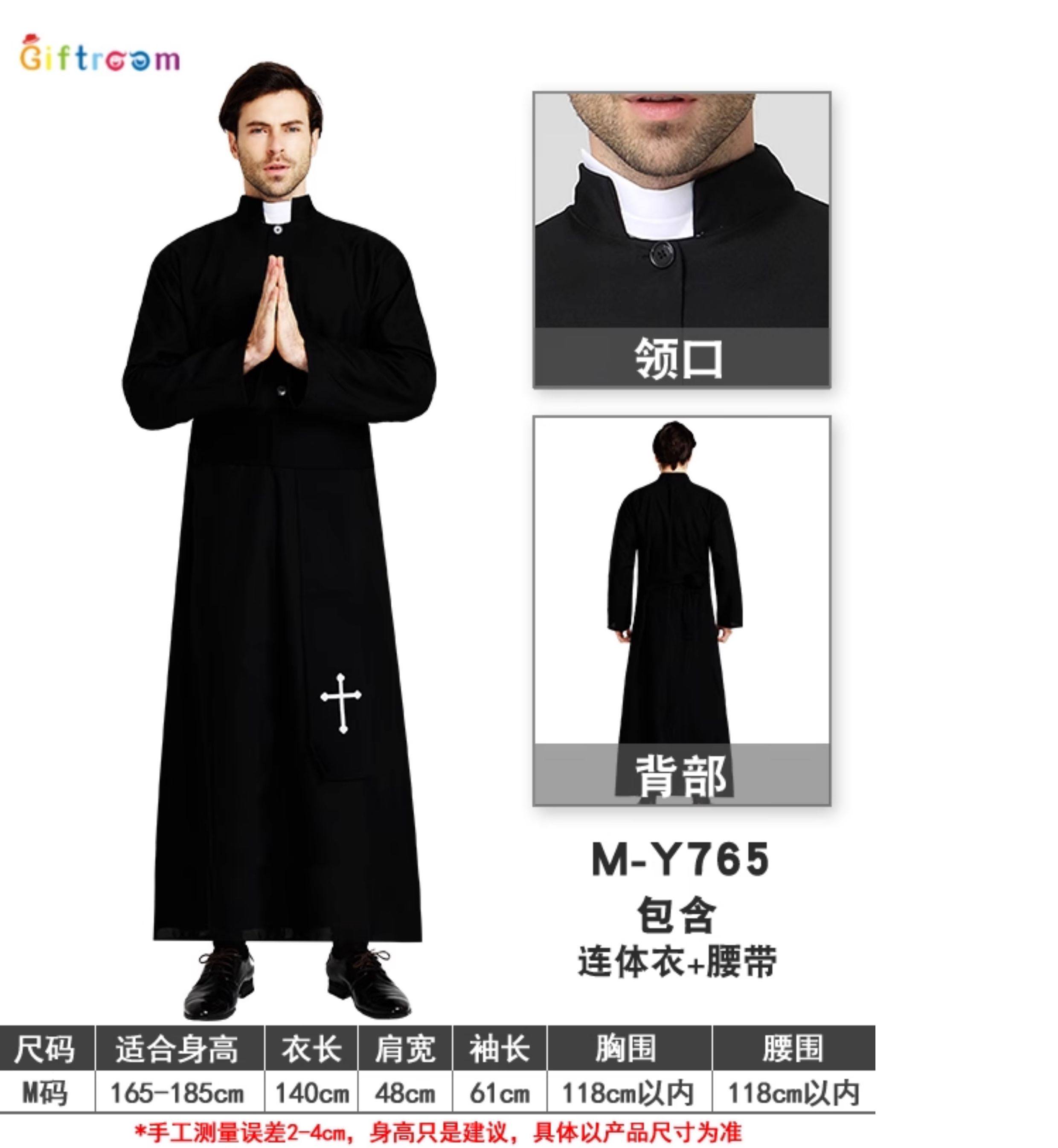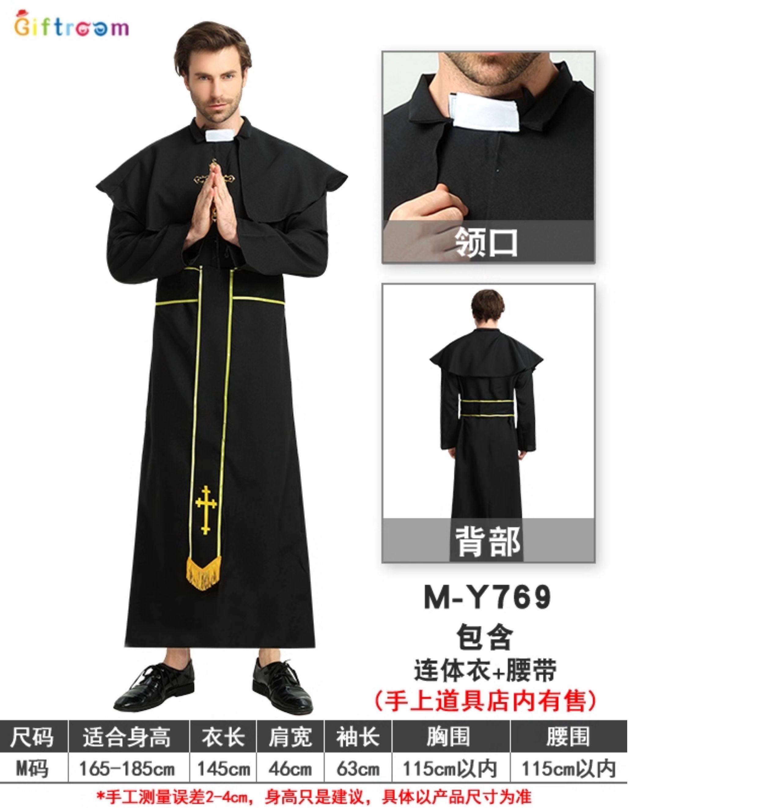 ¡Sacerdote y monja! Disfraz de Halloween disfraz de sacerdote túnica misionera hombre real actuación adulta sacerdocio en blanco y negro