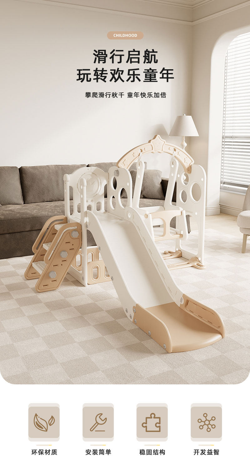 Children's Slide, Swing, and Three-In-One Combination Set for Home Indoor and Outdoor Use, Multifunctional Toy Playground for Babies, Large Slide