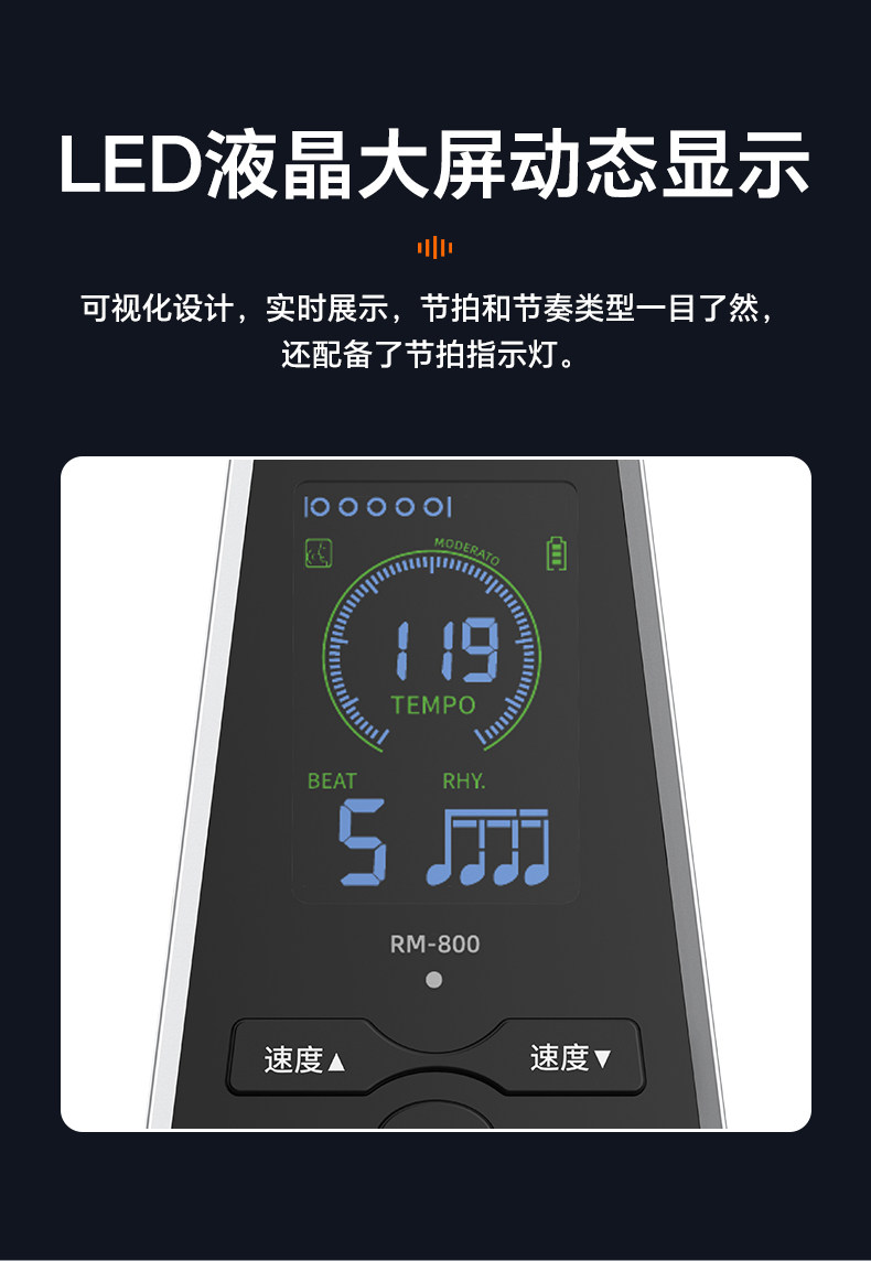 Farbklassifizierung R700-Black Standardmodell mit eingebauter Lithiumbatterie/wiederaufladbarem Design,R800-Modell mit schwarzem Farbbildschirm, eingebauter Lithiumbatterie/wiederaufladbares Design,R800-Farbbildschirm mit Holzmaserung, eingebauter Lithium-Akku/wiederaufladbares Design,Gesangsmetronom/wiederaufladbares Modell/chinesischer Knopf/hohe Lautstärke