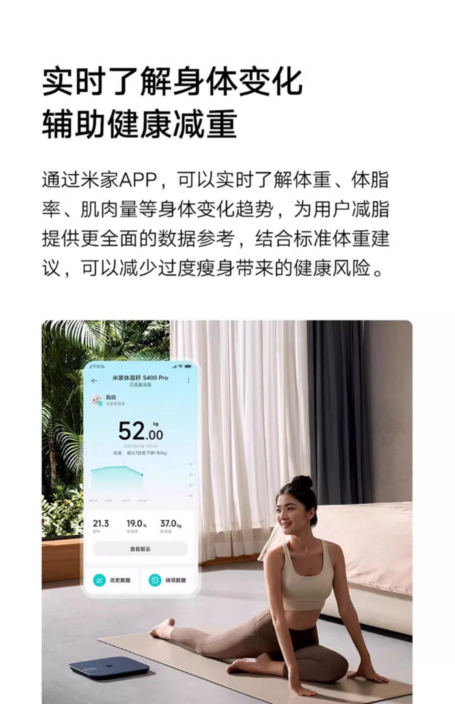 小米体脂秤S400 Pro米家体电子称健康家用健身减肥智能精准体重秤