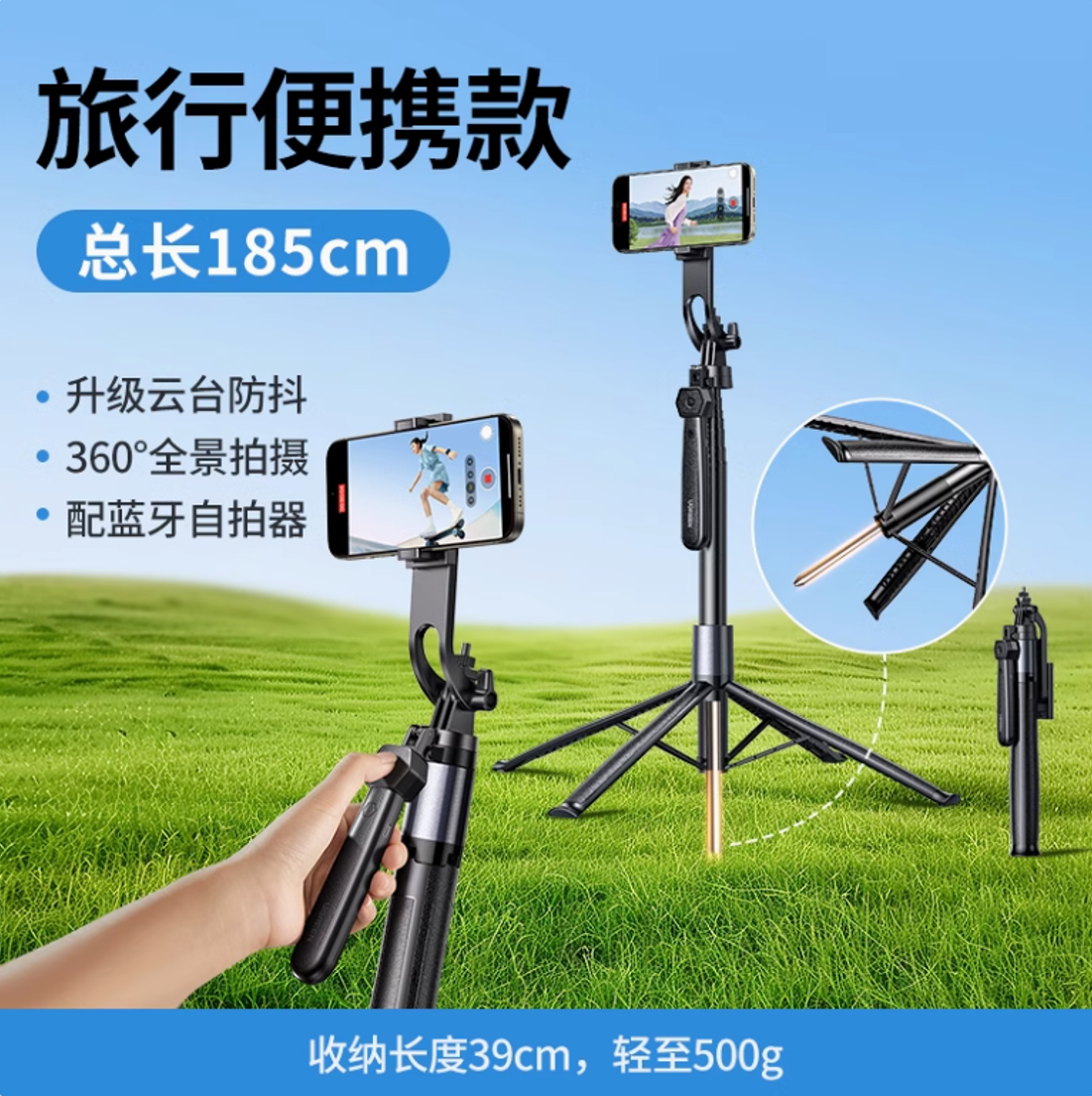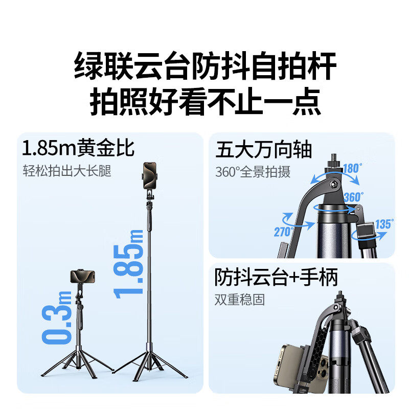 Farbklassifizierung Extra langer 1,85 m Selfie-Stick, Anti-Shake-Gimbal/stabile Landung