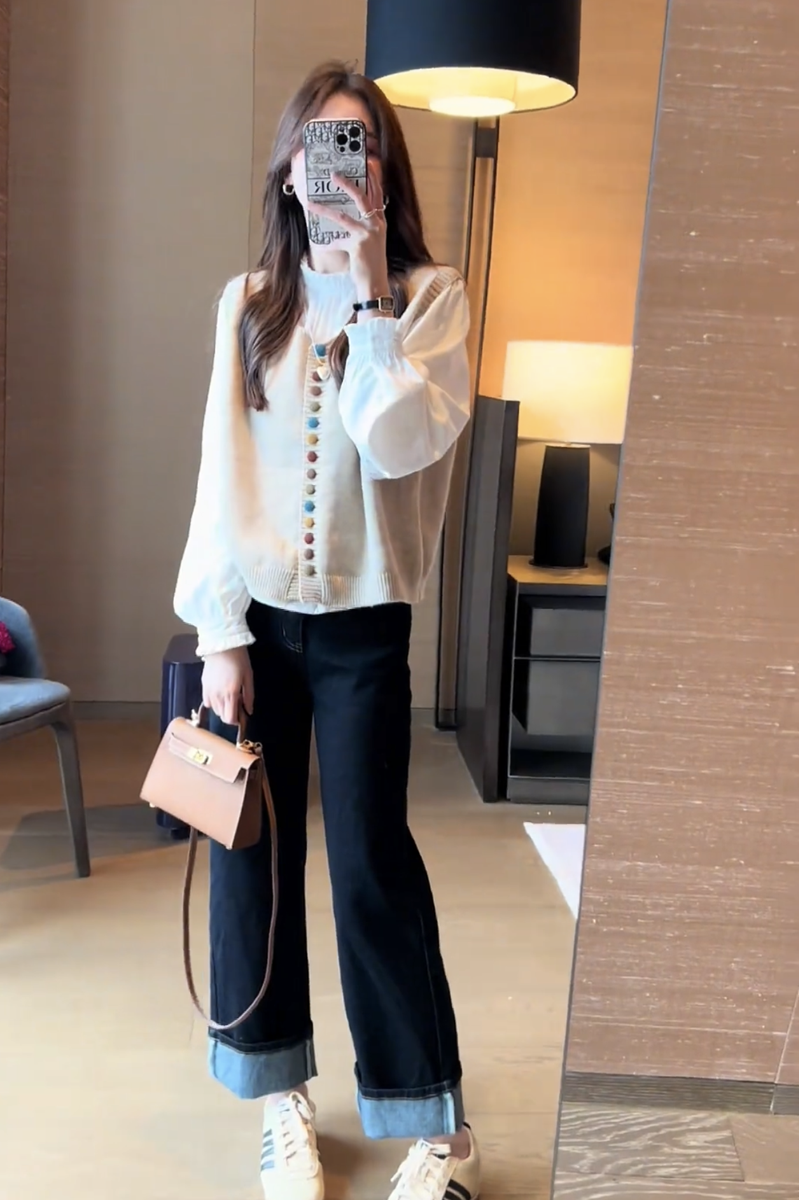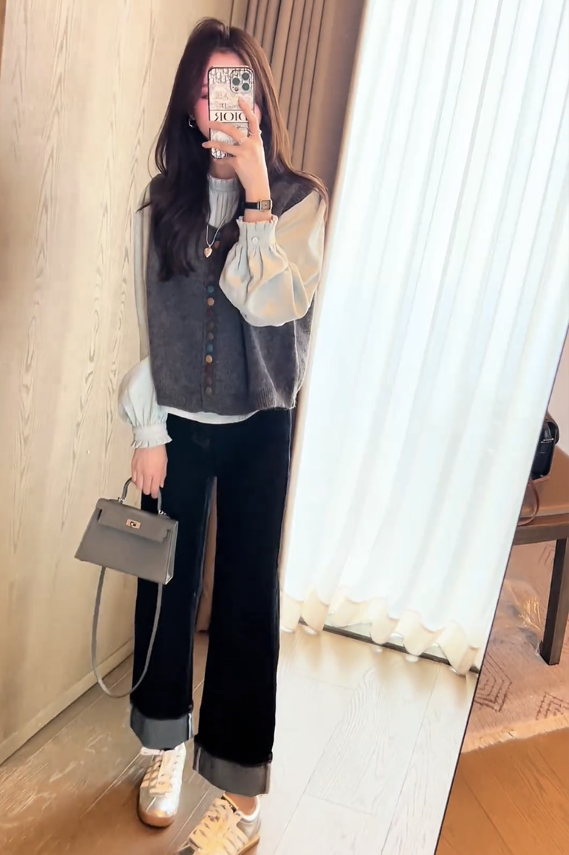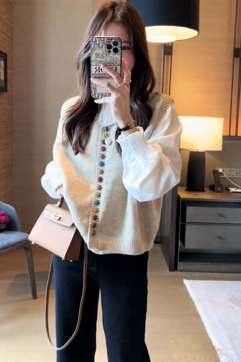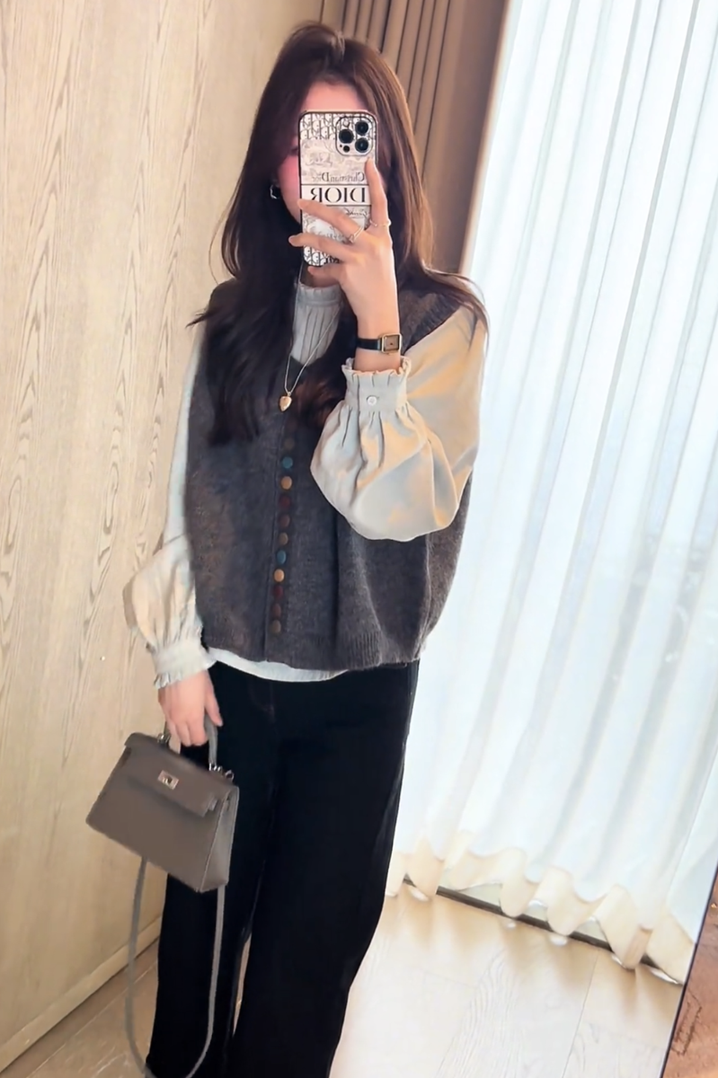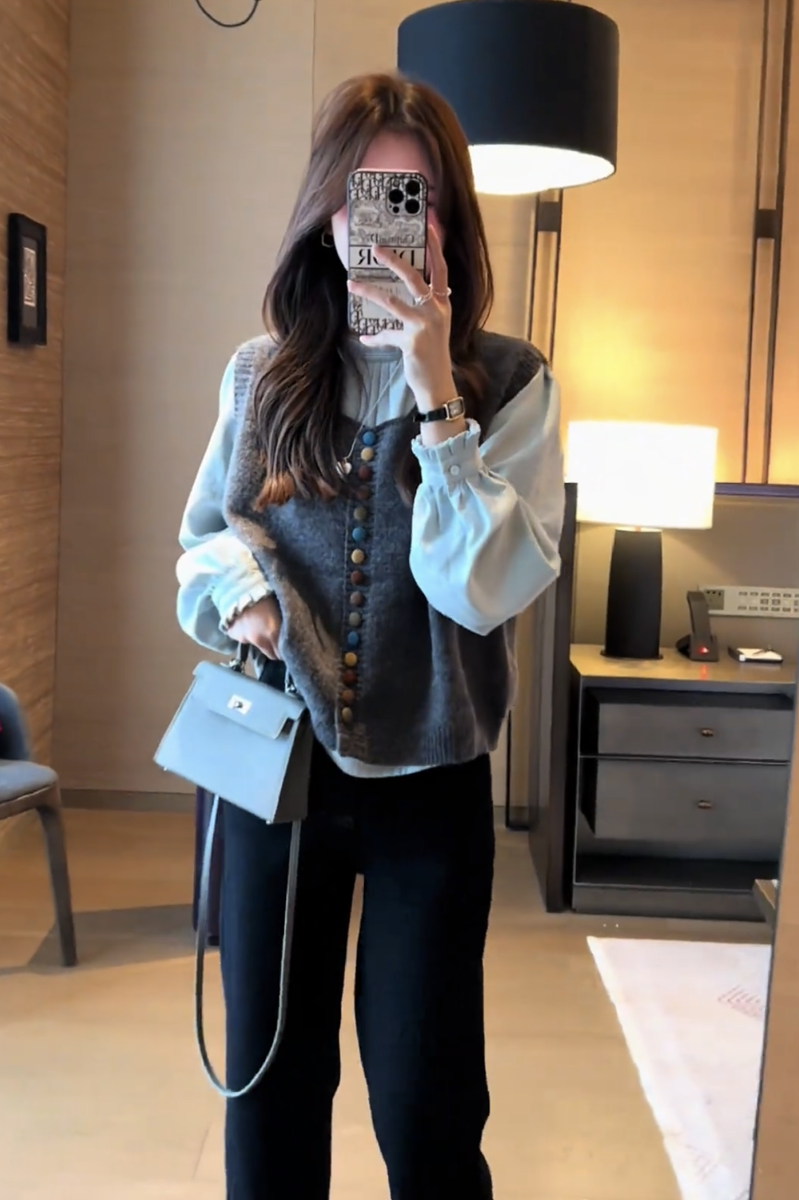 2025 nuevo diseño de otoño para mujer, chaleco tipo suéter ceroso suave, mangas abullonadas versátiles, traje de camisa interior