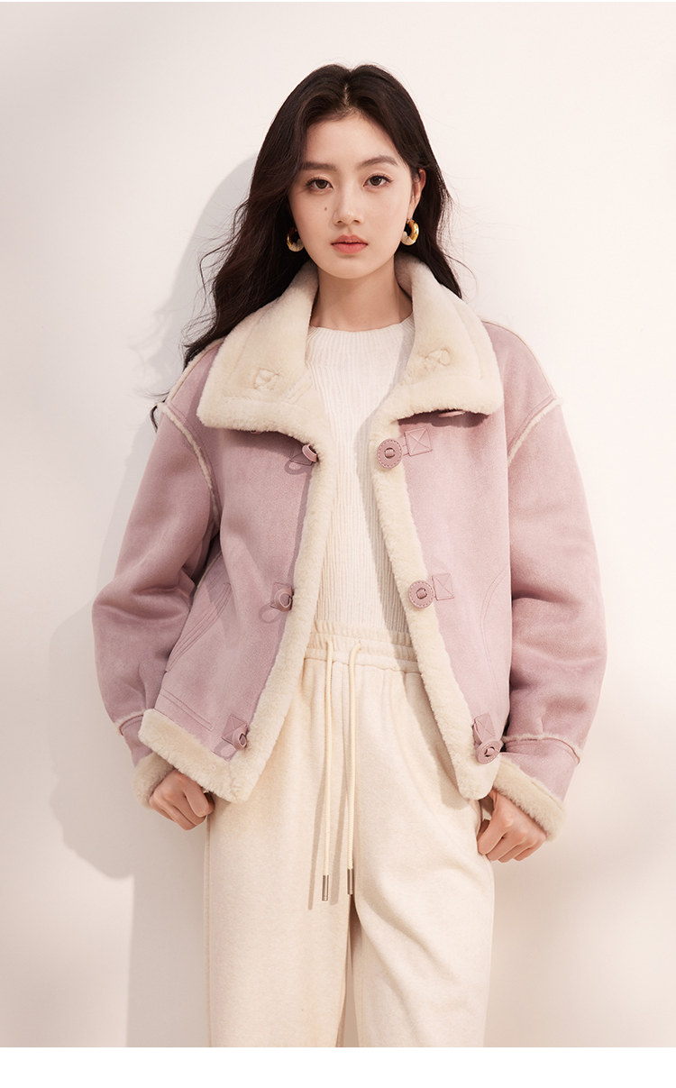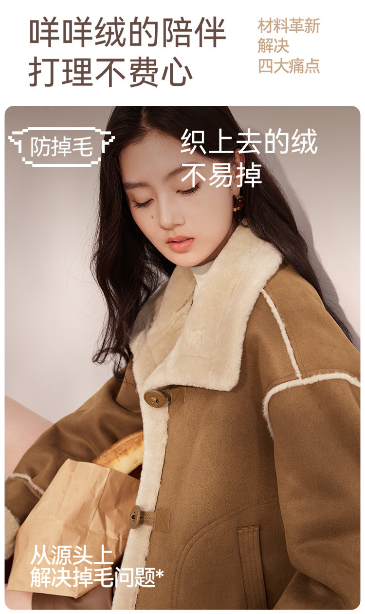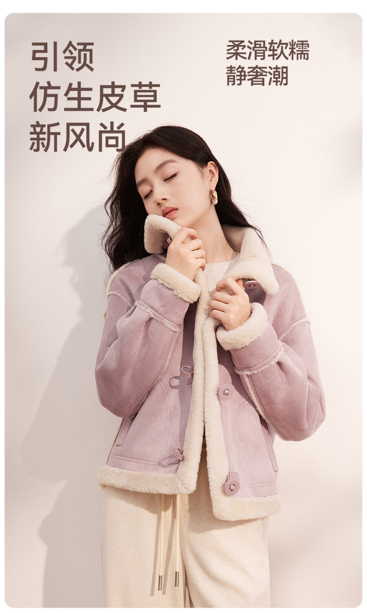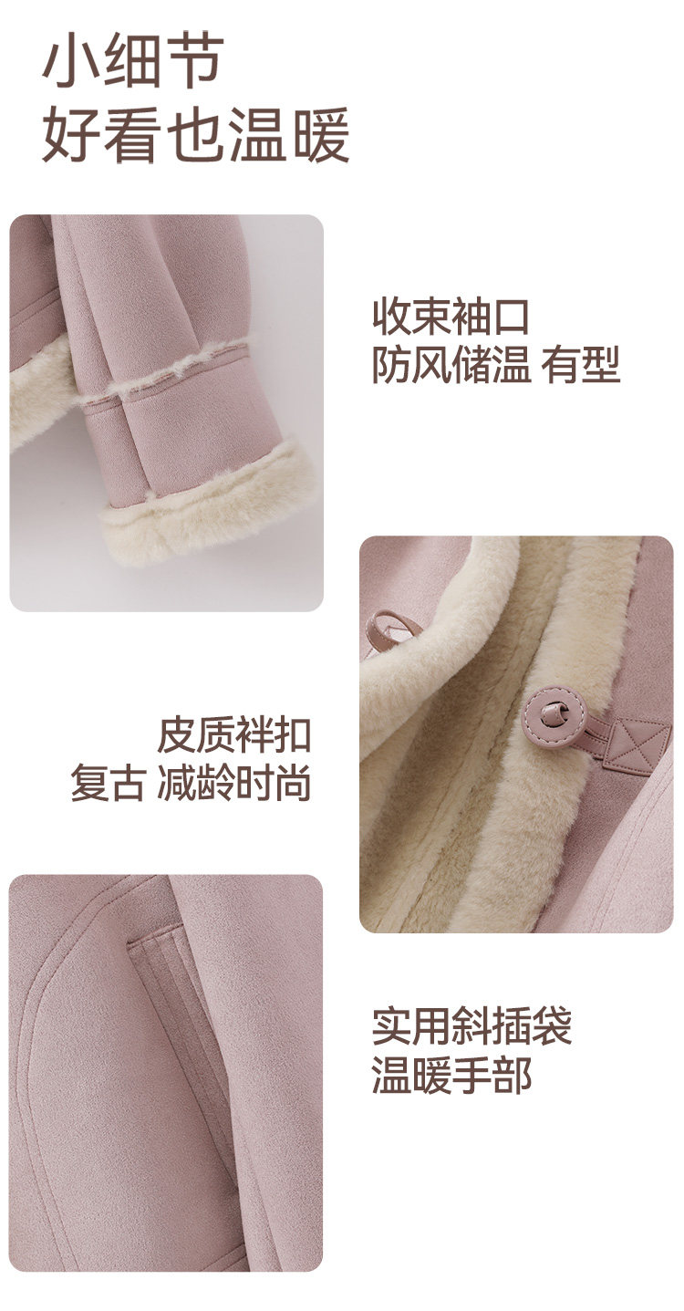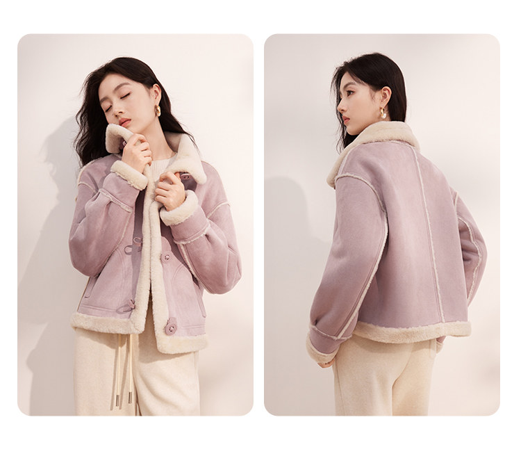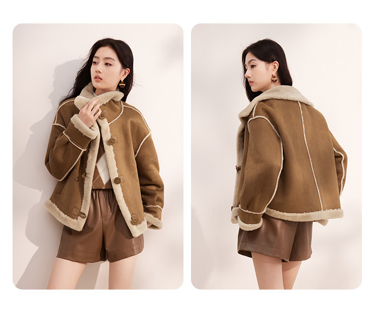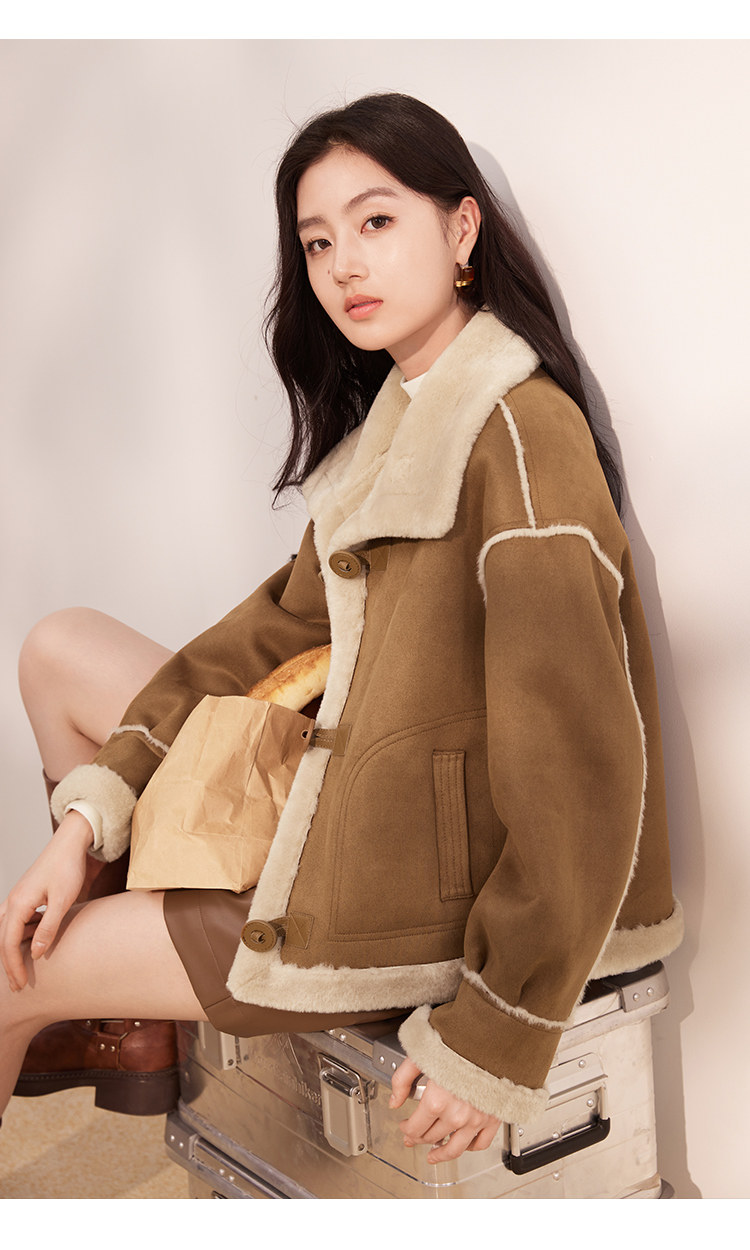【香影咩咩绒】仿麂皮绒复古短外套2025冬美拉德皮毛一体仿生皮草