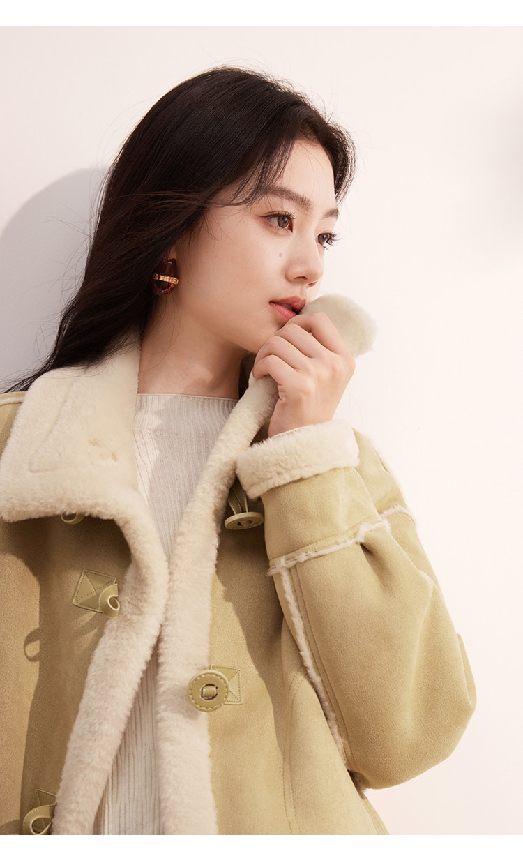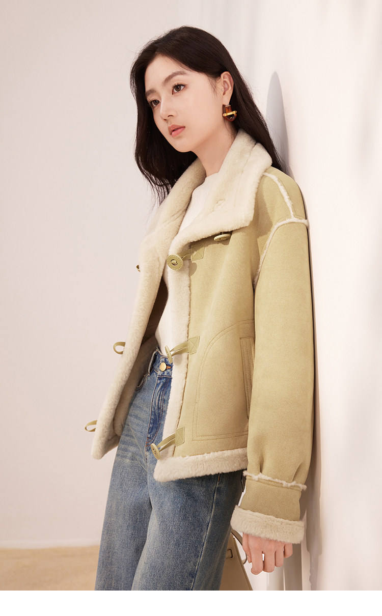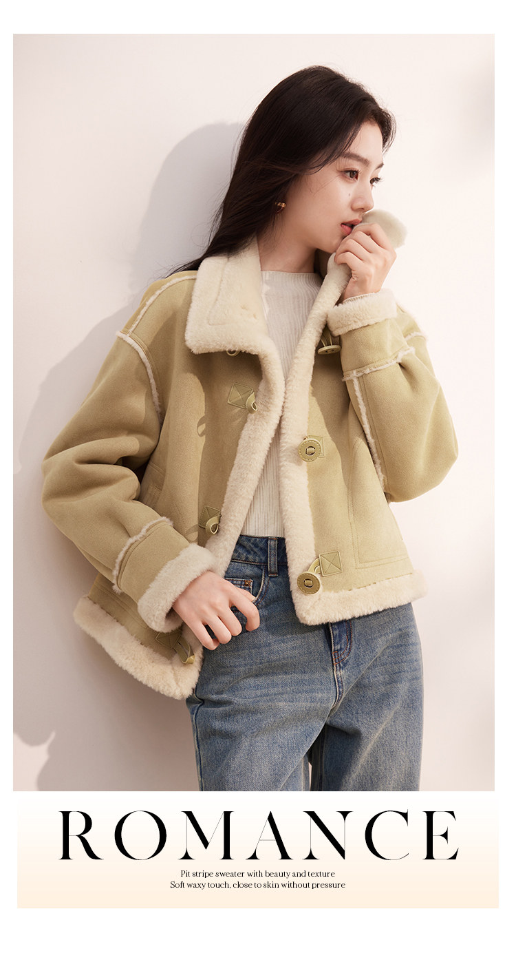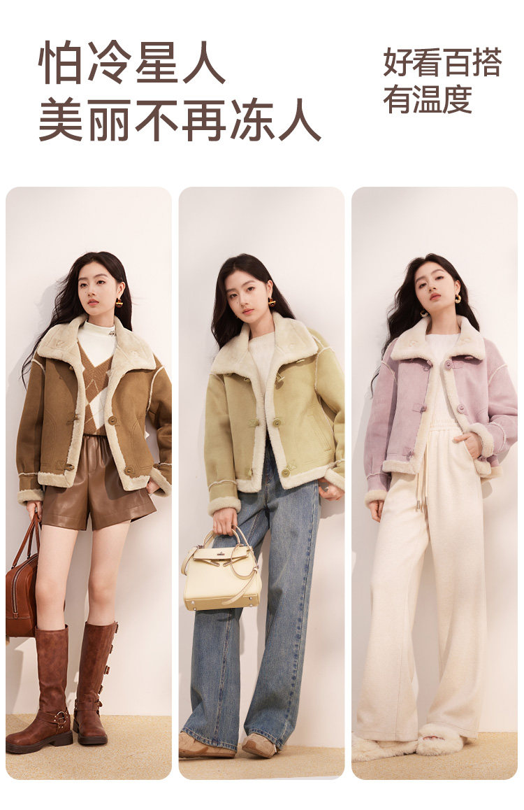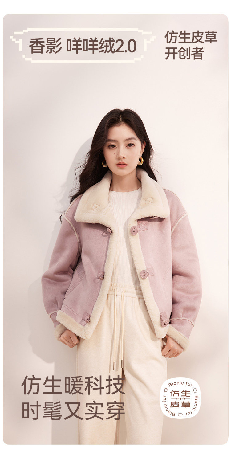 【香影咩咩绒】仿麂皮绒复古短外套2025冬美拉德皮毛一体仿生皮草