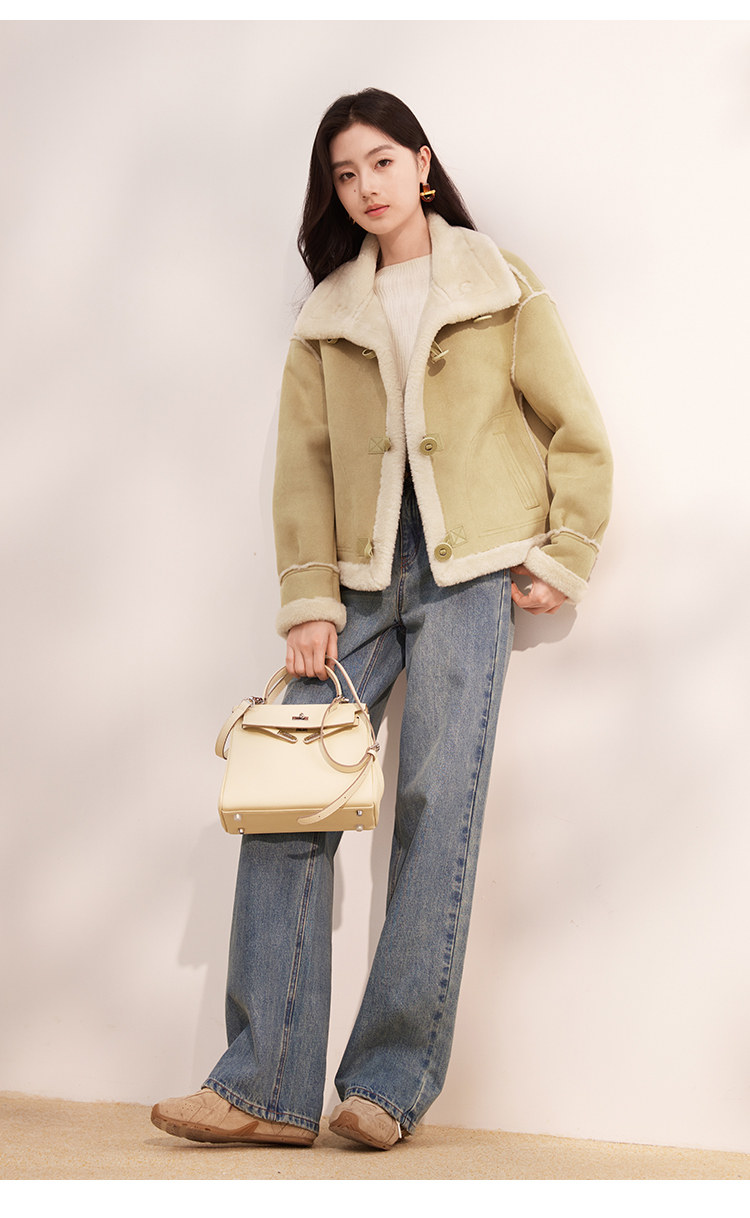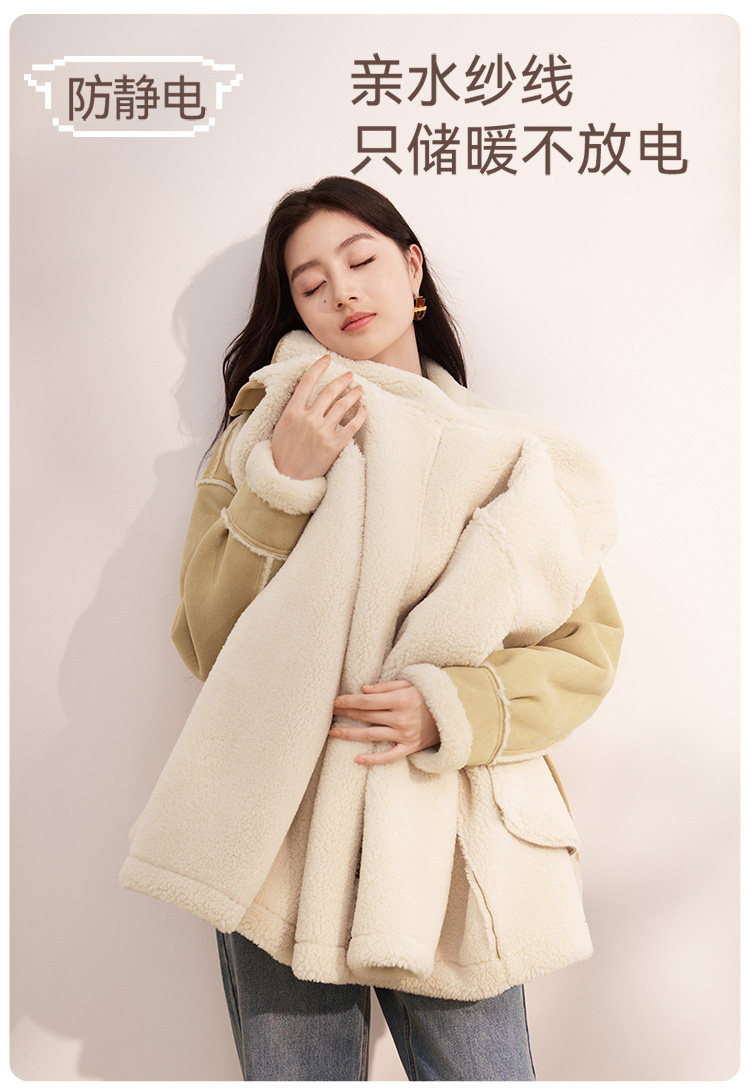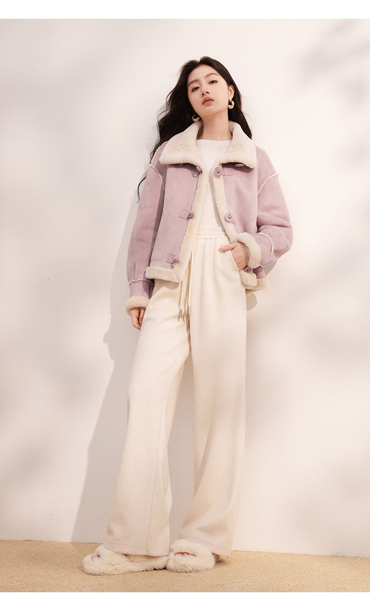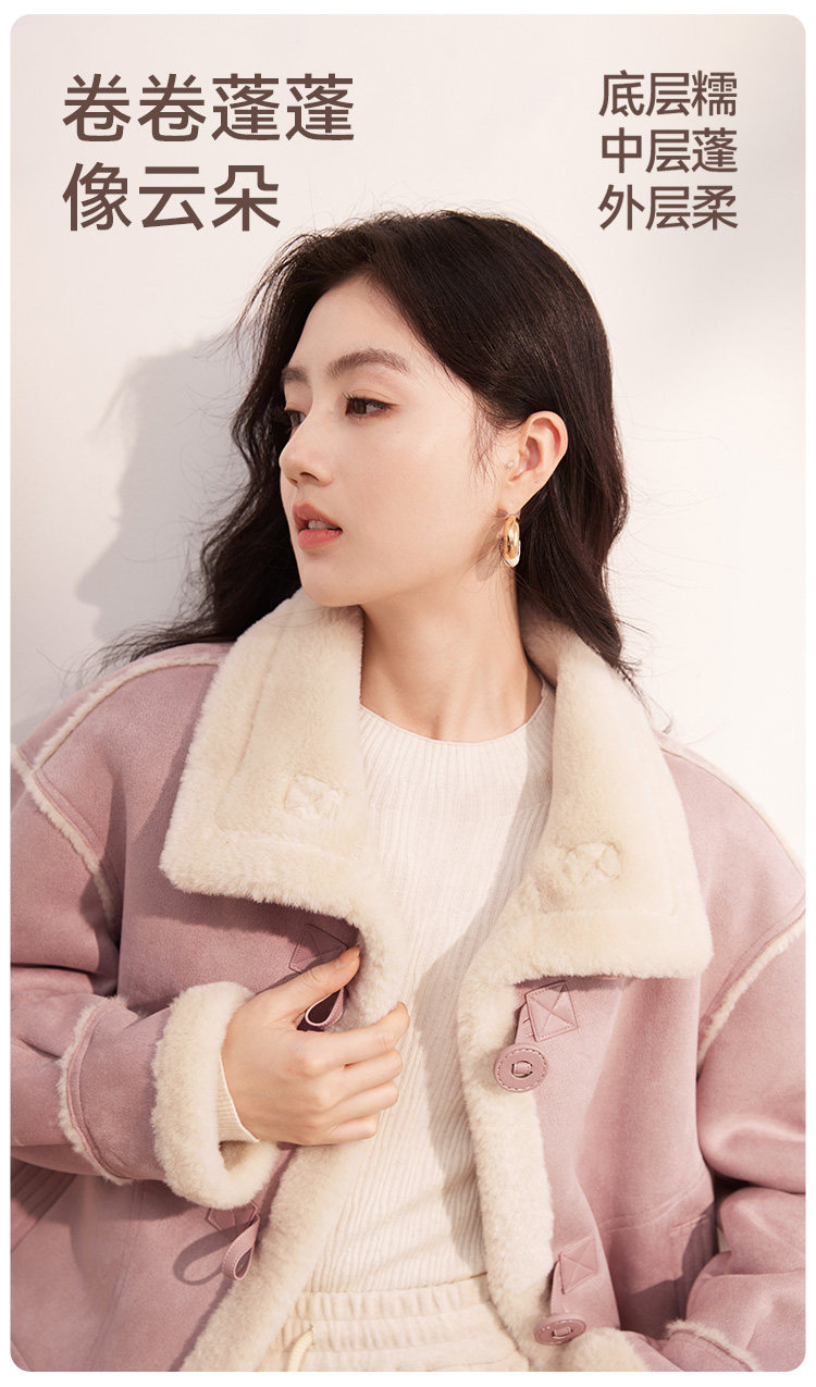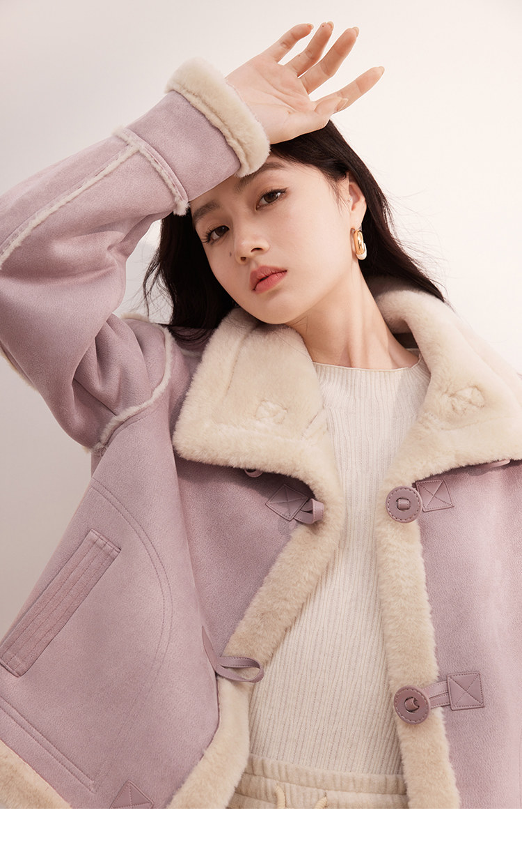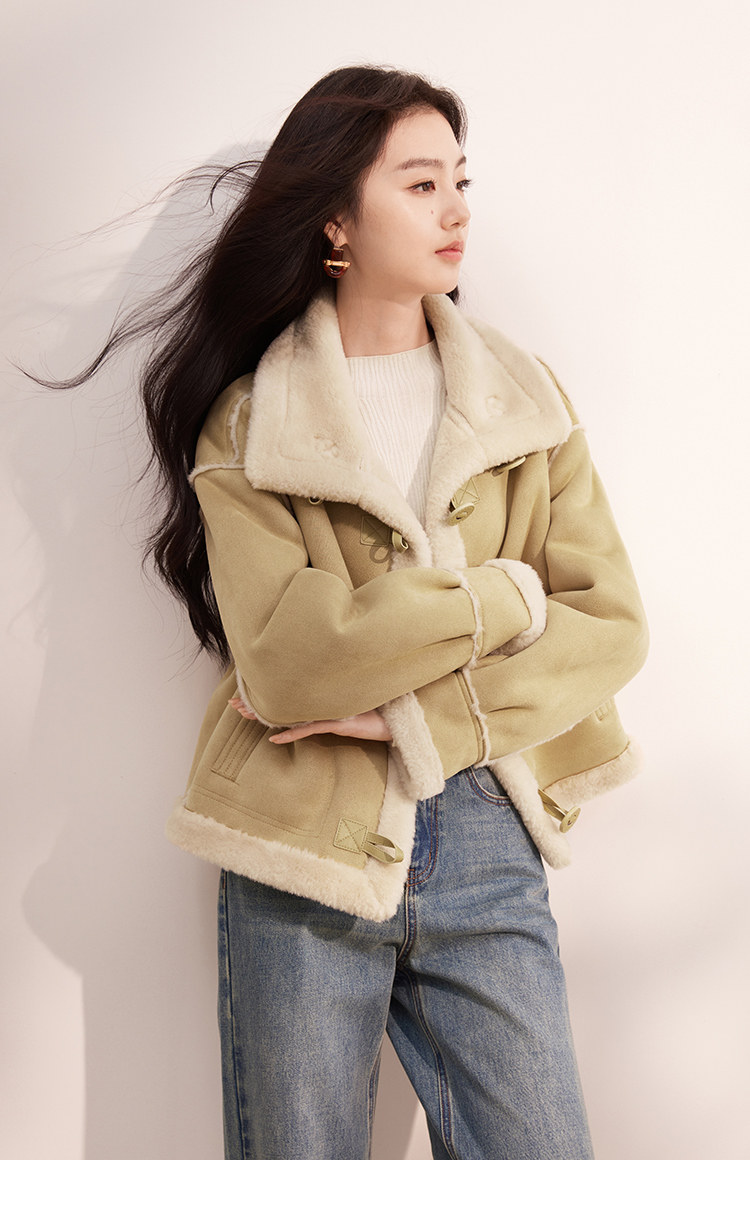 【香影咩咩绒】仿麂皮绒复古短外套2025冬美拉德皮毛一体仿生皮草