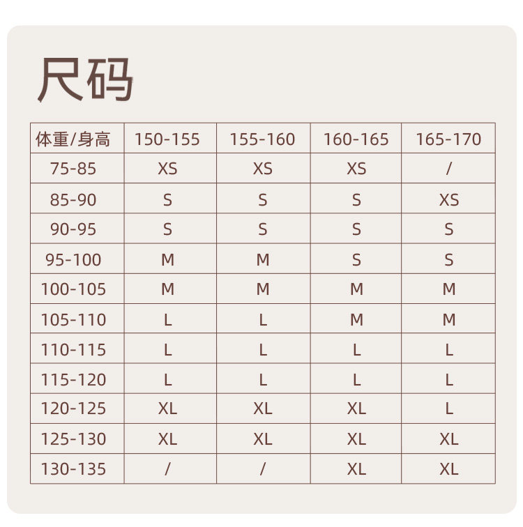 China (cm) 160-165/84-86 165-170 / 88-90 167-172 / 92-96 168-173 / 98-102 170-176 / 106-110