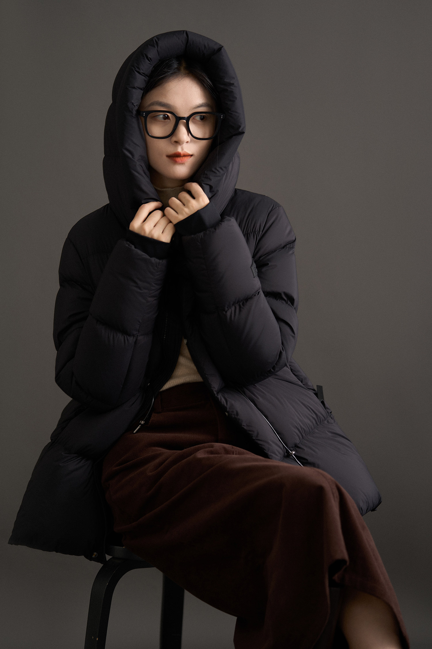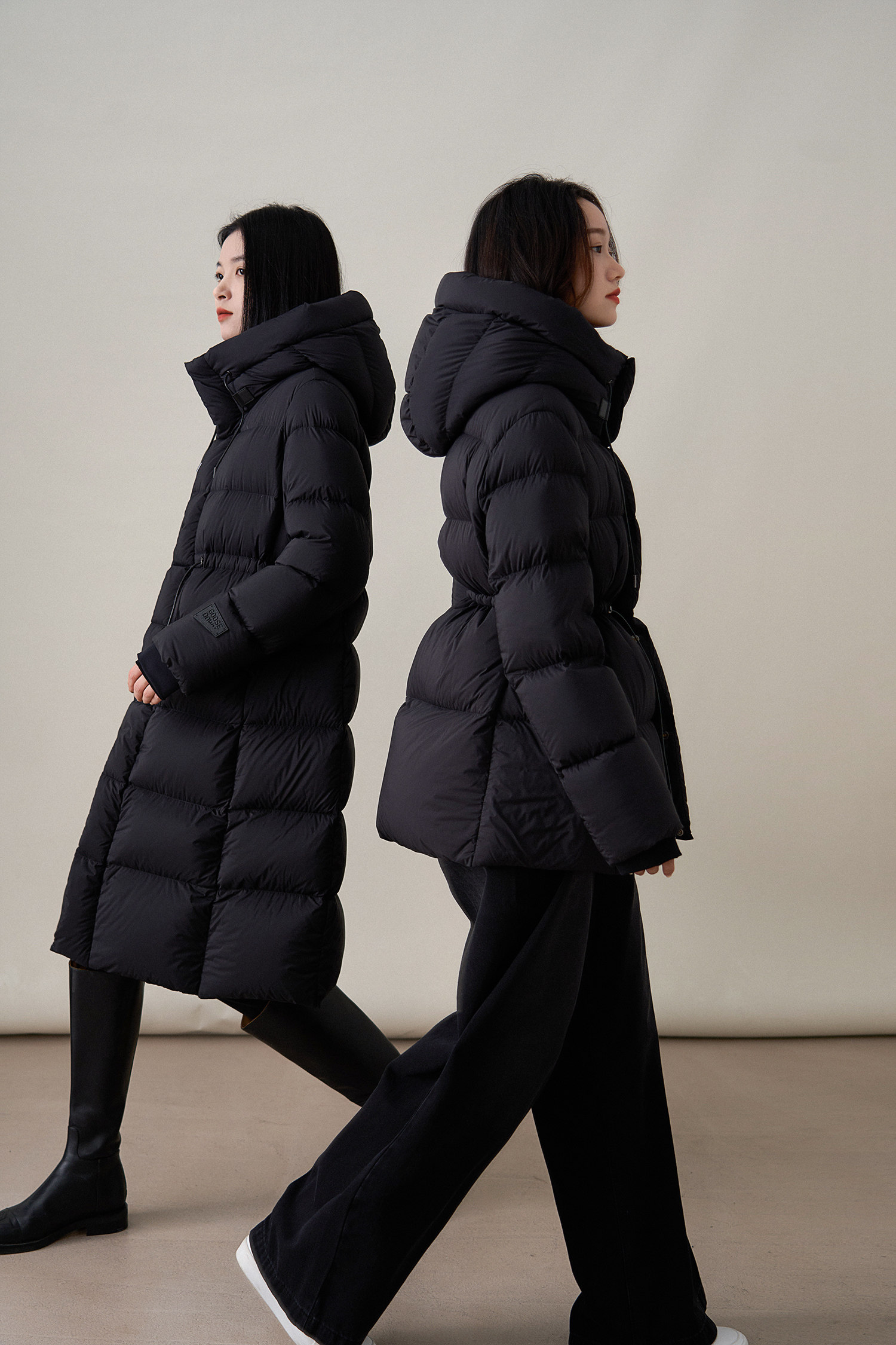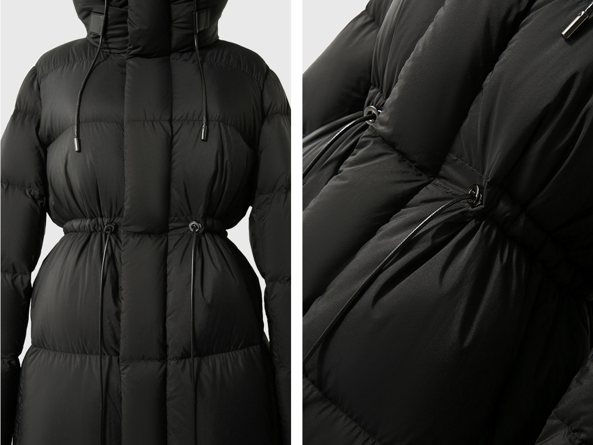 Classement des couleurs Noir fonctionnel, style court - taille en cinq parties.,Noir fonctionnel, style long – huit grilles cintrant la taille.