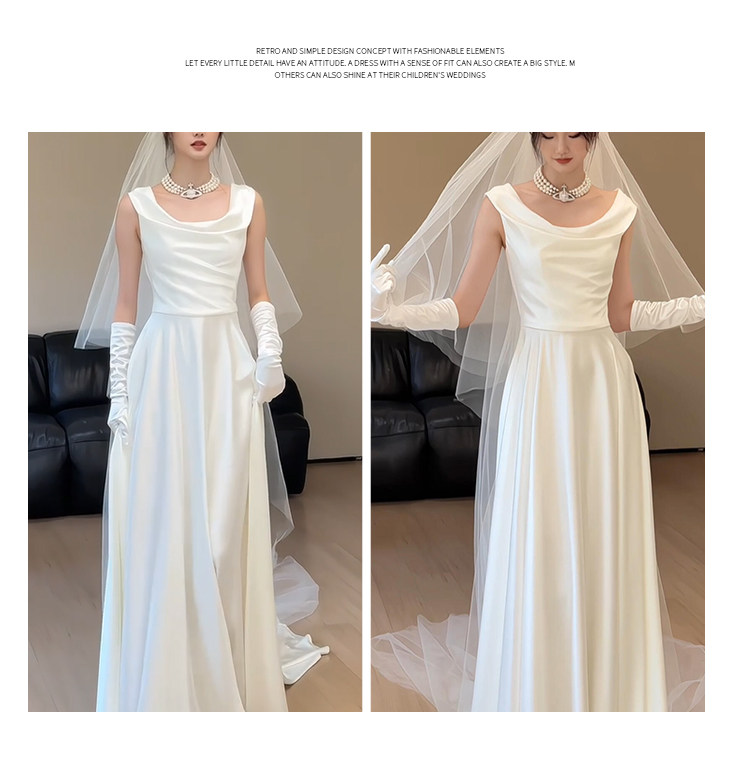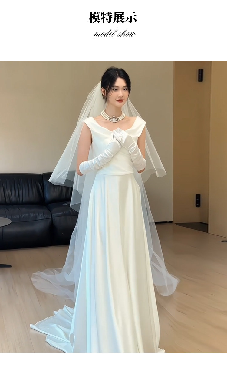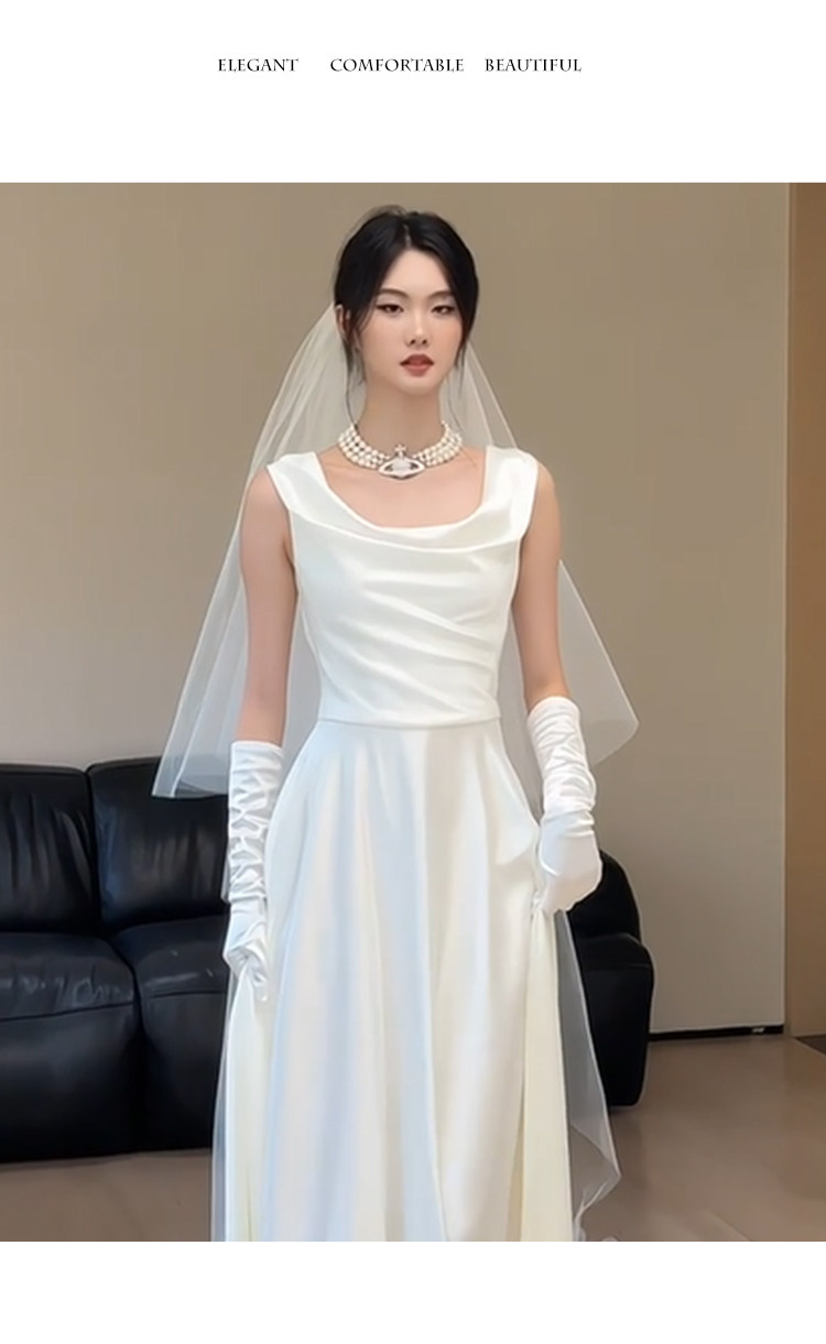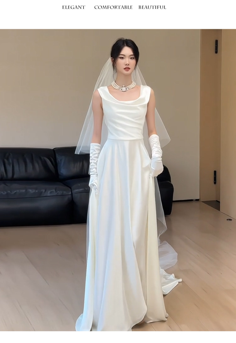 旅拍轻婚纱新娘简约高级感法式缎面新娘礼服裙小众显瘦迎宾出门纱