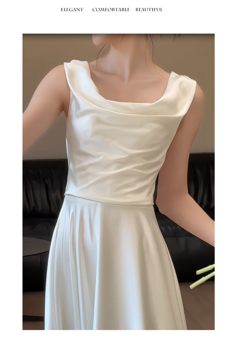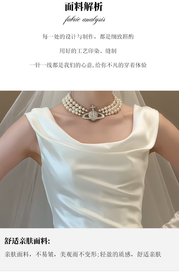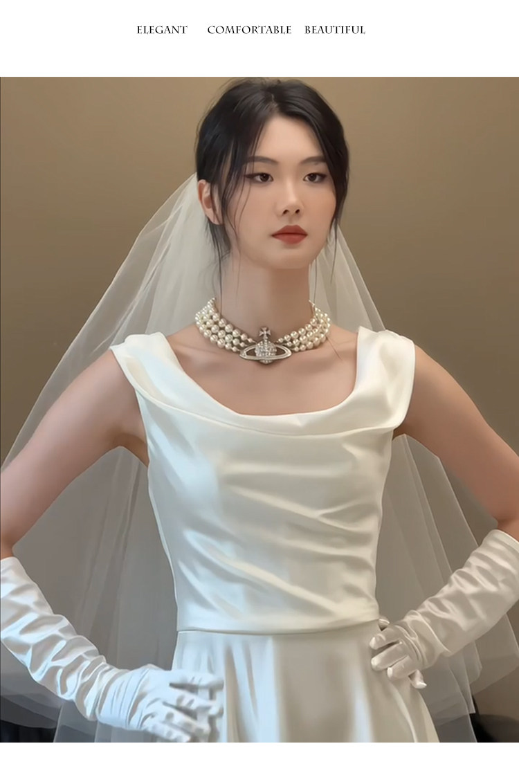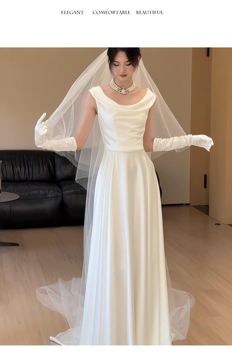 旅拍轻婚纱新娘简约高级感法式缎面新娘礼服裙小众显瘦迎宾出门纱