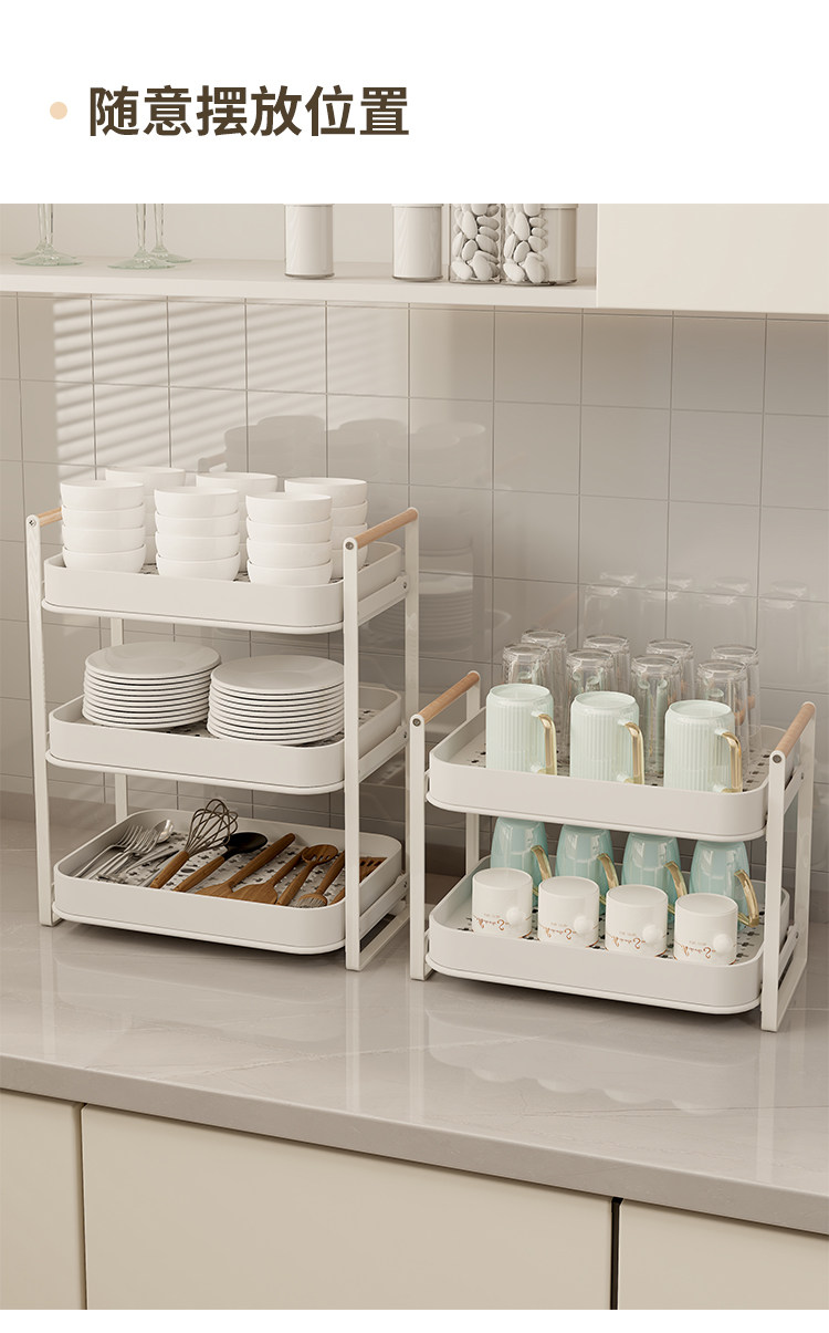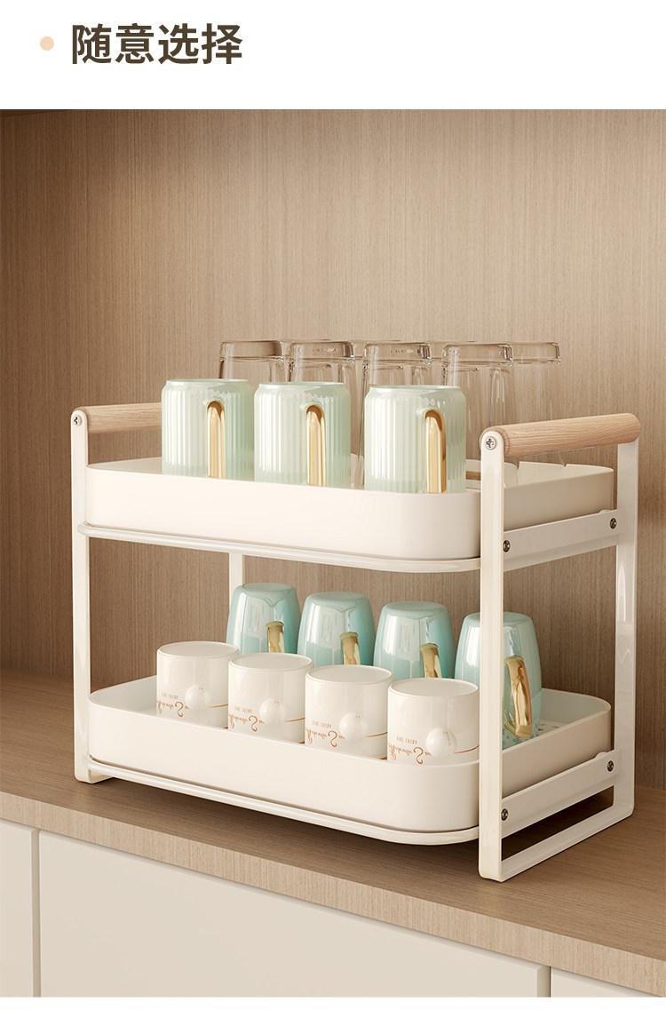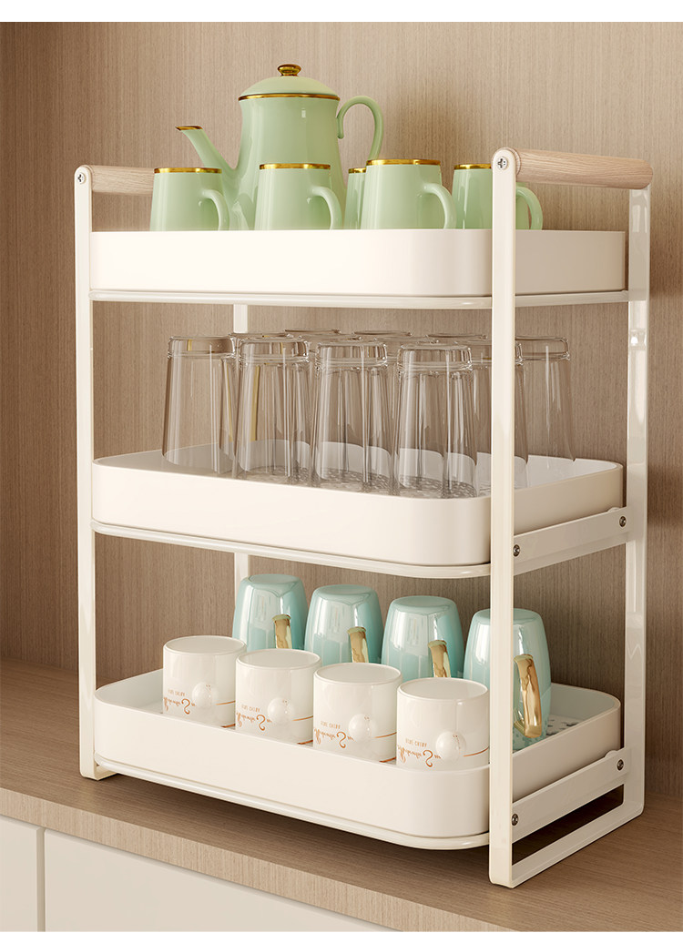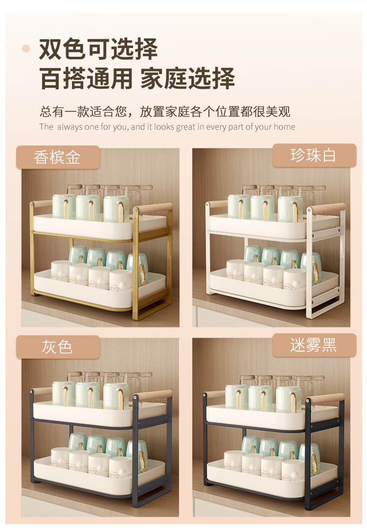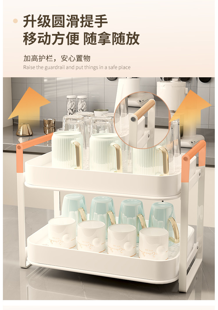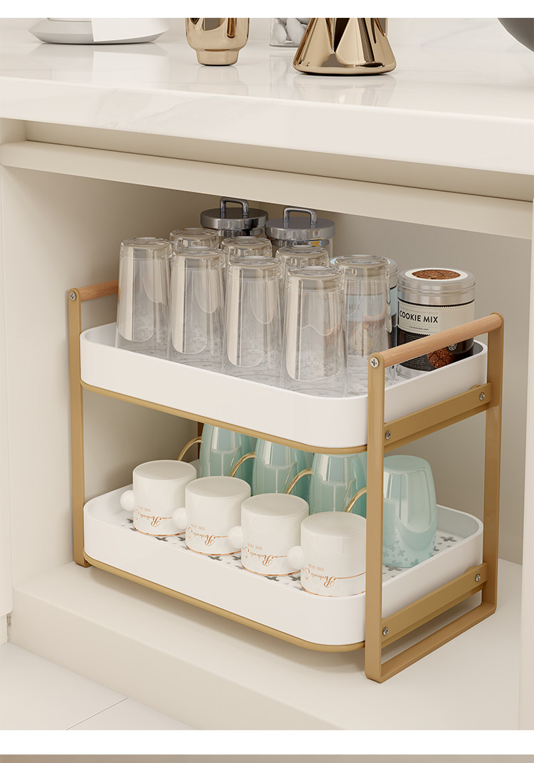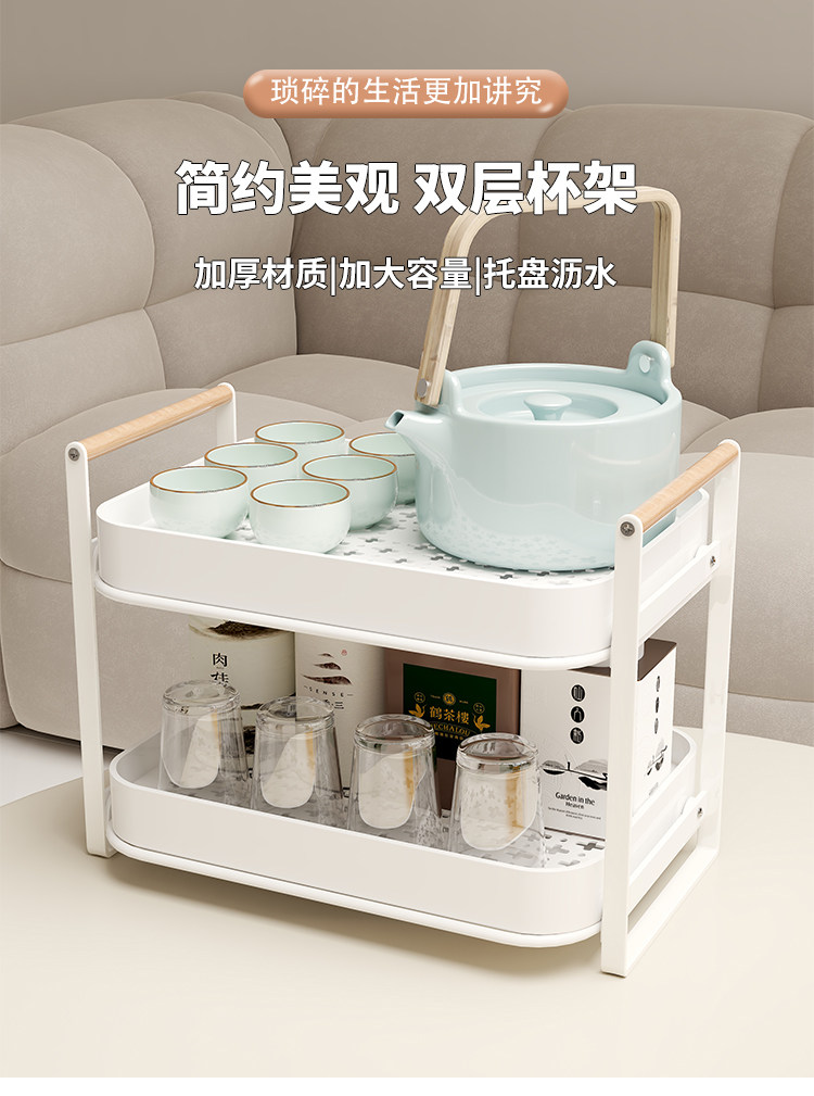 Estante de almacenamiento de tazas, estante para tazas de té de doble capa, juego de té, estante de almacenamiento para tazas, bandeja de drenaje para tazas de agua de escritorio para el hogar