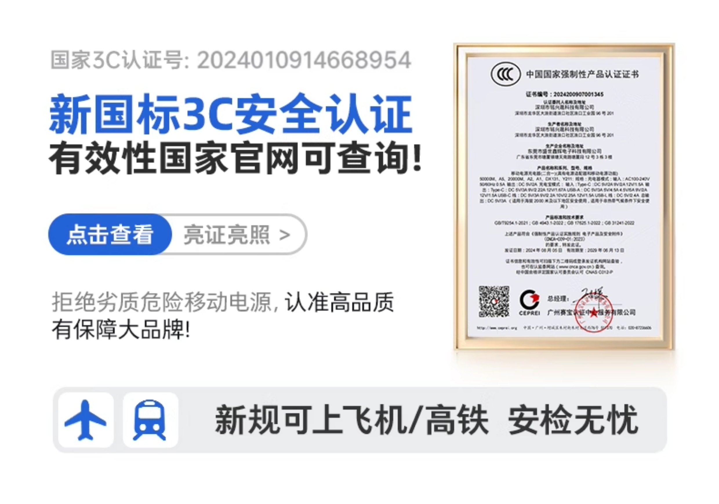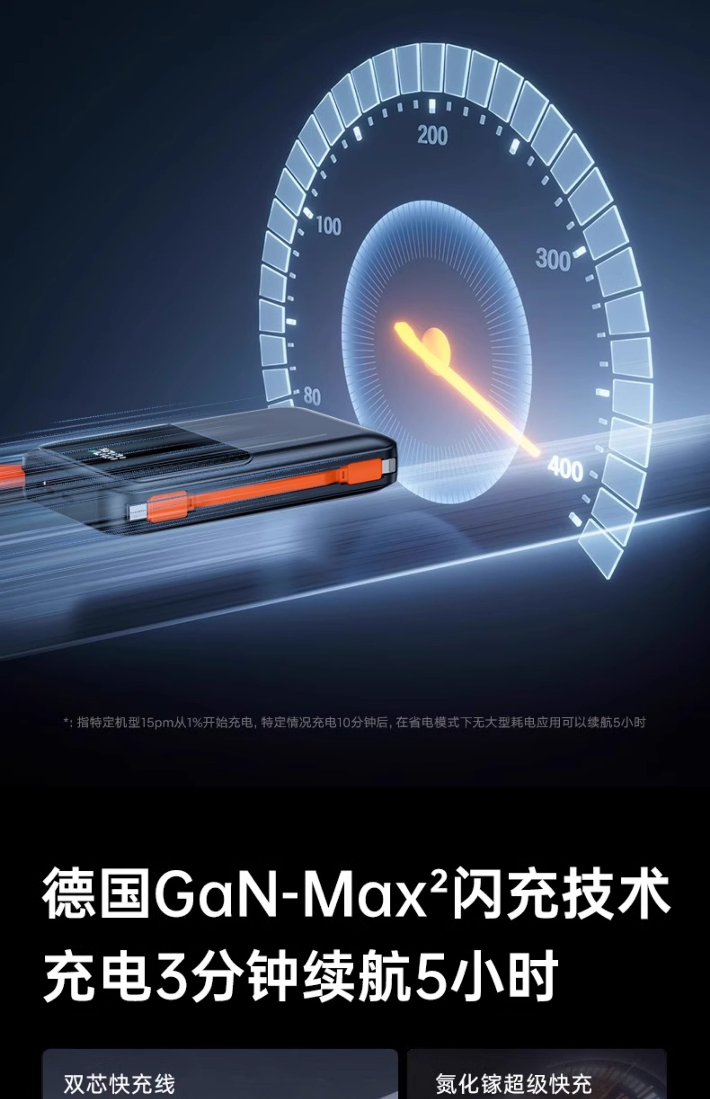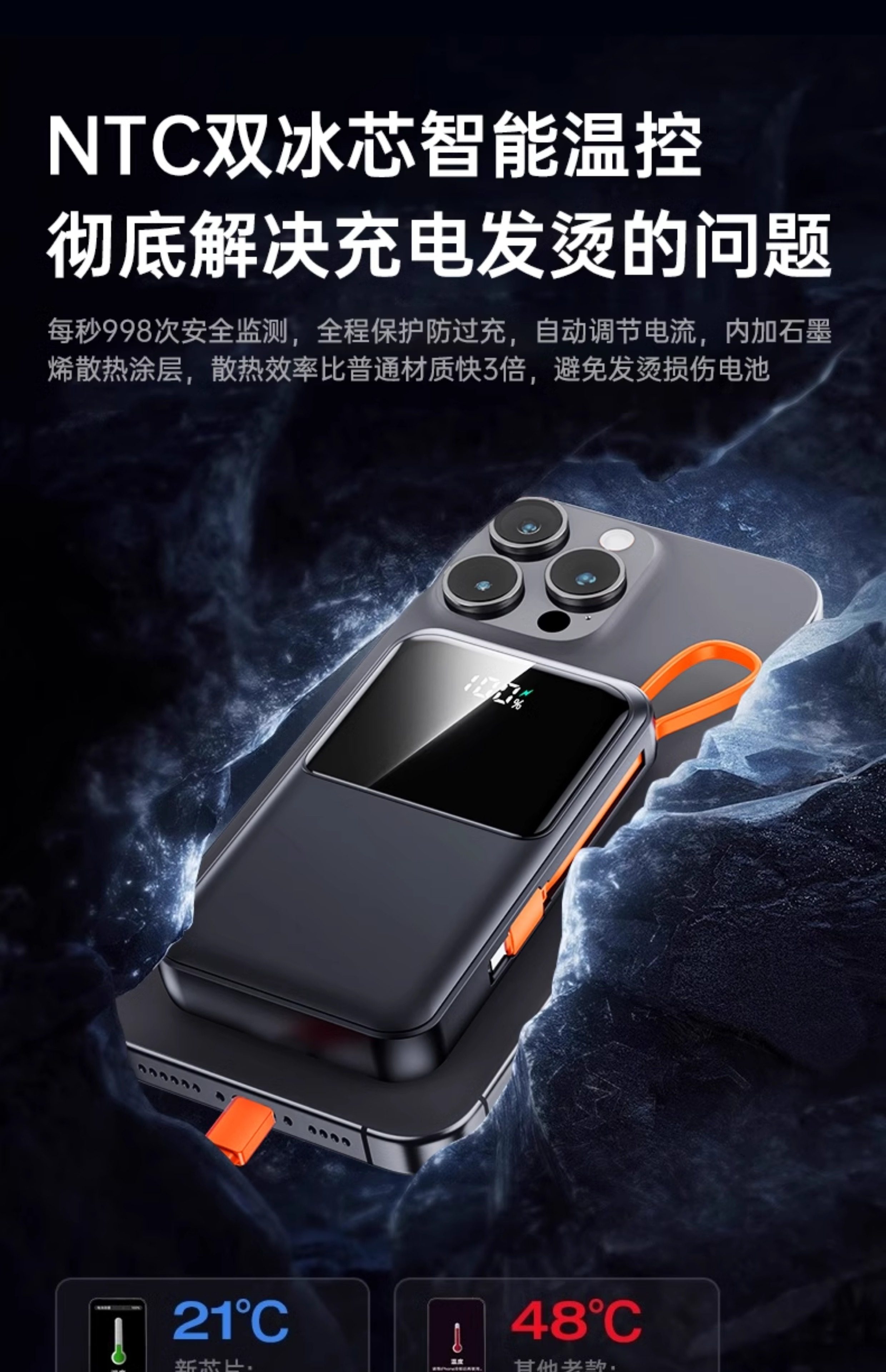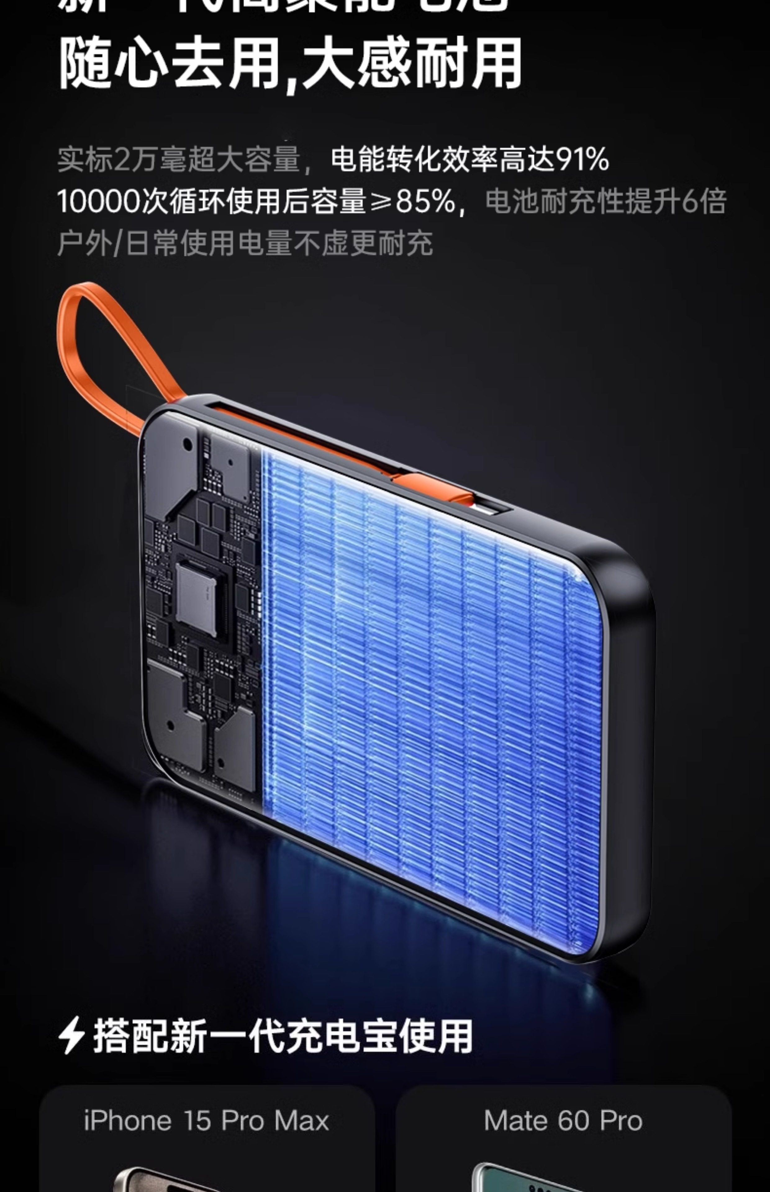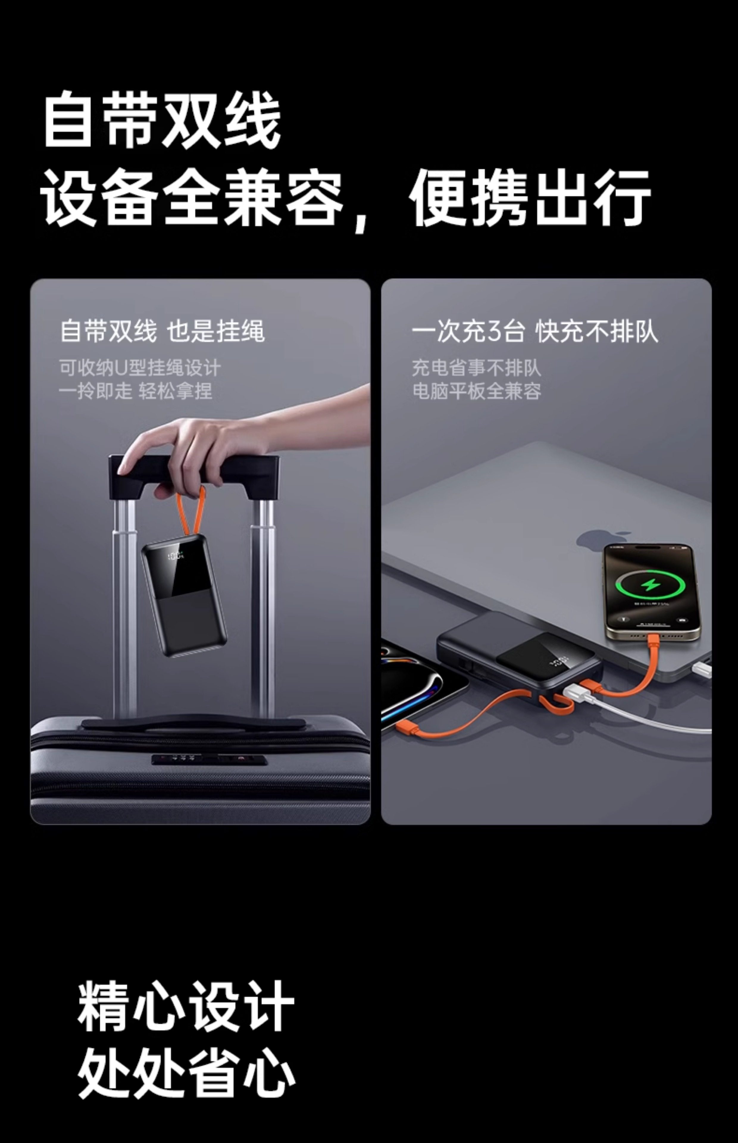 新国标3C认证】2025新款充电宝自带线移动电源户外快充大容量20000毫安飞机便携官方正品适用苹果17华为小米X