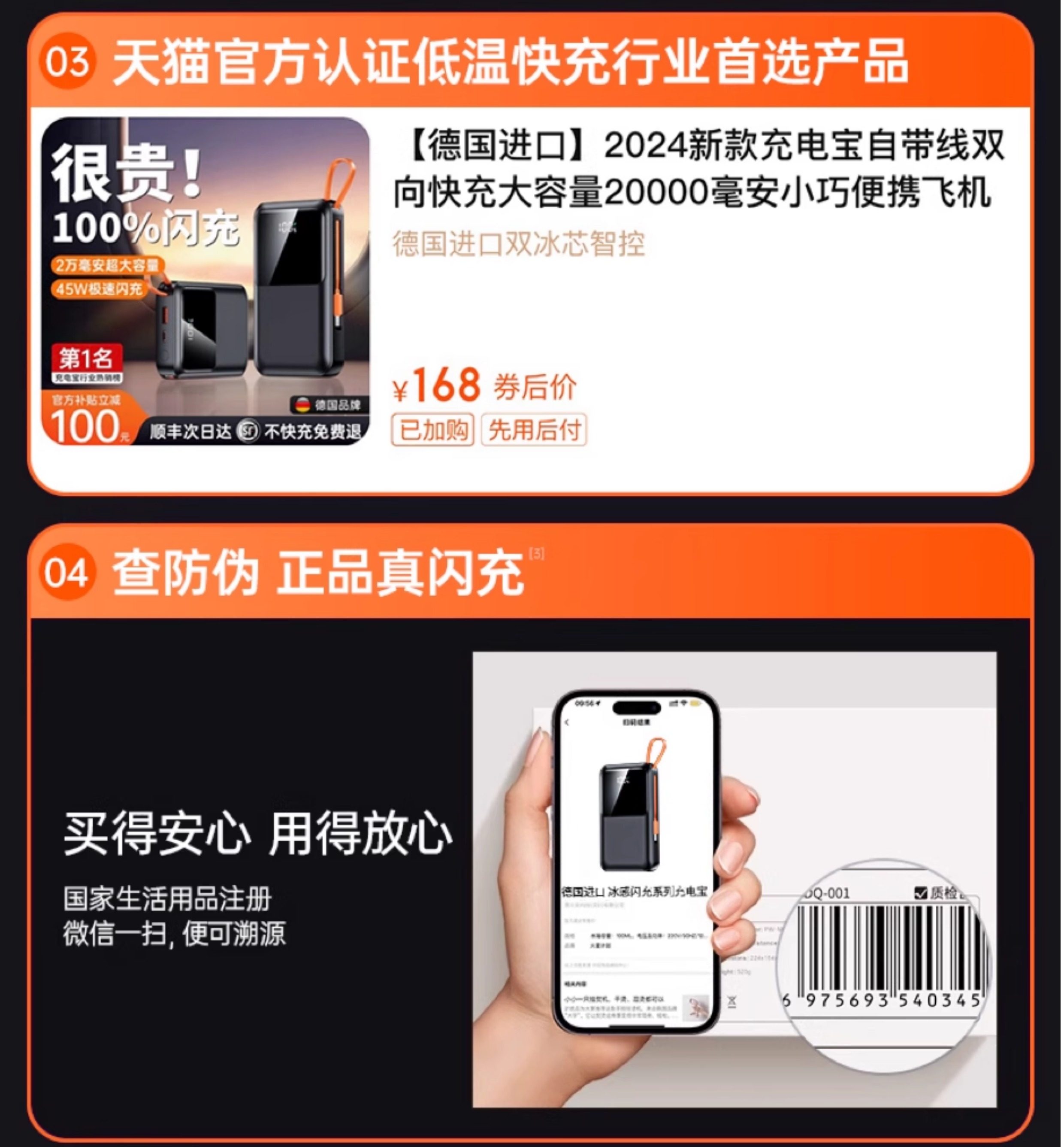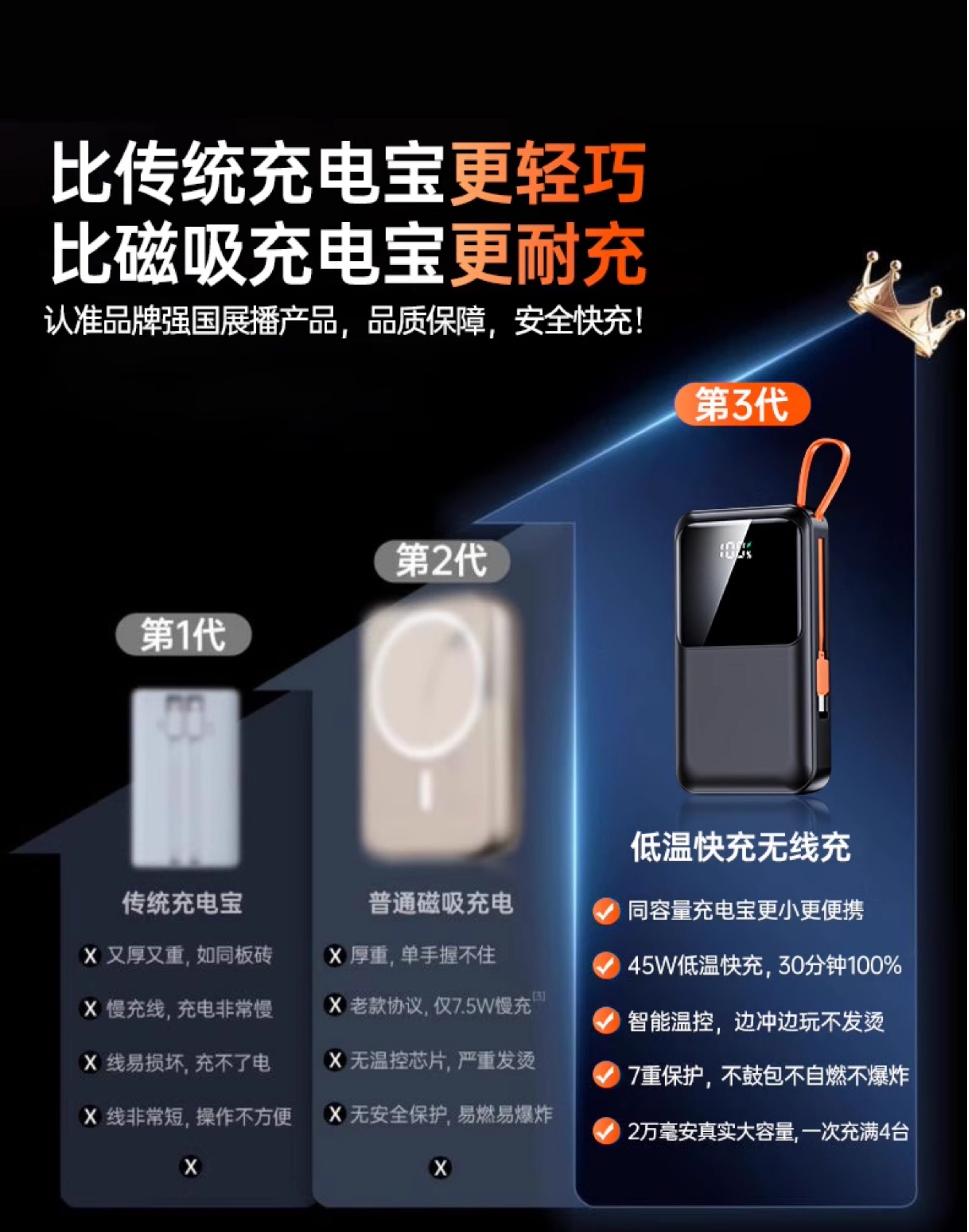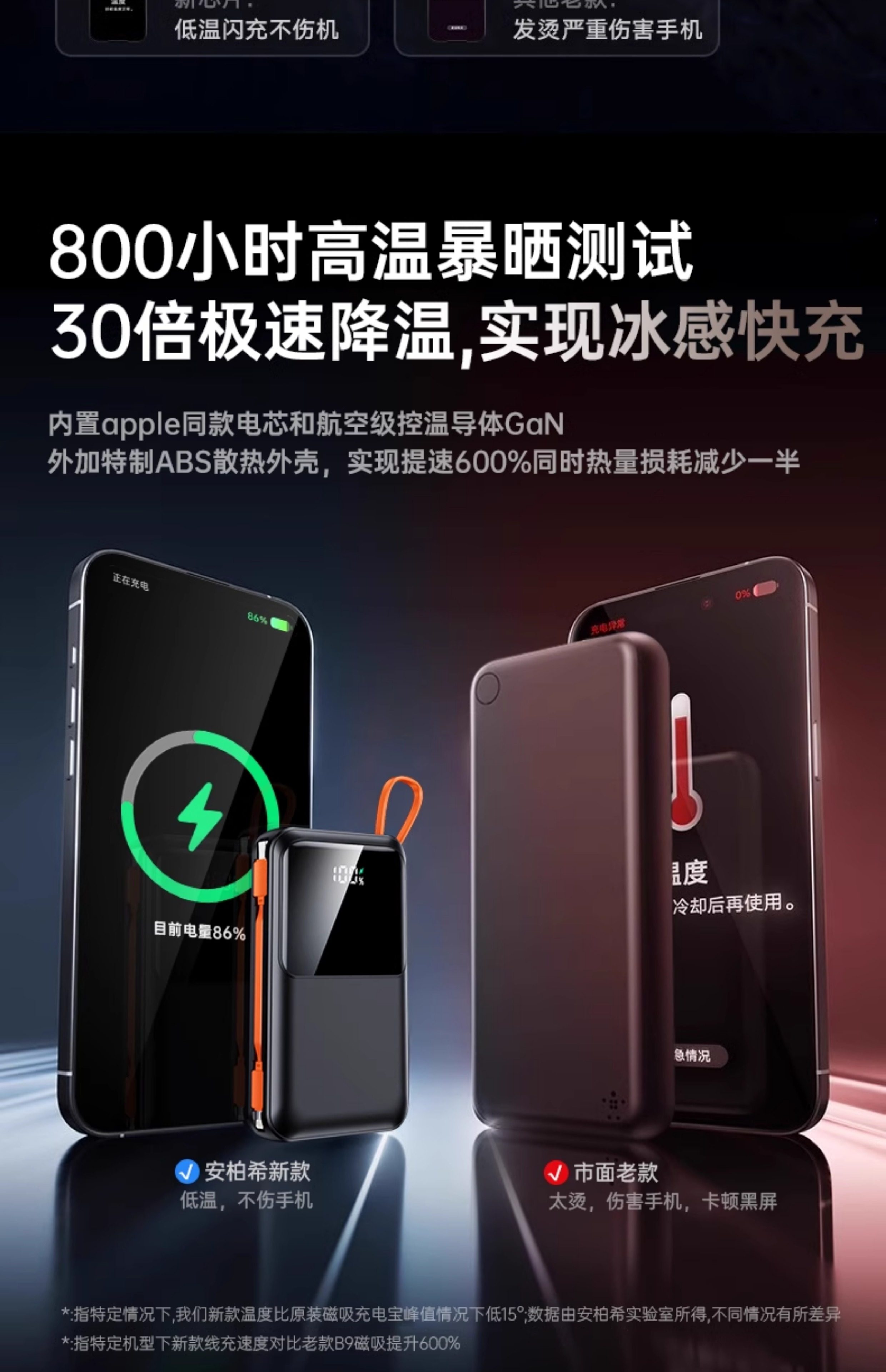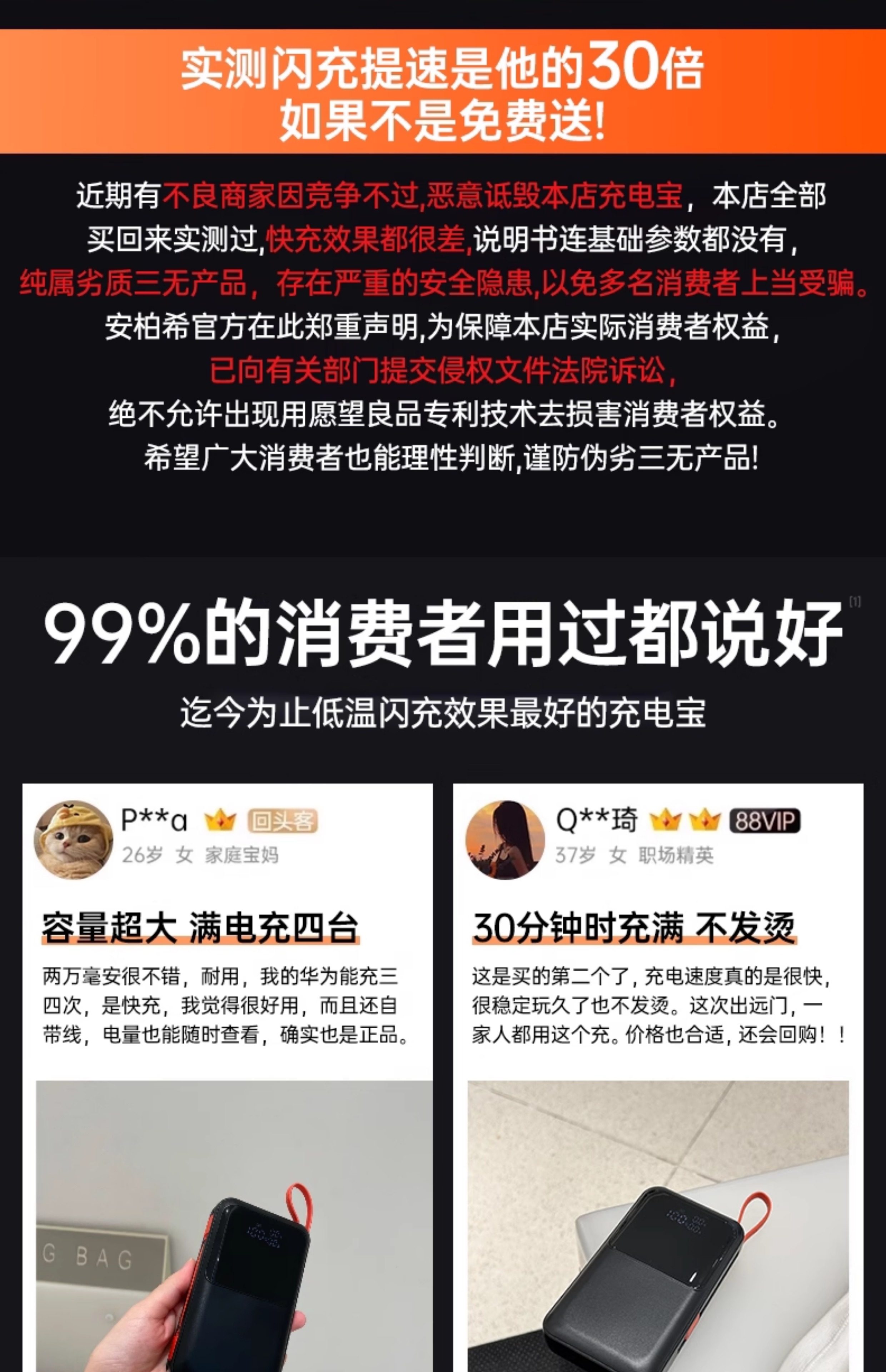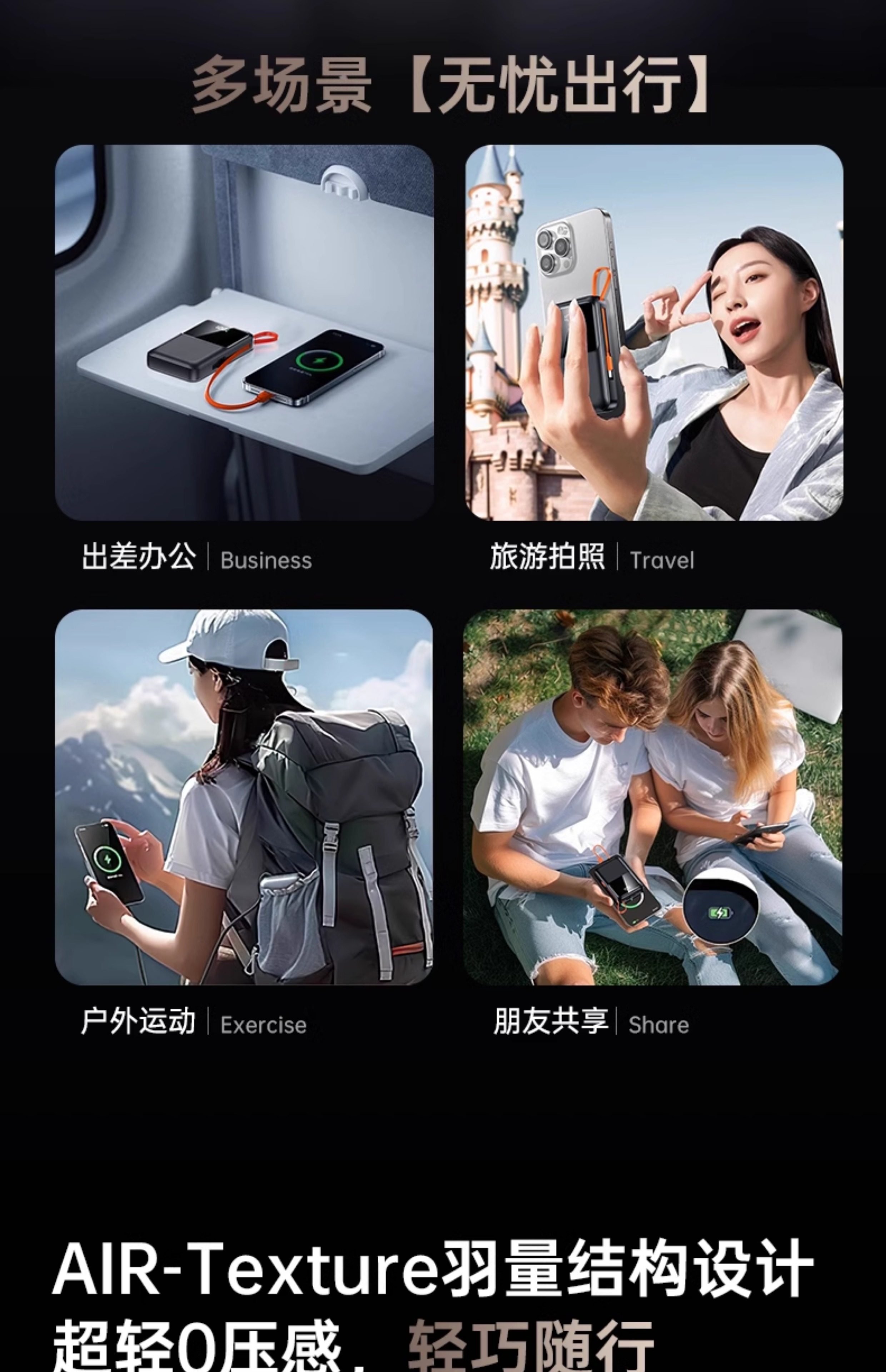 新国标3C认证】2025新款充电宝自带线移动电源户外快充大容量20000毫安飞机便携官方正品适用苹果17华为小米X