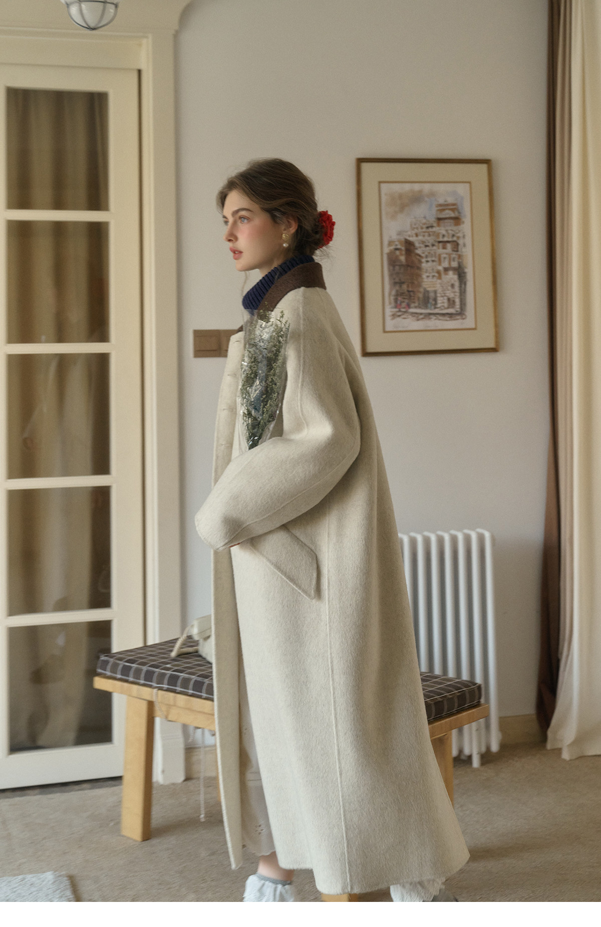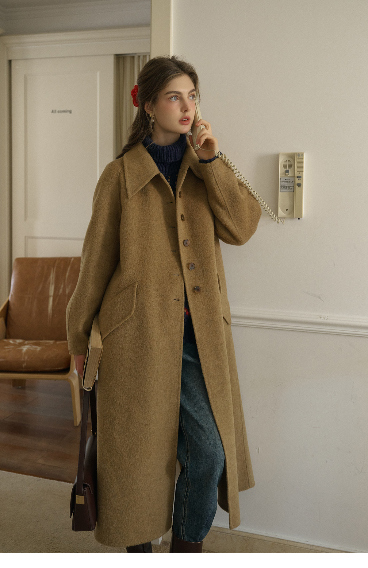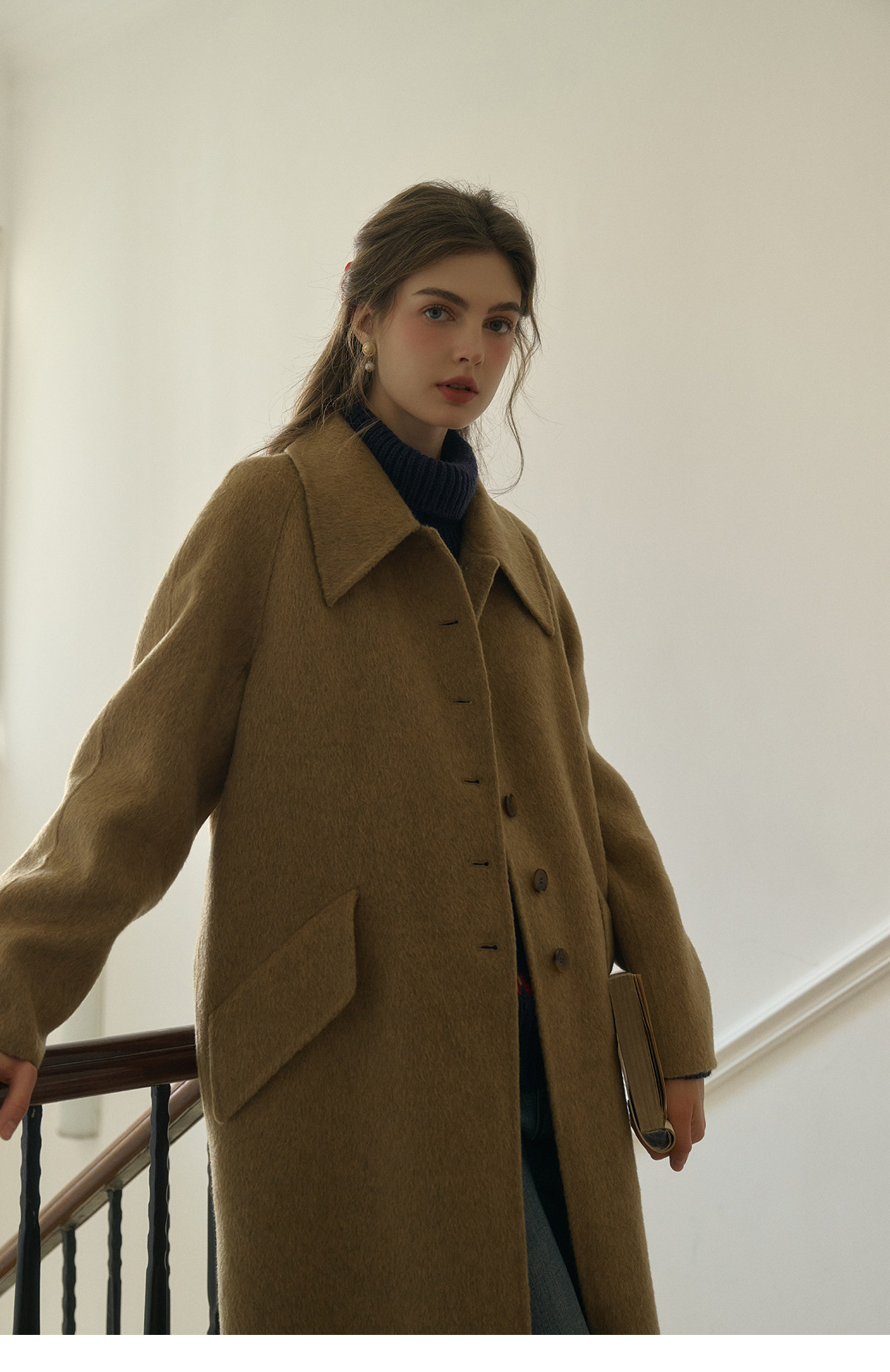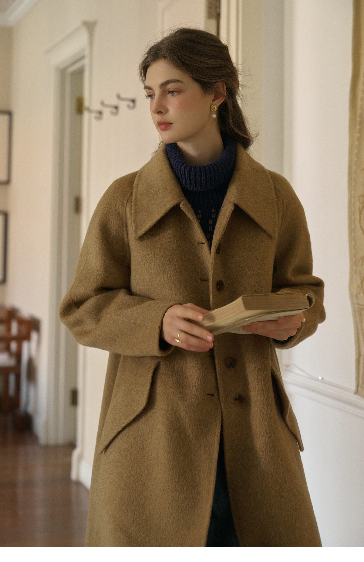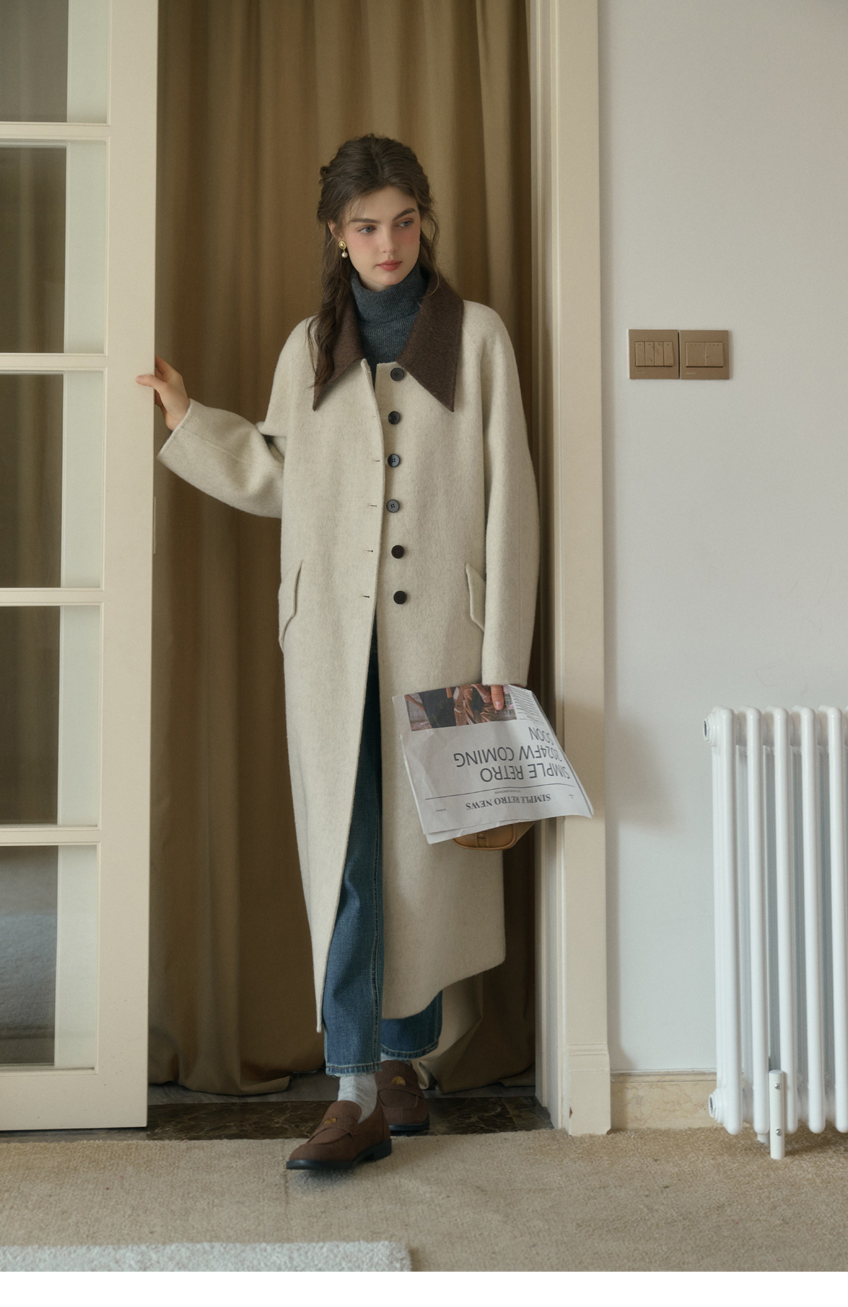 SimpleRetro Melting Snow Frosting Retro Revers doppelseitiger Wollmantel Damen langer Wollmantel aus australischer Wolle