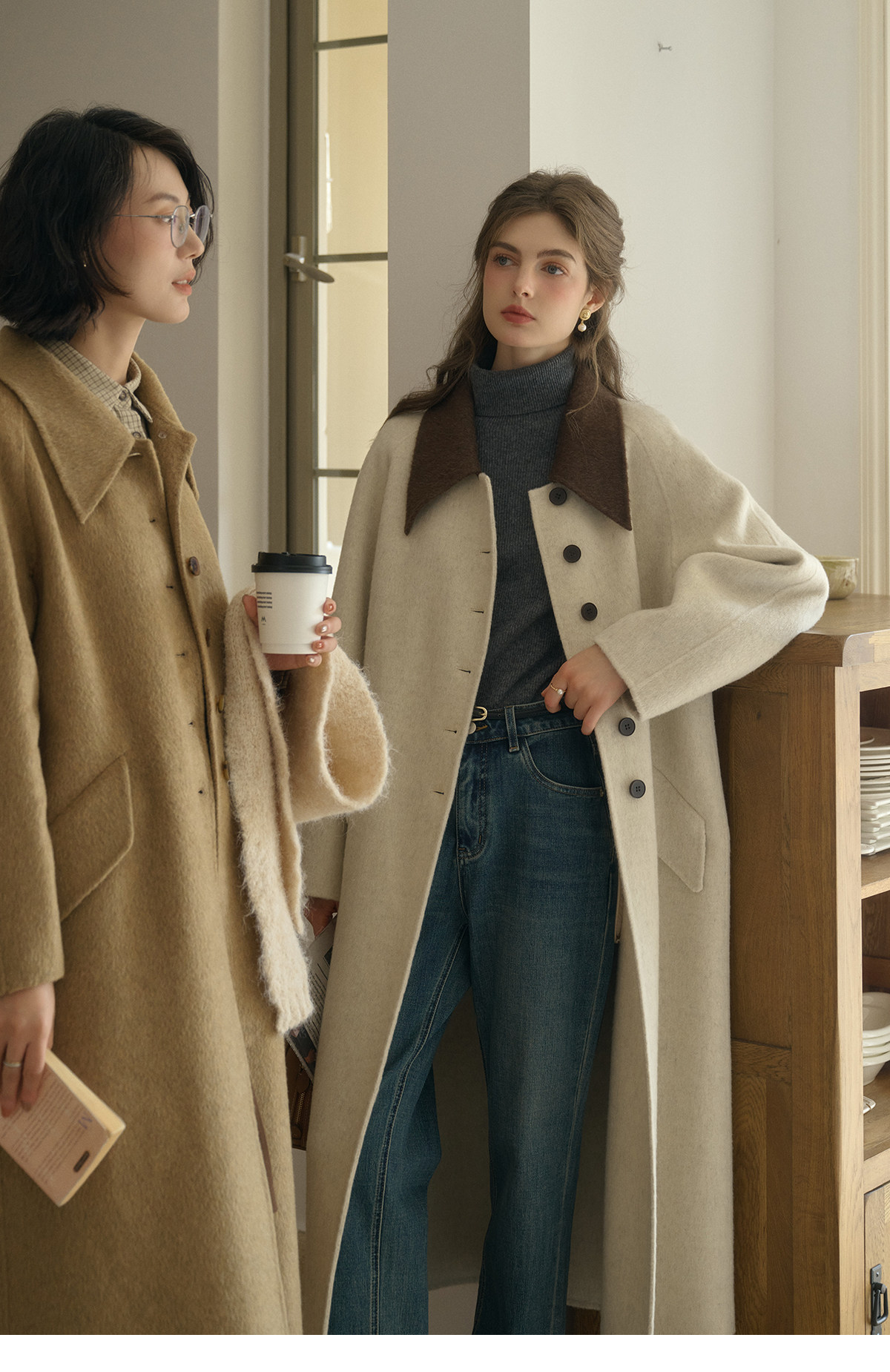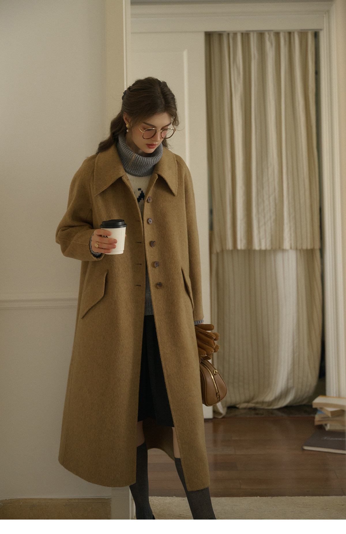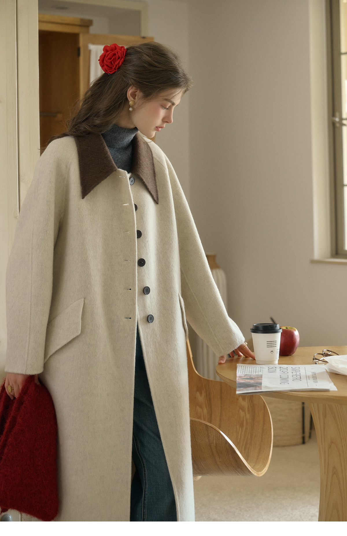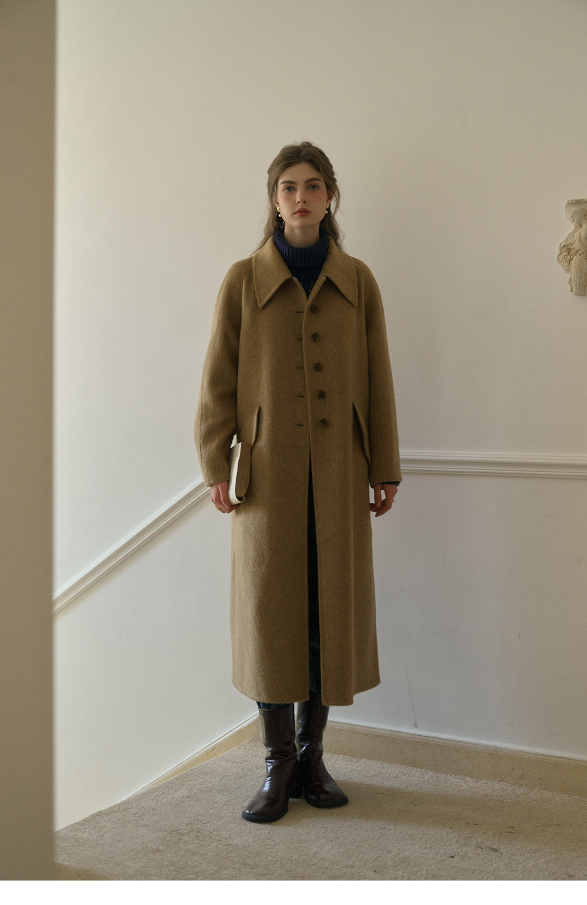 SimpleRetro Melting Snow Frosting Retro Revers doppelseitiger Wollmantel Damen langer Wollmantel aus australischer Wolle